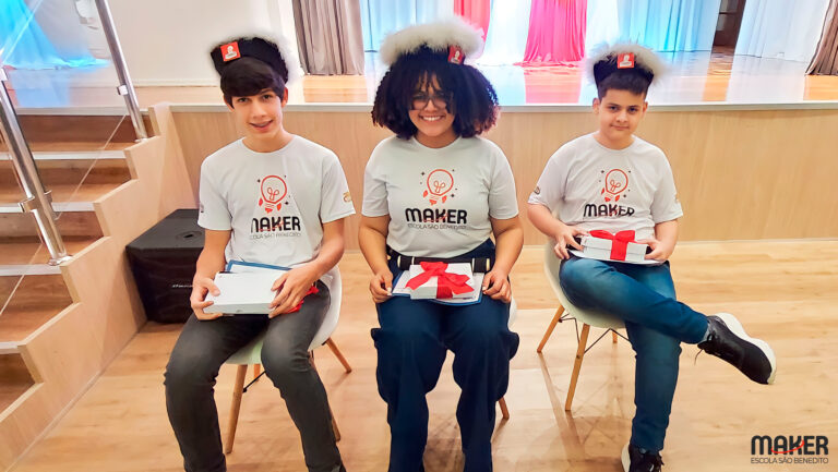 Na noite do dia 15 de setembro, a Escola São Benedito fez história através de três jovens, que fazem parte da primeira turma do curso Maker – Laboratório de Inovação, Criação e Prototipagem: Artur Silva, Cecília de Melo e Rafael Peduzzi.