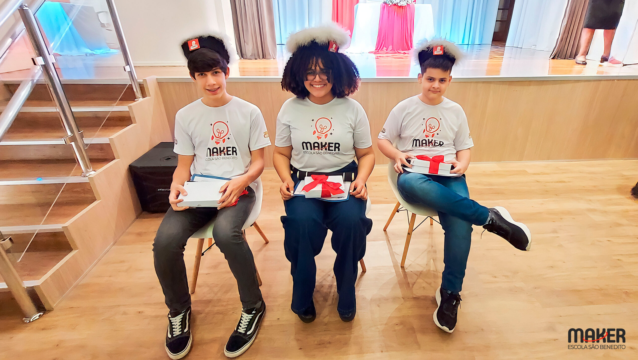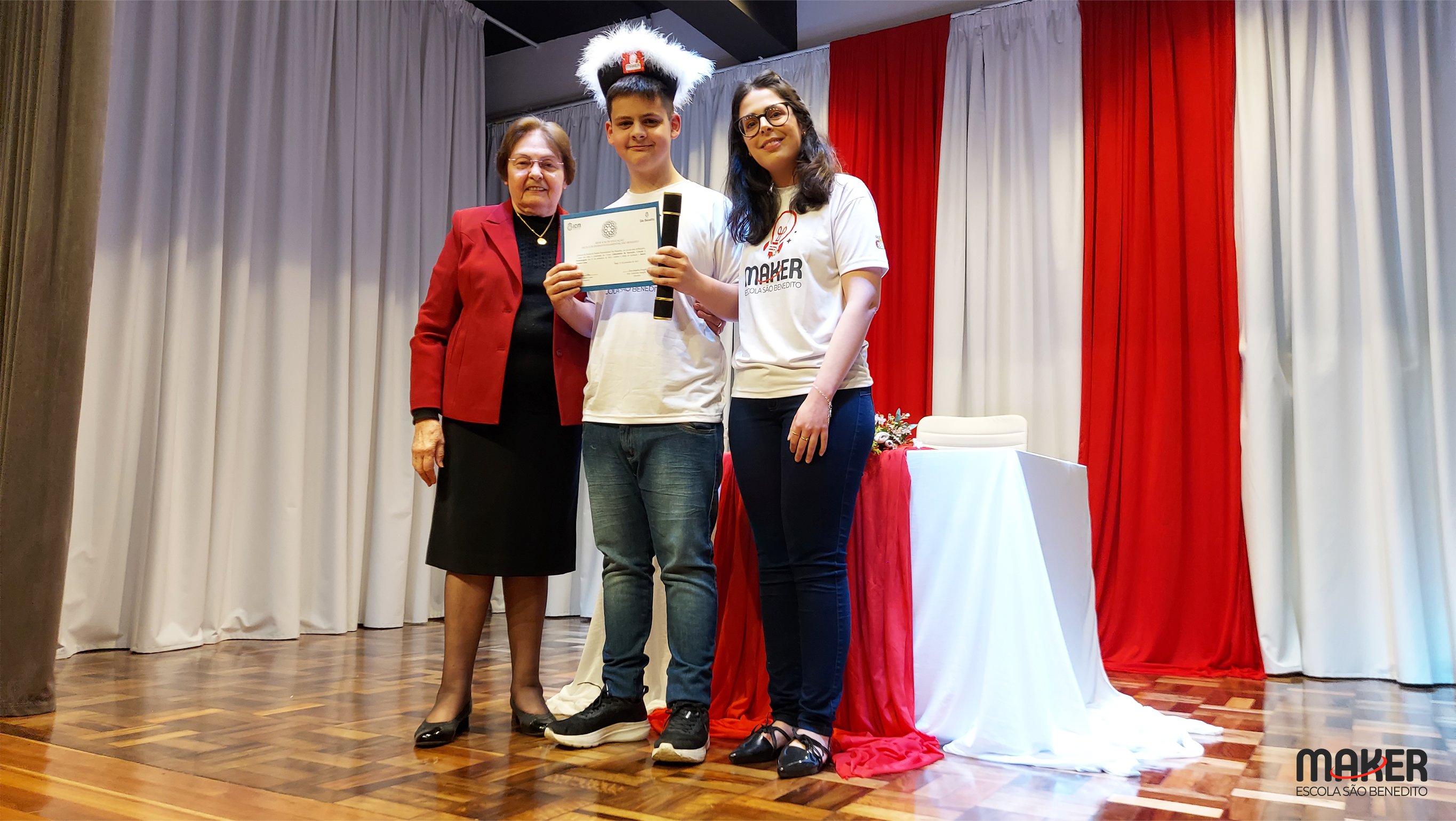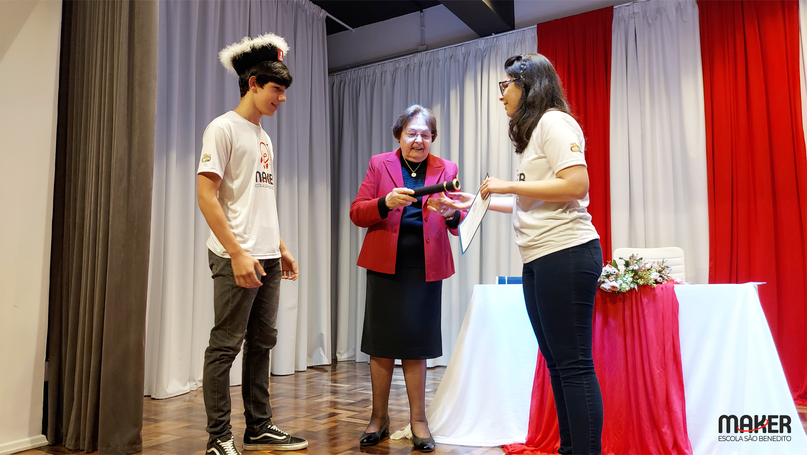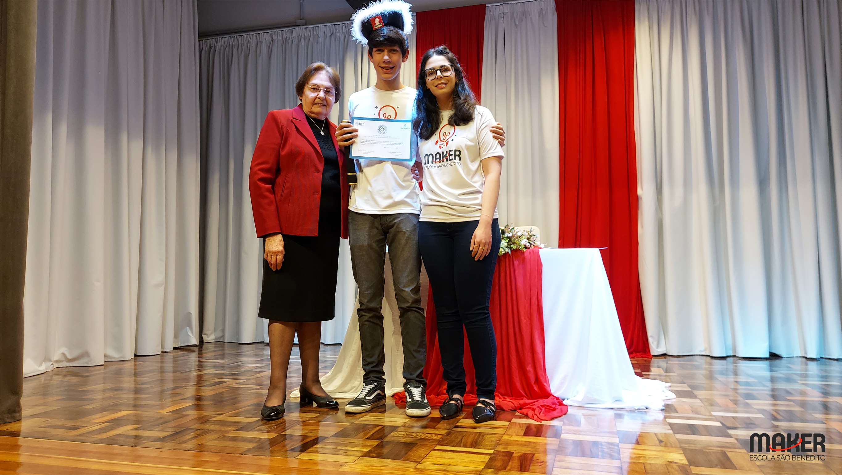 Na noite do dia 15 de setembro, a Escola São Benedito fez história através de três jovens, que fazem parte da primeira turma do curso Maker – Laboratório de Inovação, Criação e Prototipagem: Artur Silva, Cecília de Melo e Rafael Peduzzi.