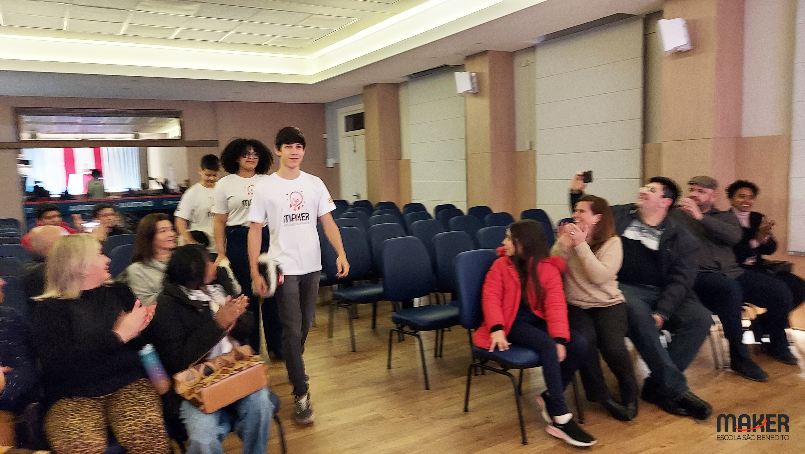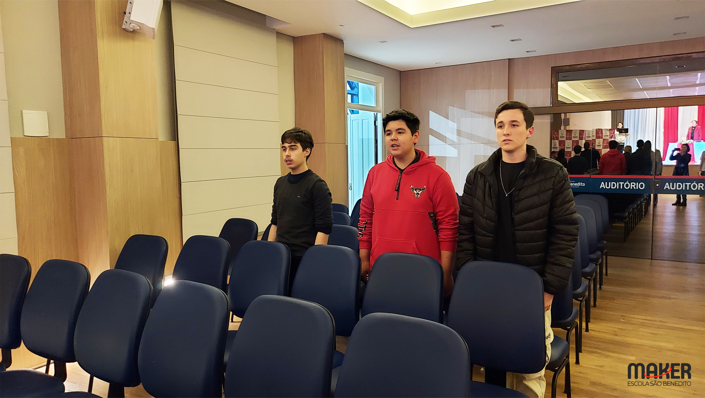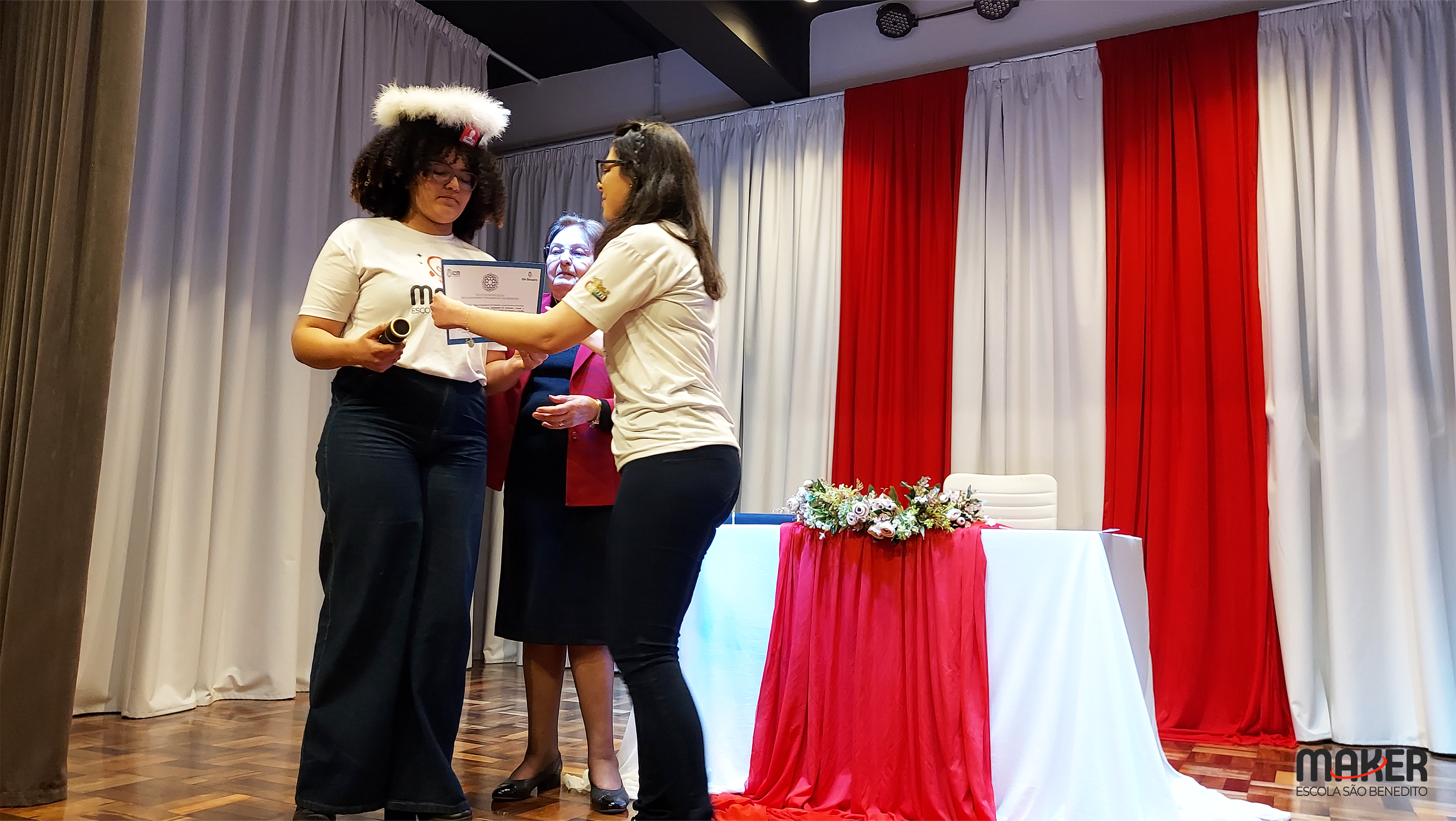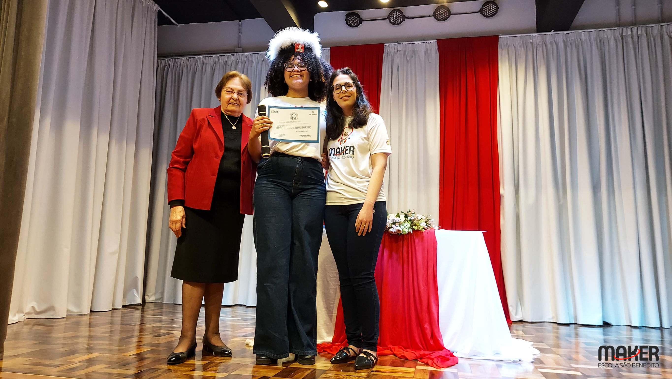 Na noite do dia 15 de setembro, a Escola São Benedito fez história através de três jovens, que fazem parte da primeira turma do curso Maker – Laboratório de Inovação, Criação e Prototipagem: Artur Silva, Cecília de Melo e Rafael Peduzzi.