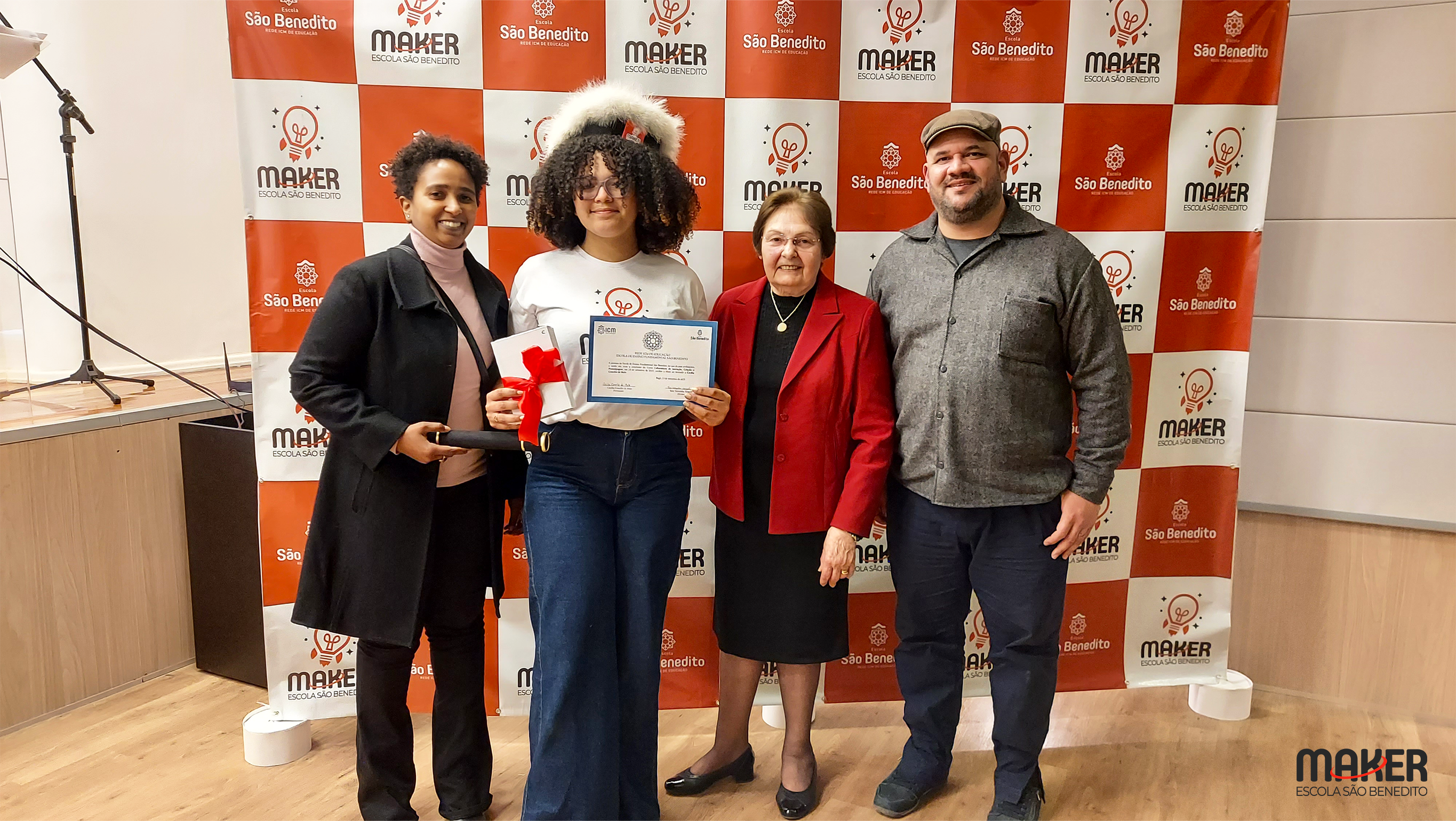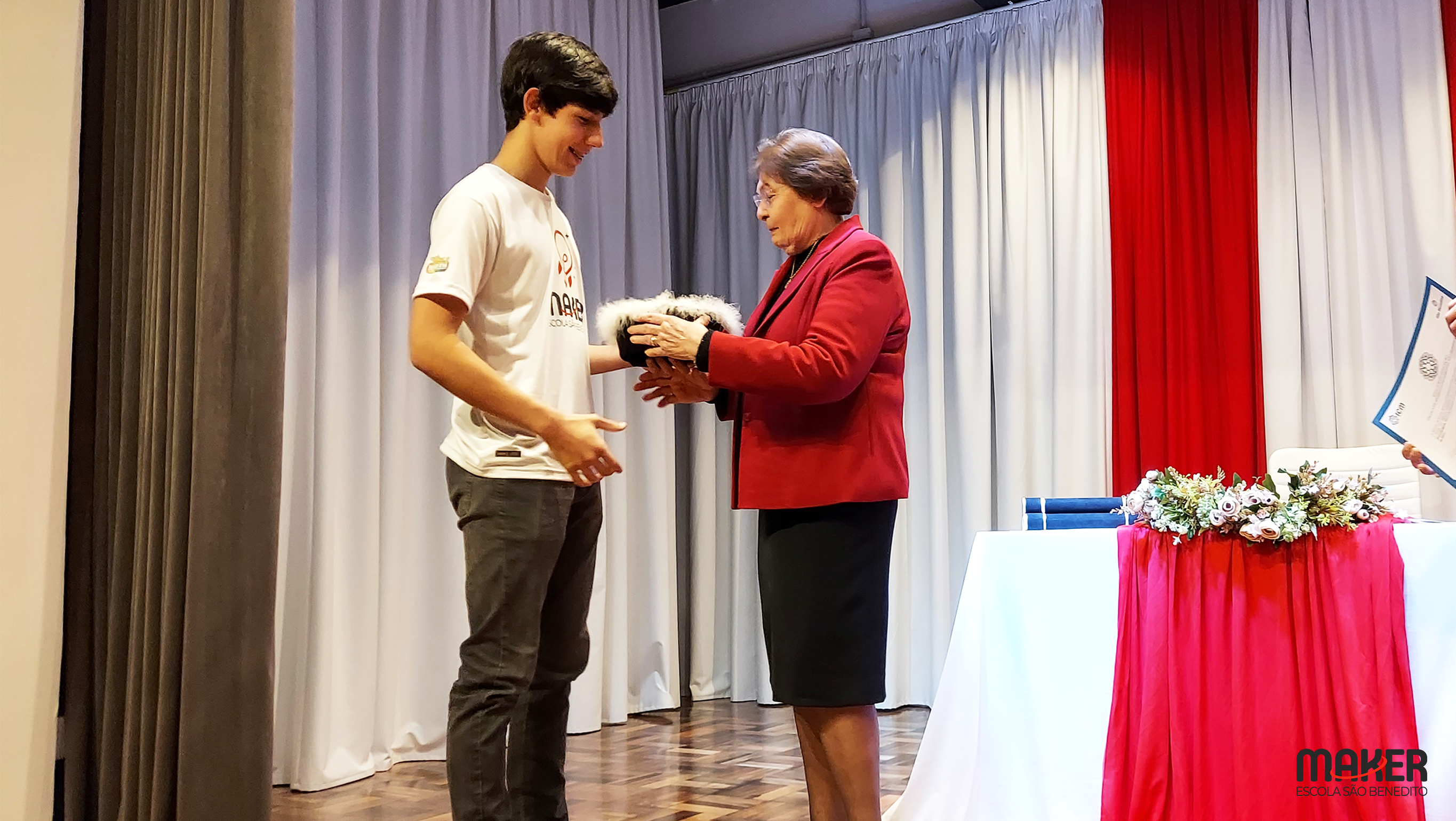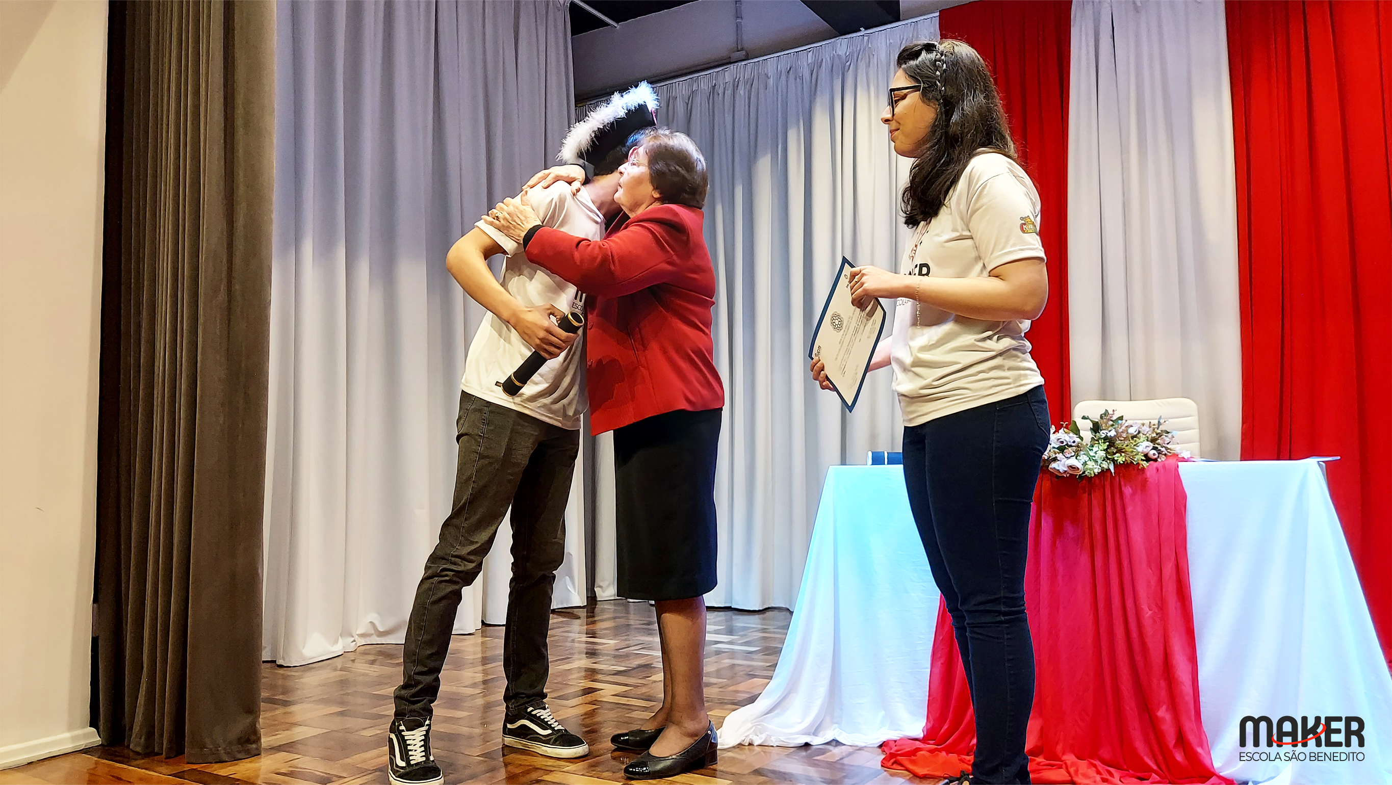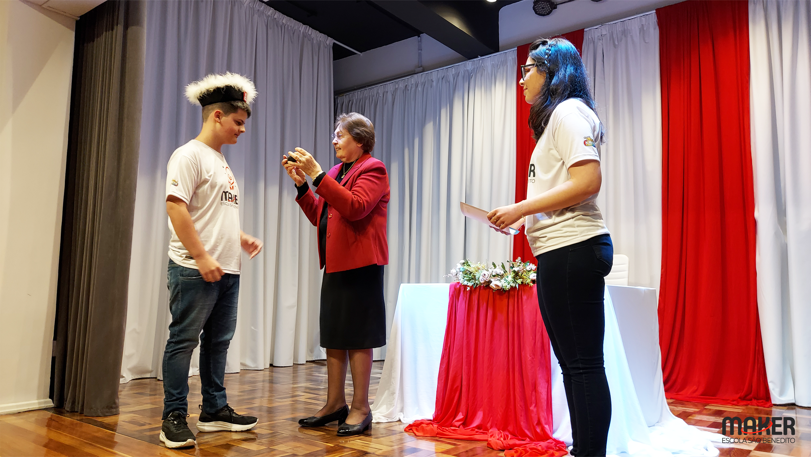 Na noite do dia 15 de setembro, a Escola São Benedito fez história através de três jovens, que fazem parte da primeira turma do curso Maker – Laboratório de Inovação, Criação e Prototipagem: Artur Silva, Cecília de Melo e Rafael Peduzzi.
