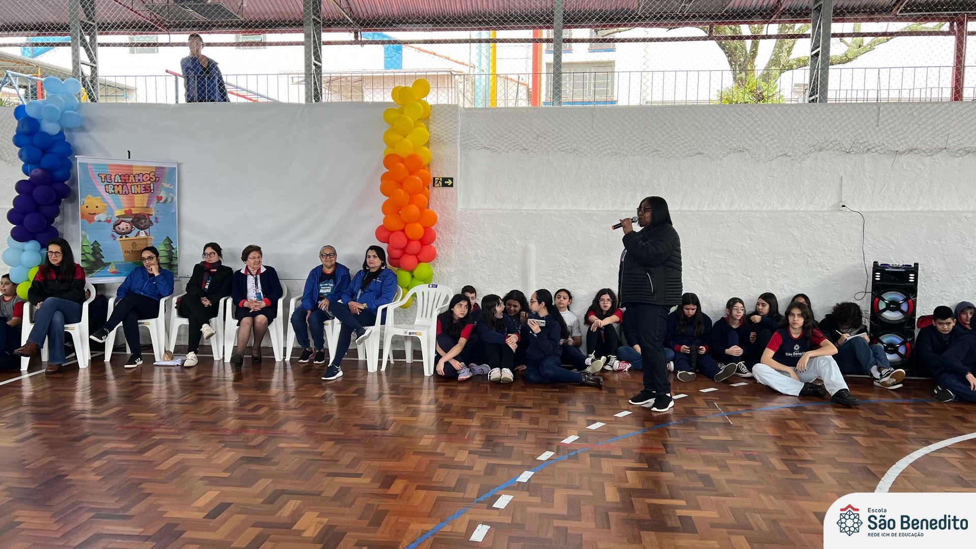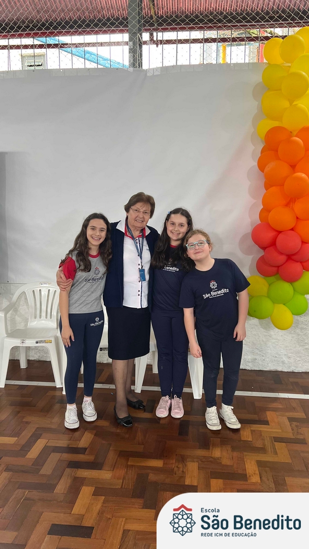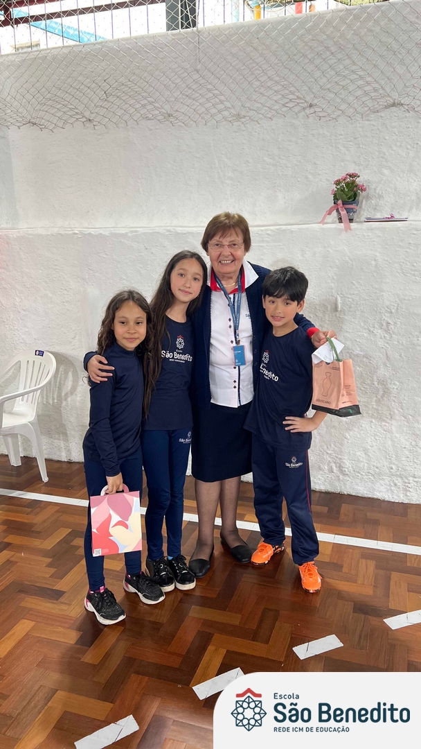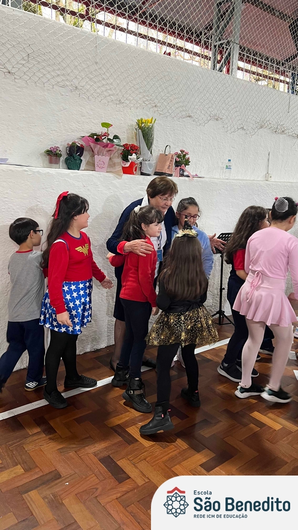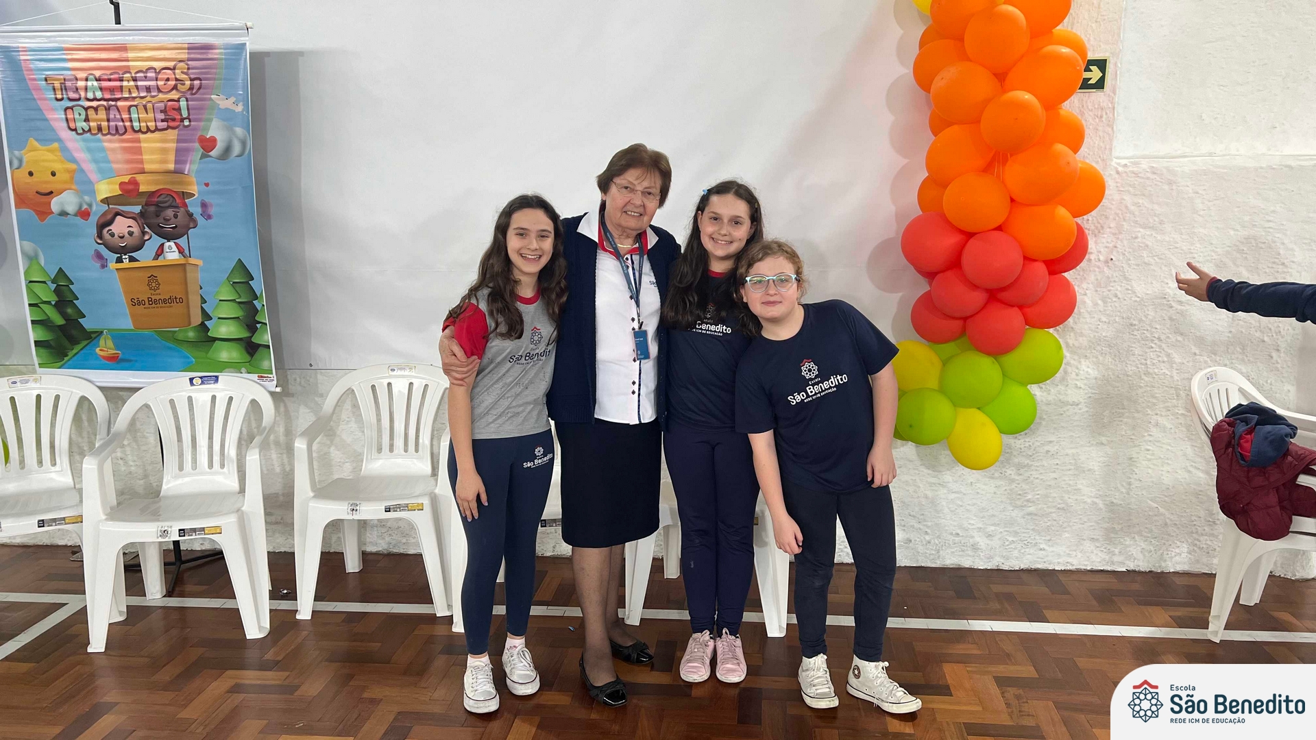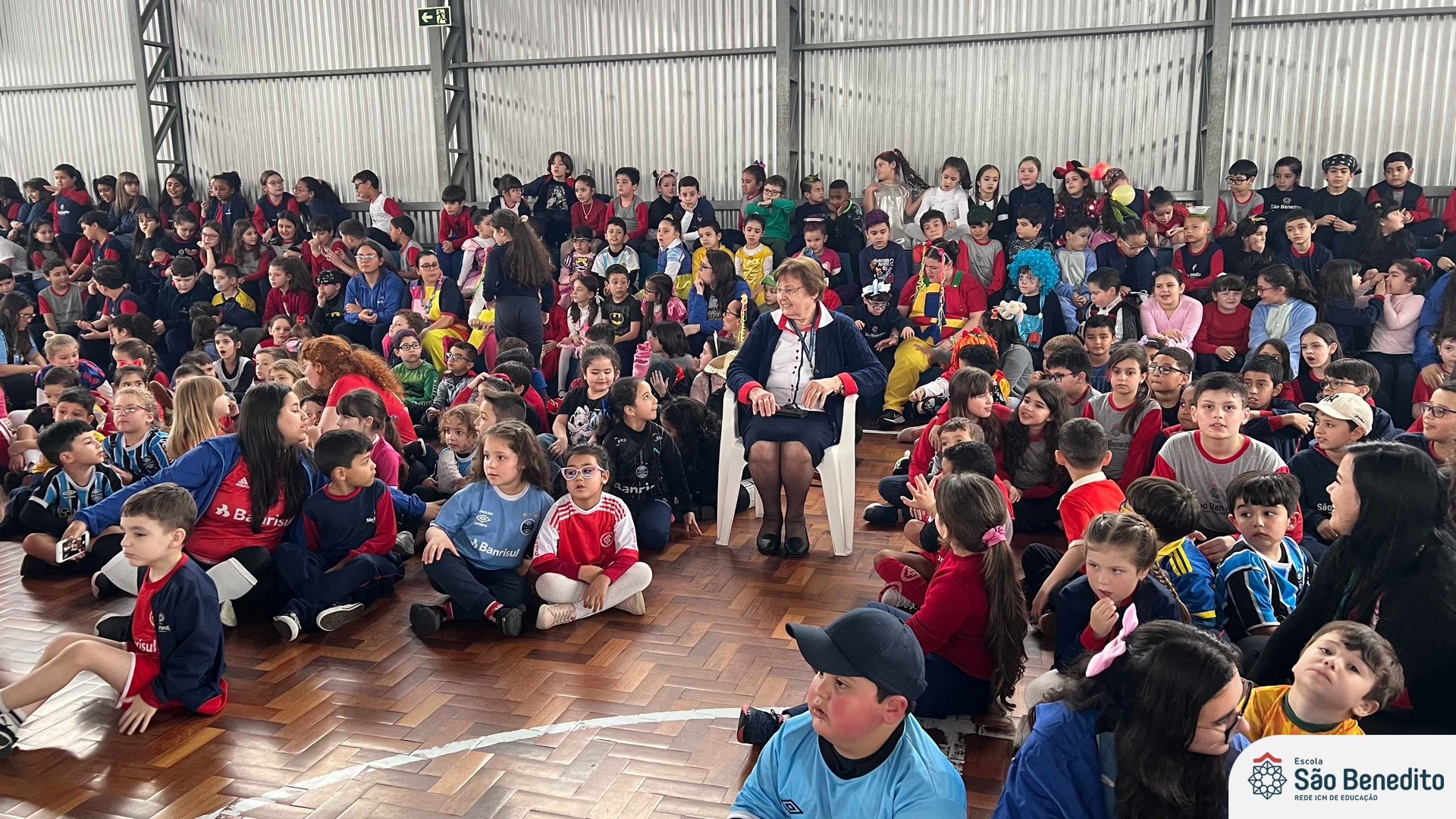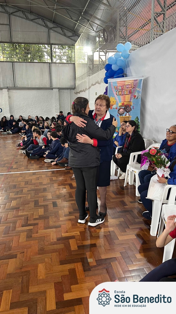 O encerramento da Semana da Criança na Escola São Benedito foi marcado por uma celebração muito especial: o aniversário da querida irmã Ines Terezinha Sangalli, diretora da instituição. Estudantes, professores e monitores, desde a Educação Infantil até o Ensino Fundamental II, se uniram para prestar homenagens com apresentações emocionantes, muito amor, carinho e mimos exclusivos. A ocasião foi um verdadeiro símbolo de gratidão e afeto, fechando a semana de festividades com chave de ouro.