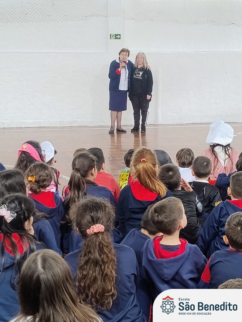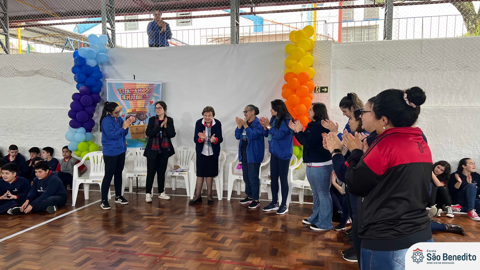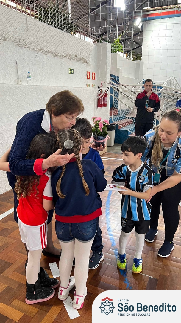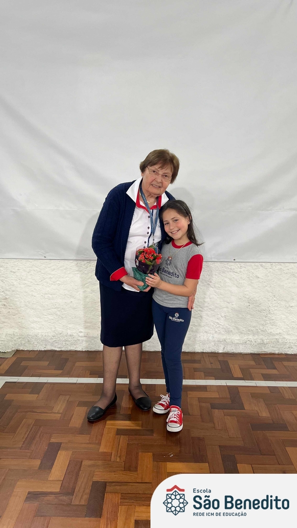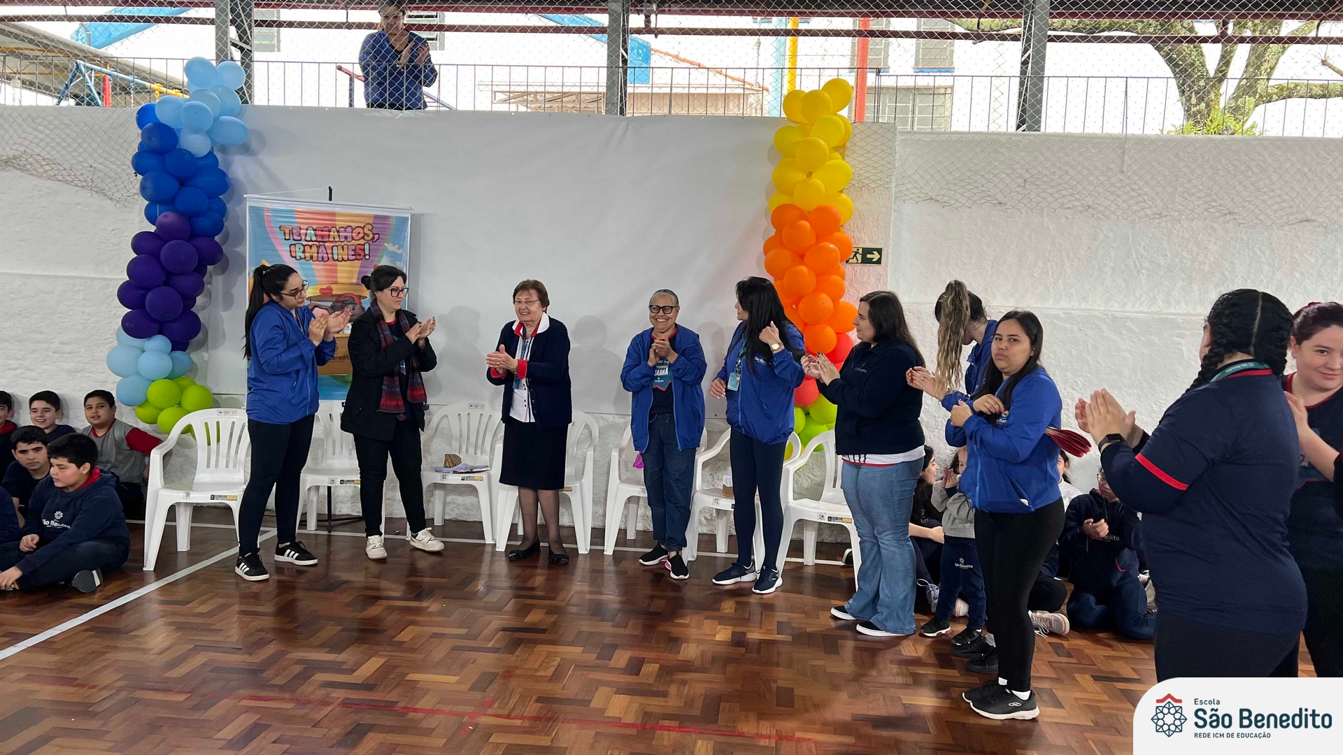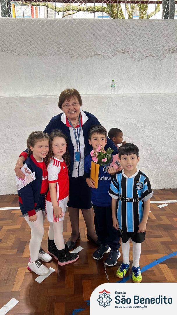 O encerramento da Semana da Criança na Escola São Benedito foi marcado por uma celebração muito especial: o aniversário da querida irmã Ines Terezinha Sangalli, diretora da instituição. Estudantes, professores e monitores, desde a Educação Infantil até o Ensino Fundamental II, se uniram para prestar homenagens com apresentações emocionantes, muito amor, carinho e mimos exclusivos. A ocasião foi um verdadeiro símbolo de gratidão e afeto, fechando a semana de festividades com chave de ouro.