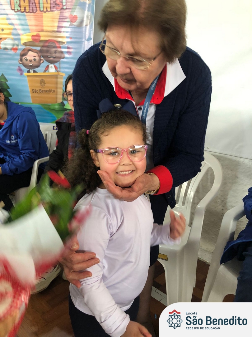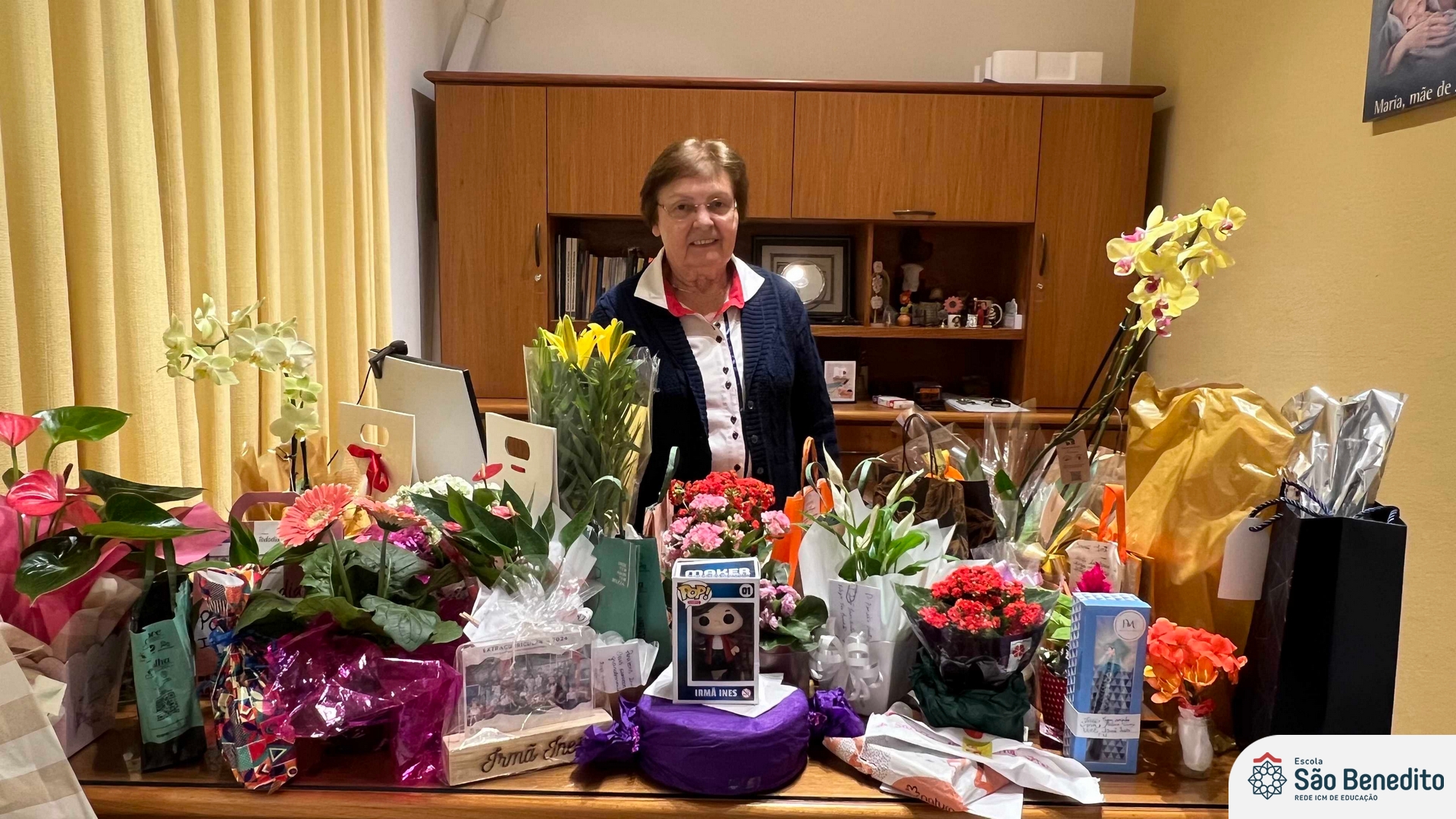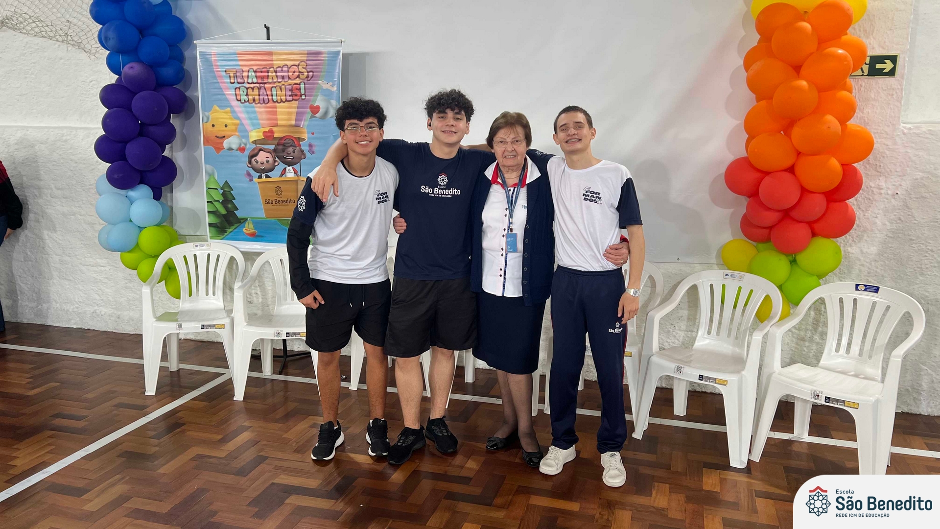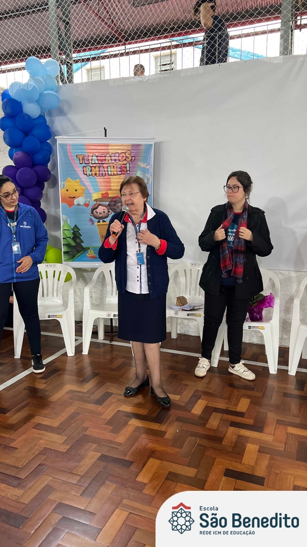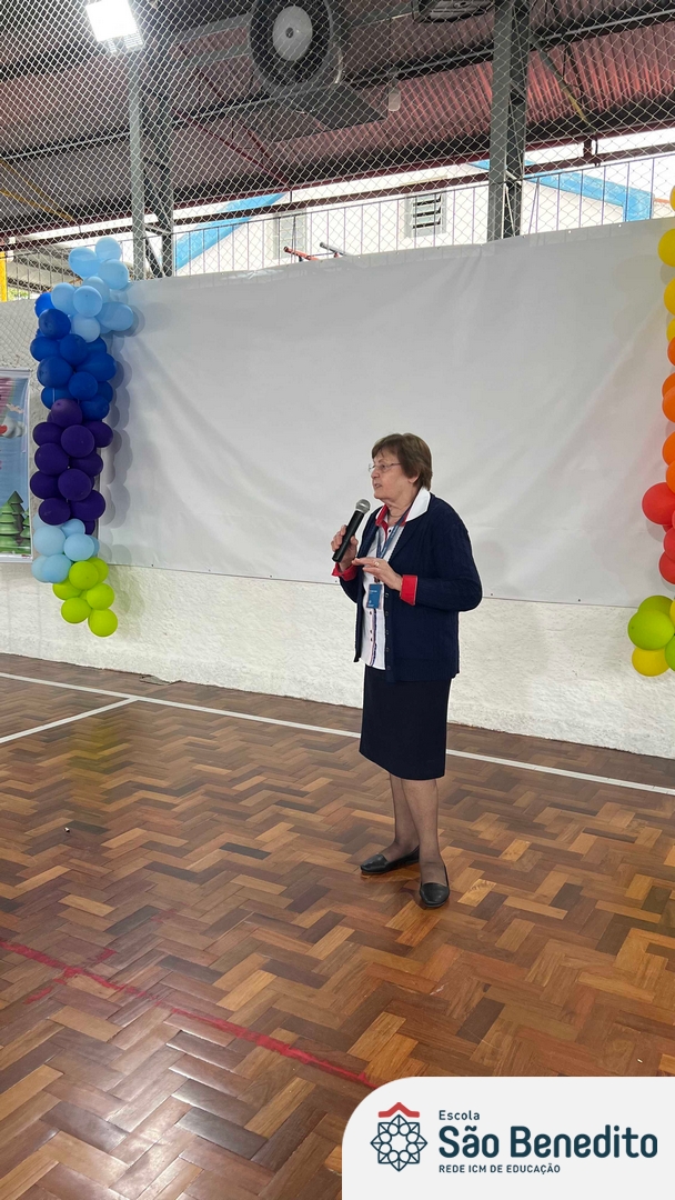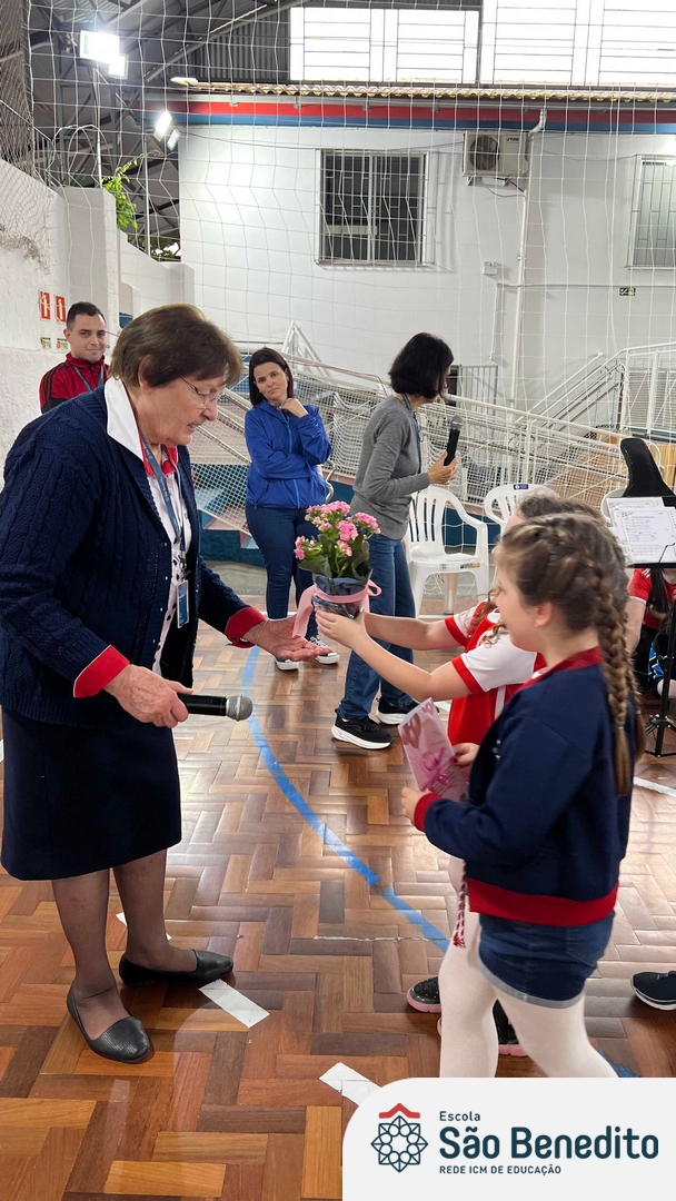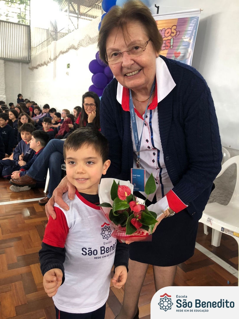 O encerramento da Semana da Criança na Escola São Benedito foi marcado por uma celebração muito especial: o aniversário da querida irmã Ines Terezinha Sangalli, diretora da instituição. Estudantes, professores e monitores, desde a Educação Infantil até o Ensino Fundamental II, se uniram para prestar homenagens com apresentações emocionantes, muito amor, carinho e mimos exclusivos. A ocasião foi um verdadeiro símbolo de gratidão e afeto, fechando a semana de festividades com chave de ouro.