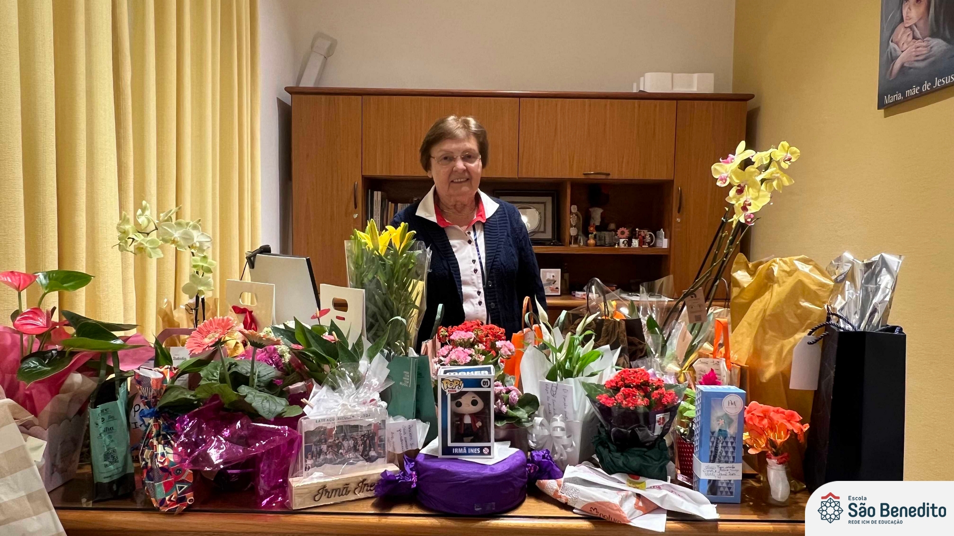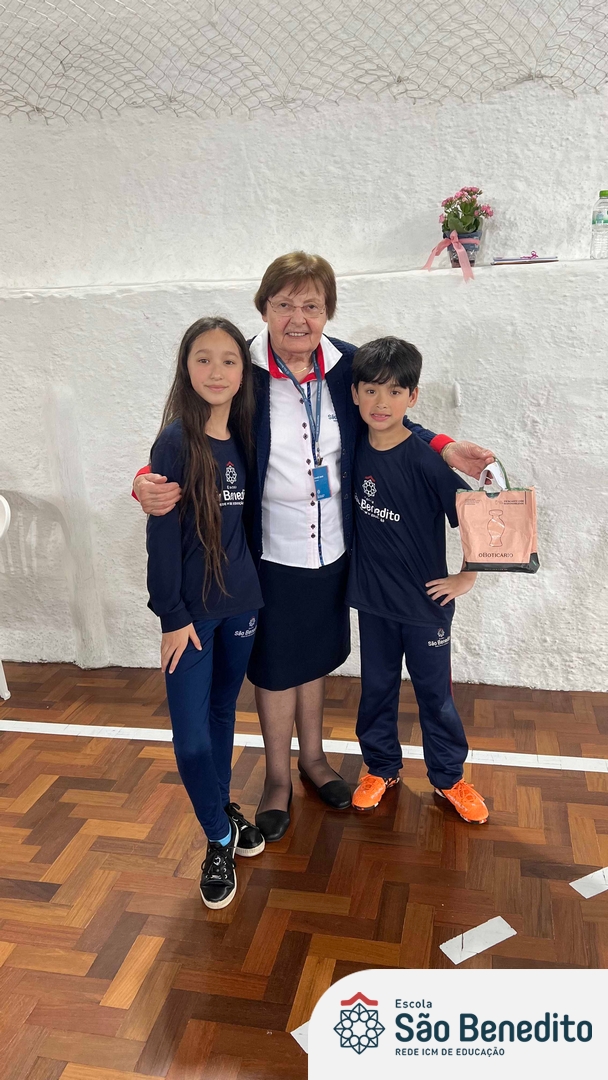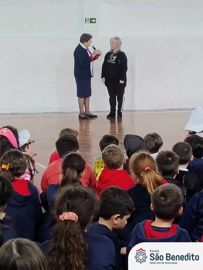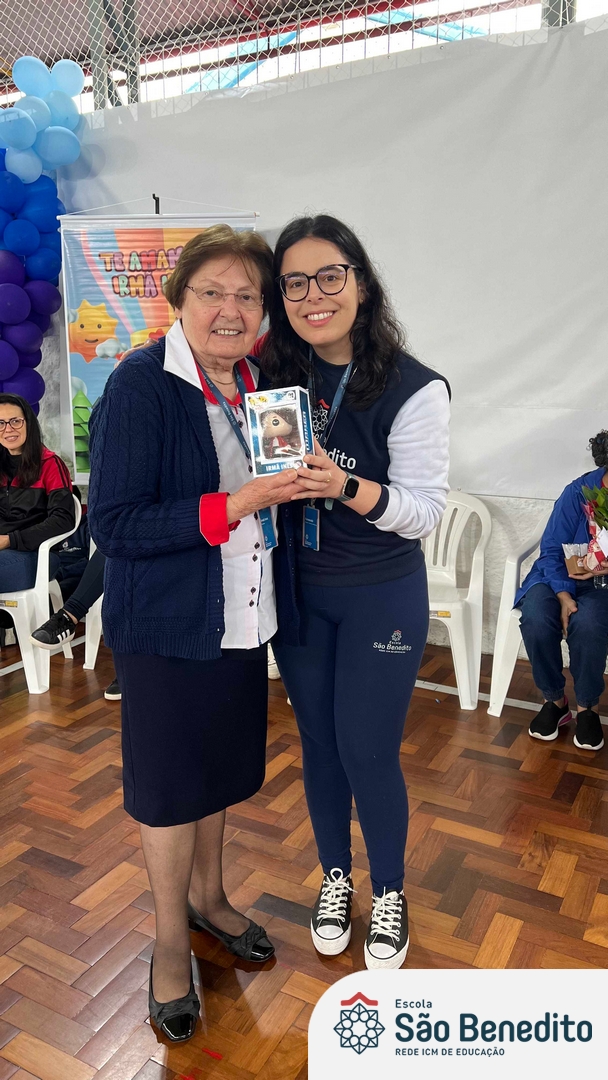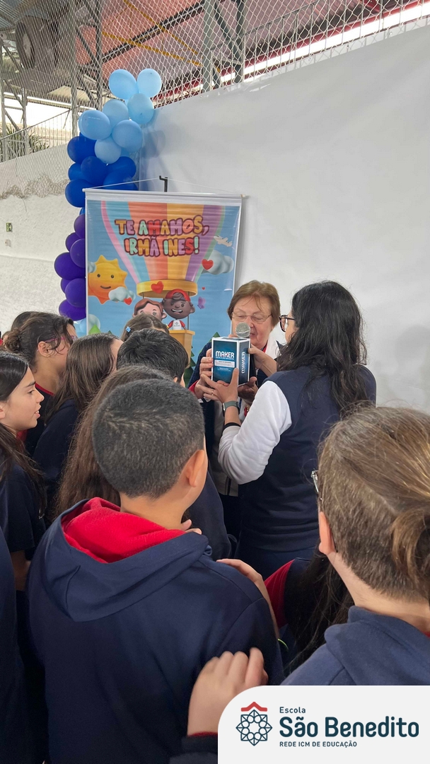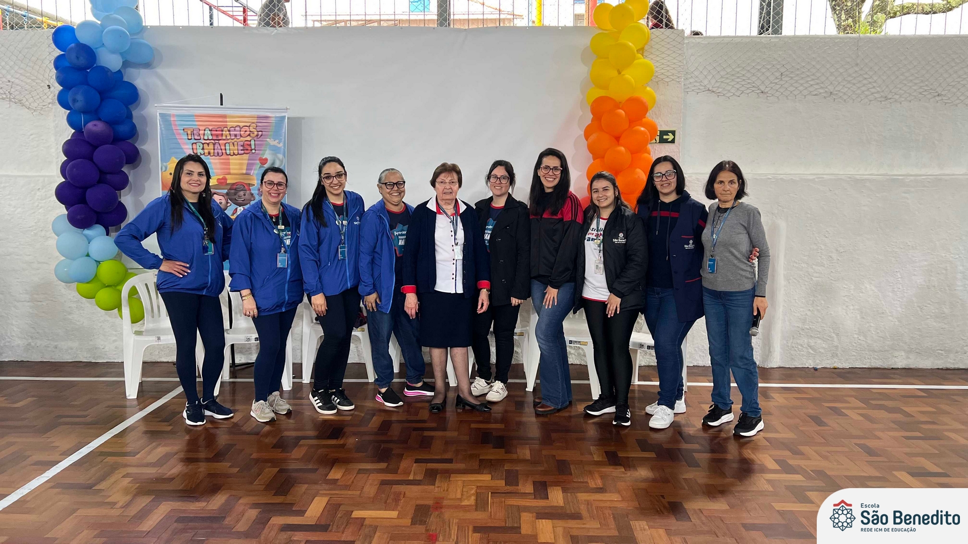 O encerramento da Semana da Criança na Escola São Benedito foi marcado por uma celebração muito especial: o aniversário da querida irmã Ines Terezinha Sangalli, diretora da instituição. Estudantes, professores e monitores, desde a Educação Infantil até o Ensino Fundamental II, se uniram para prestar homenagens com apresentações emocionantes, muito amor, carinho e mimos exclusivos. A ocasião foi um verdadeiro símbolo de gratidão e afeto, fechando a semana de festividades com chave de ouro.