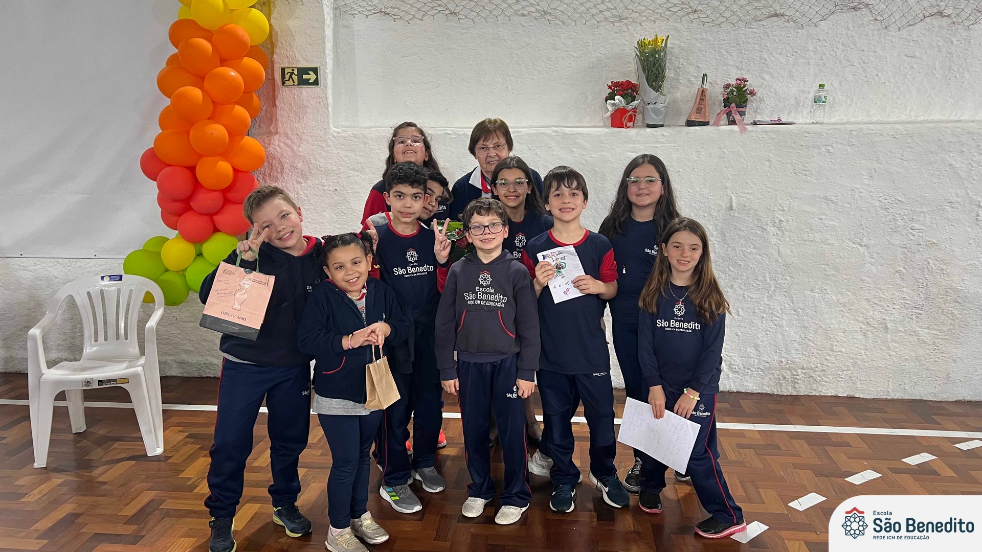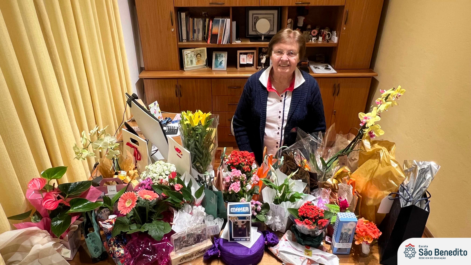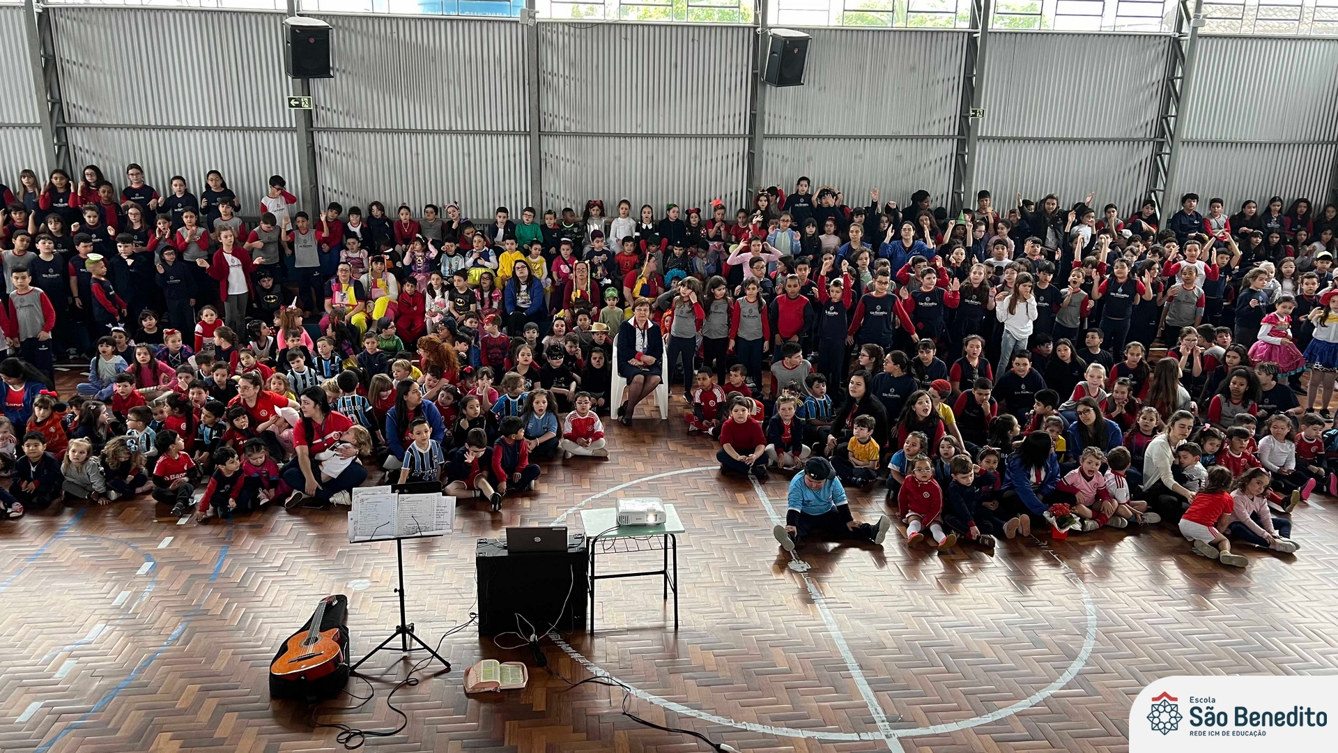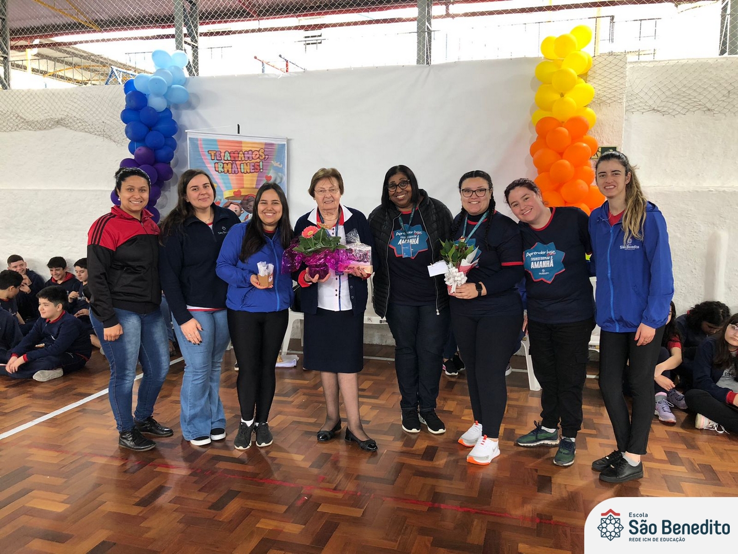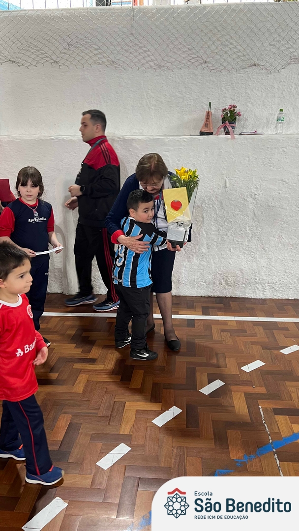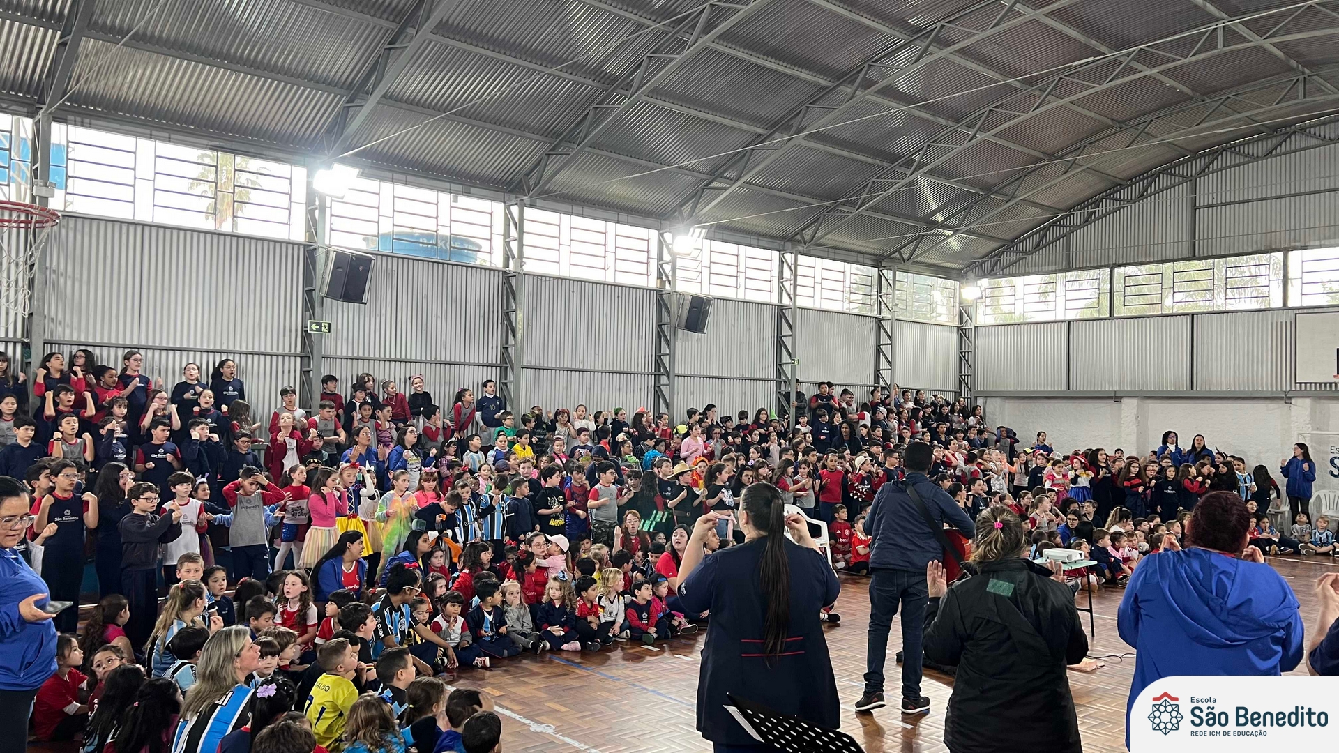 O encerramento da Semana da Criança na Escola São Benedito foi marcado por uma celebração muito especial: o aniversário da querida irmã Ines Terezinha Sangalli, diretora da instituição. Estudantes, professores e monitores, desde a Educação Infantil até o Ensino Fundamental II, se uniram para prestar homenagens com apresentações emocionantes, muito amor, carinho e mimos exclusivos. A ocasião foi um verdadeiro símbolo de gratidão e afeto, fechando a semana de festividades com chave de ouro.