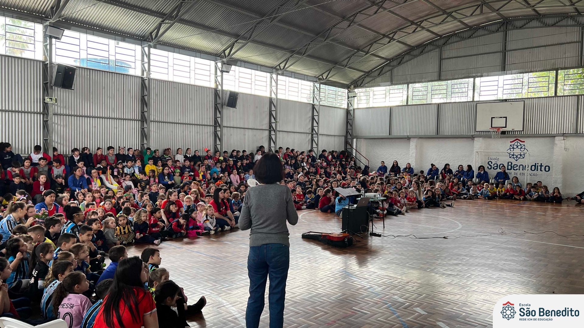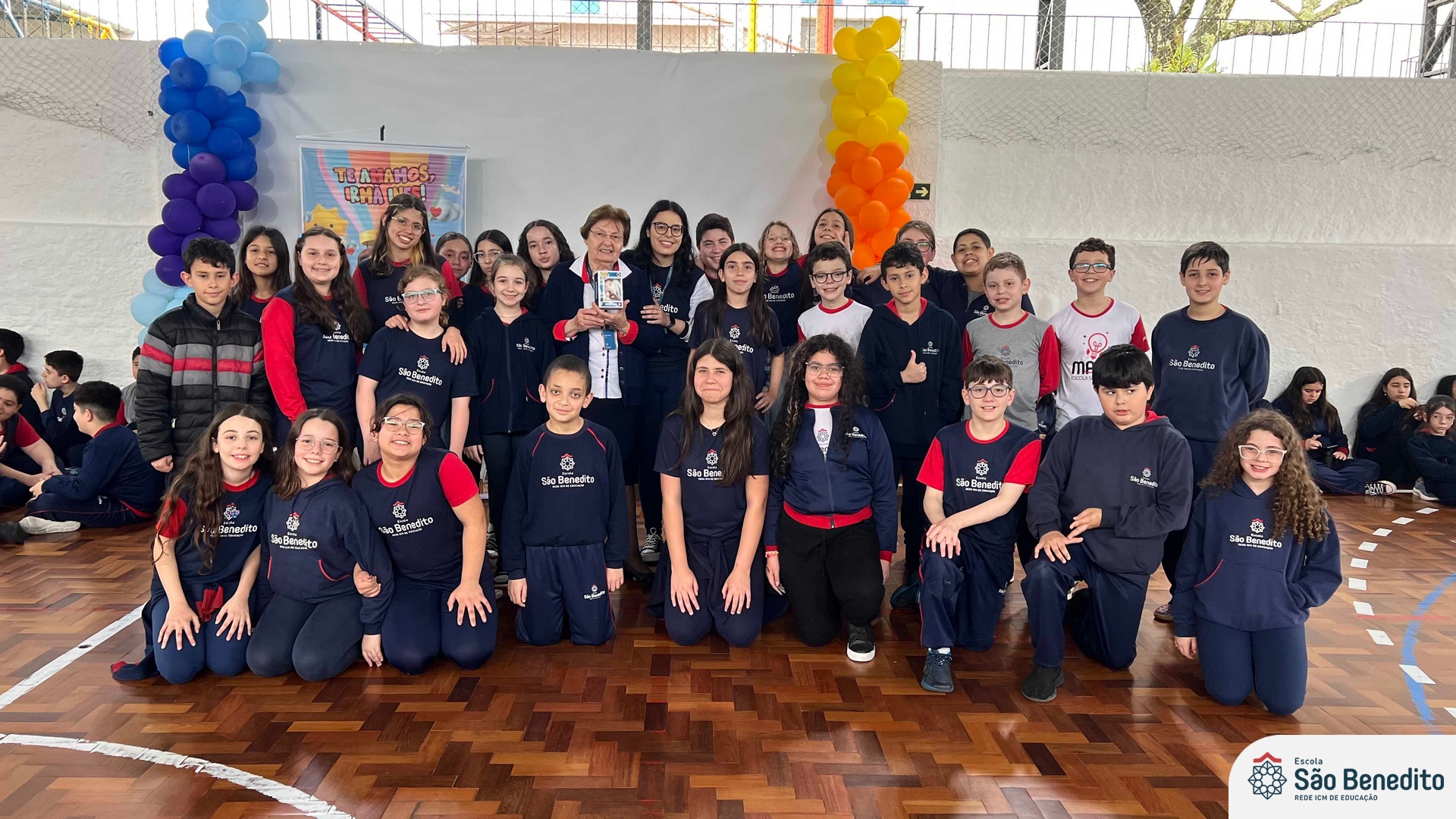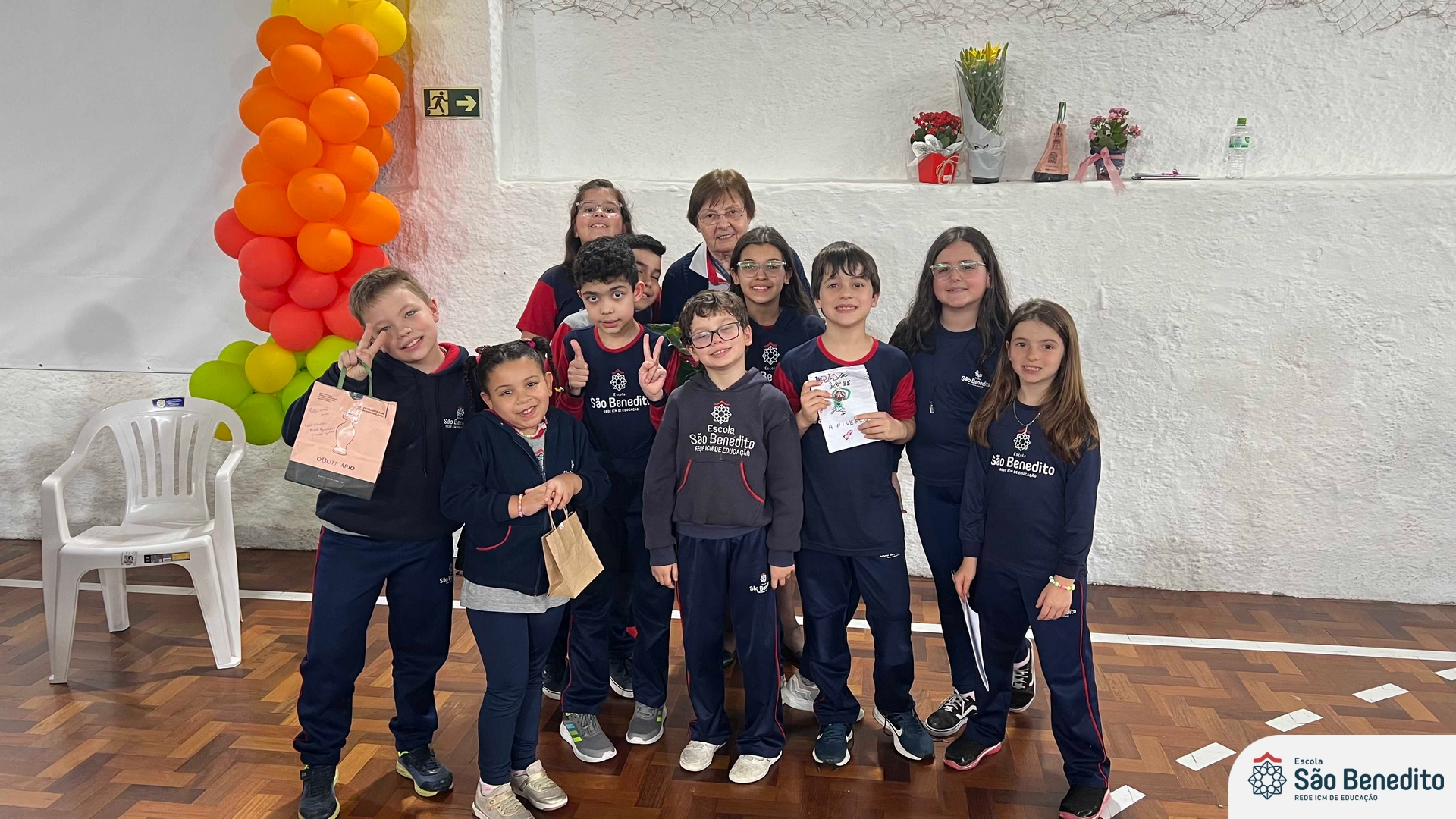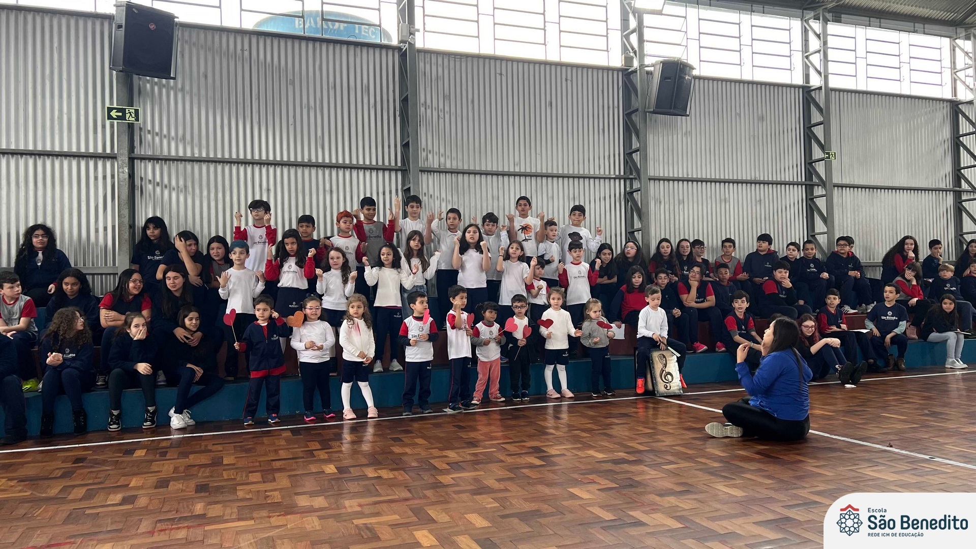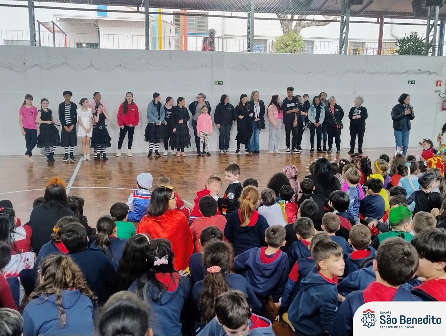 O encerramento da Semana da Criança na Escola São Benedito foi marcado por uma celebração muito especial: o aniversário da querida irmã Ines Terezinha Sangalli, diretora da instituição. Estudantes, professores e monitores, desde a Educação Infantil até o Ensino Fundamental II, se uniram para prestar homenagens com apresentações emocionantes, muito amor, carinho e mimos exclusivos. A ocasião foi um verdadeiro símbolo de gratidão e afeto, fechando a semana de festividades com chave de ouro.