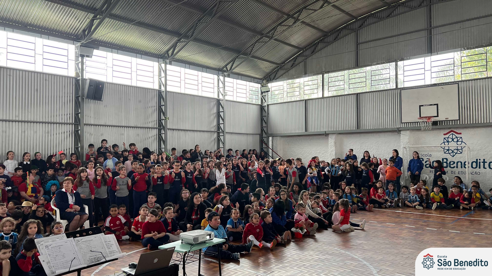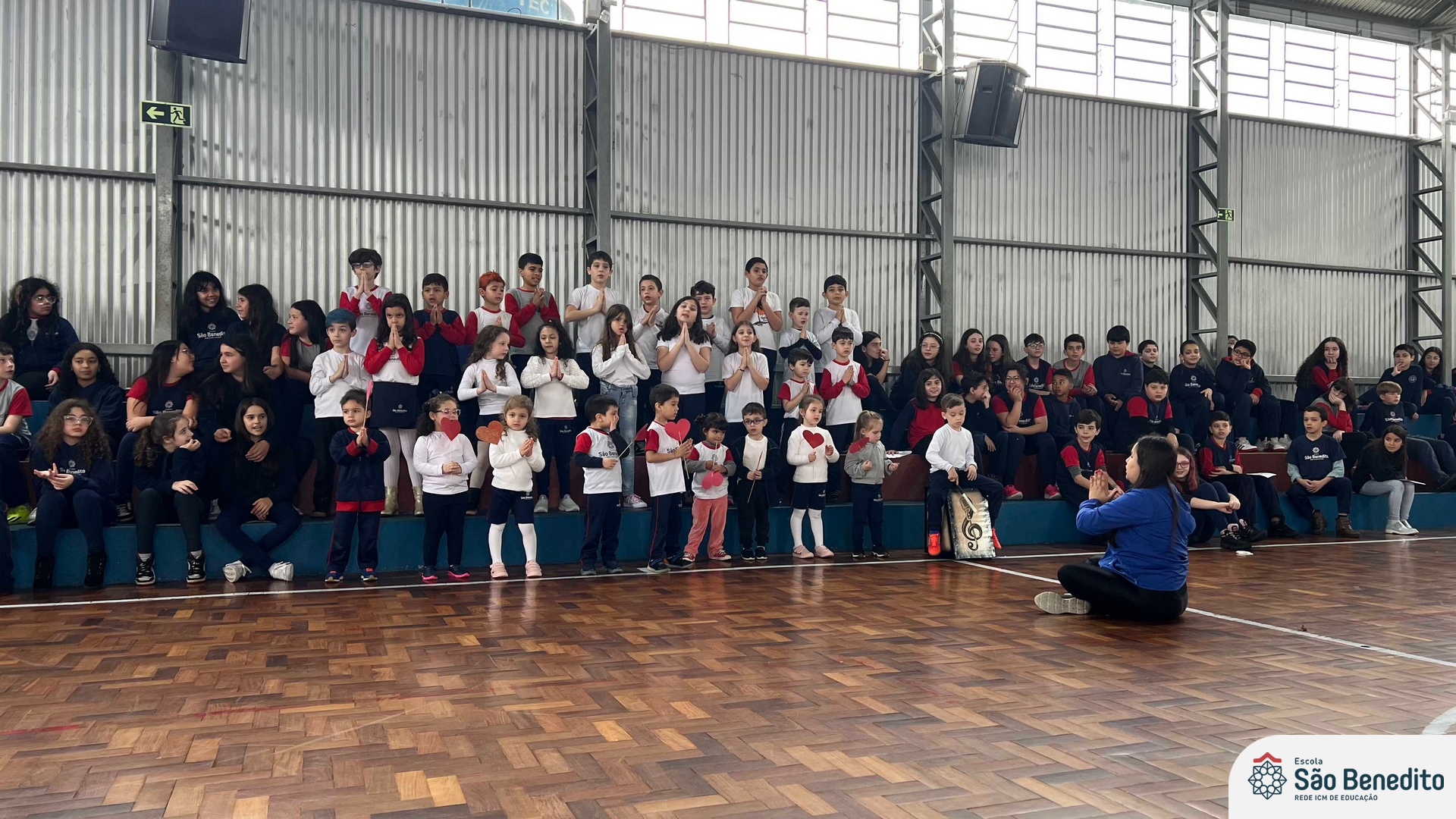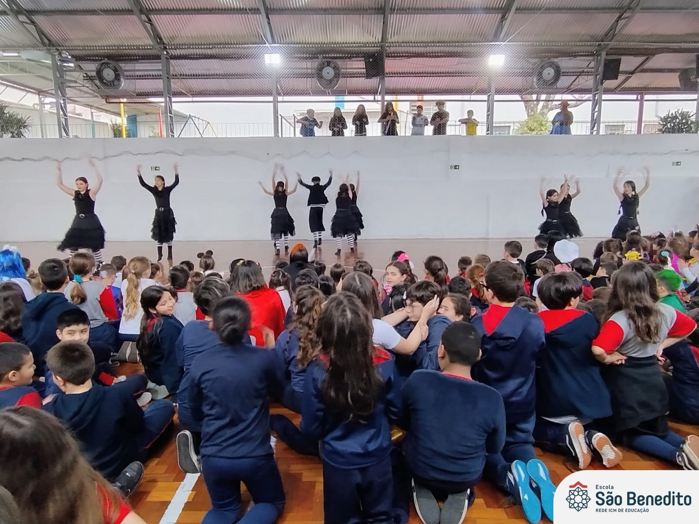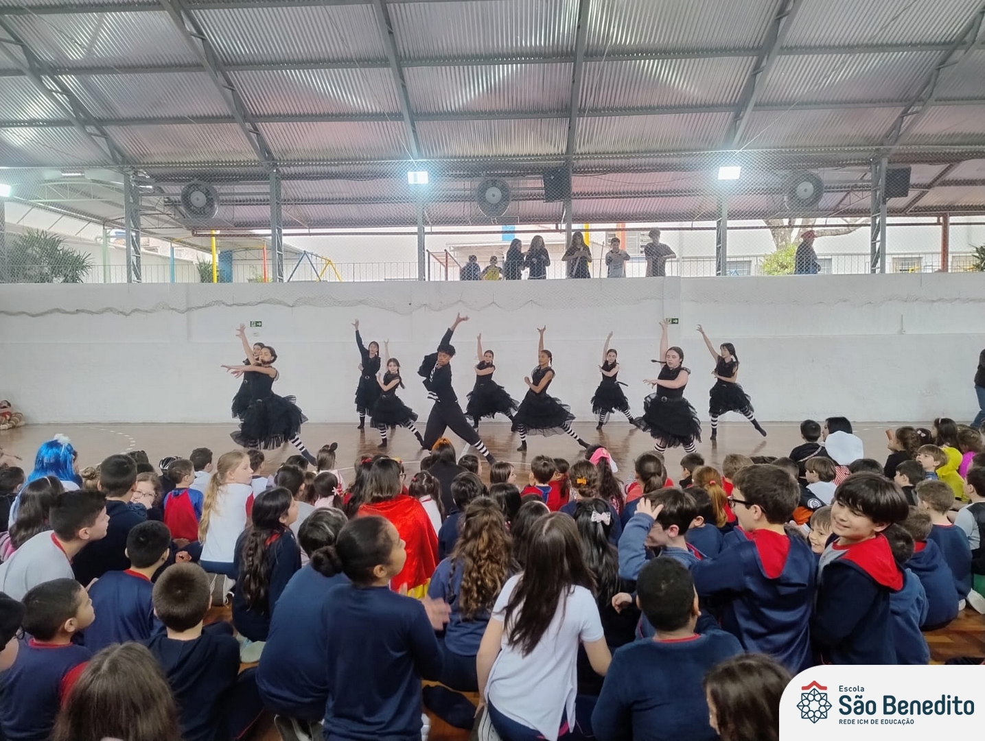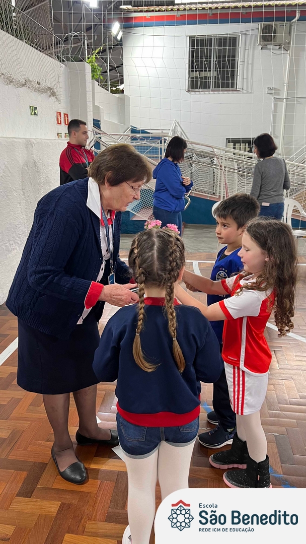 O encerramento da Semana da Criança na Escola São Benedito foi marcado por uma celebração muito especial: o aniversário da querida irmã Ines Terezinha Sangalli, diretora da instituição. Estudantes, professores e monitores, desde a Educação Infantil até o Ensino Fundamental II, se uniram para prestar homenagens com apresentações emocionantes, muito amor, carinho e mimos exclusivos. A ocasião foi um verdadeiro símbolo de gratidão e afeto, fechando a semana de festividades com chave de ouro.