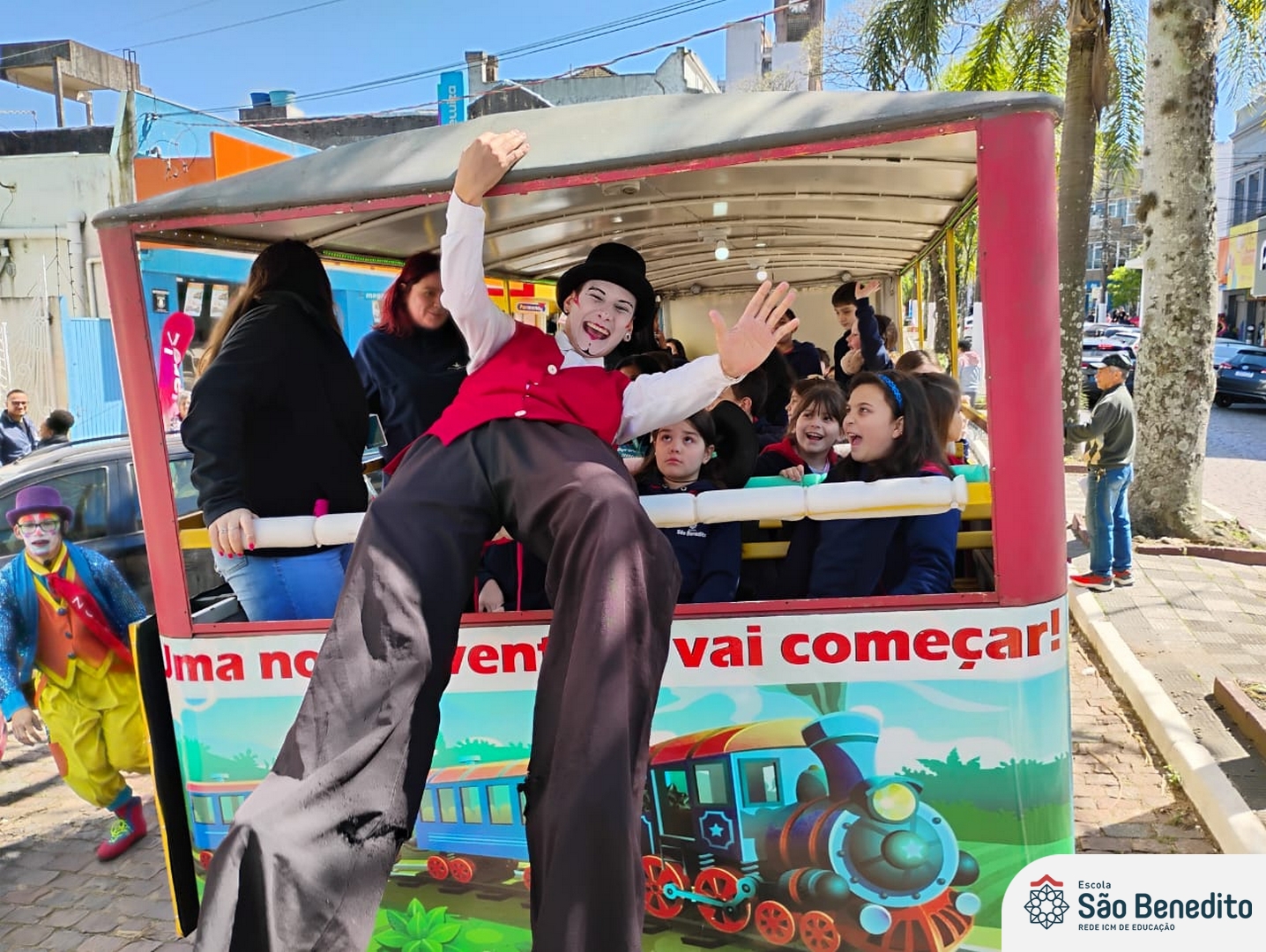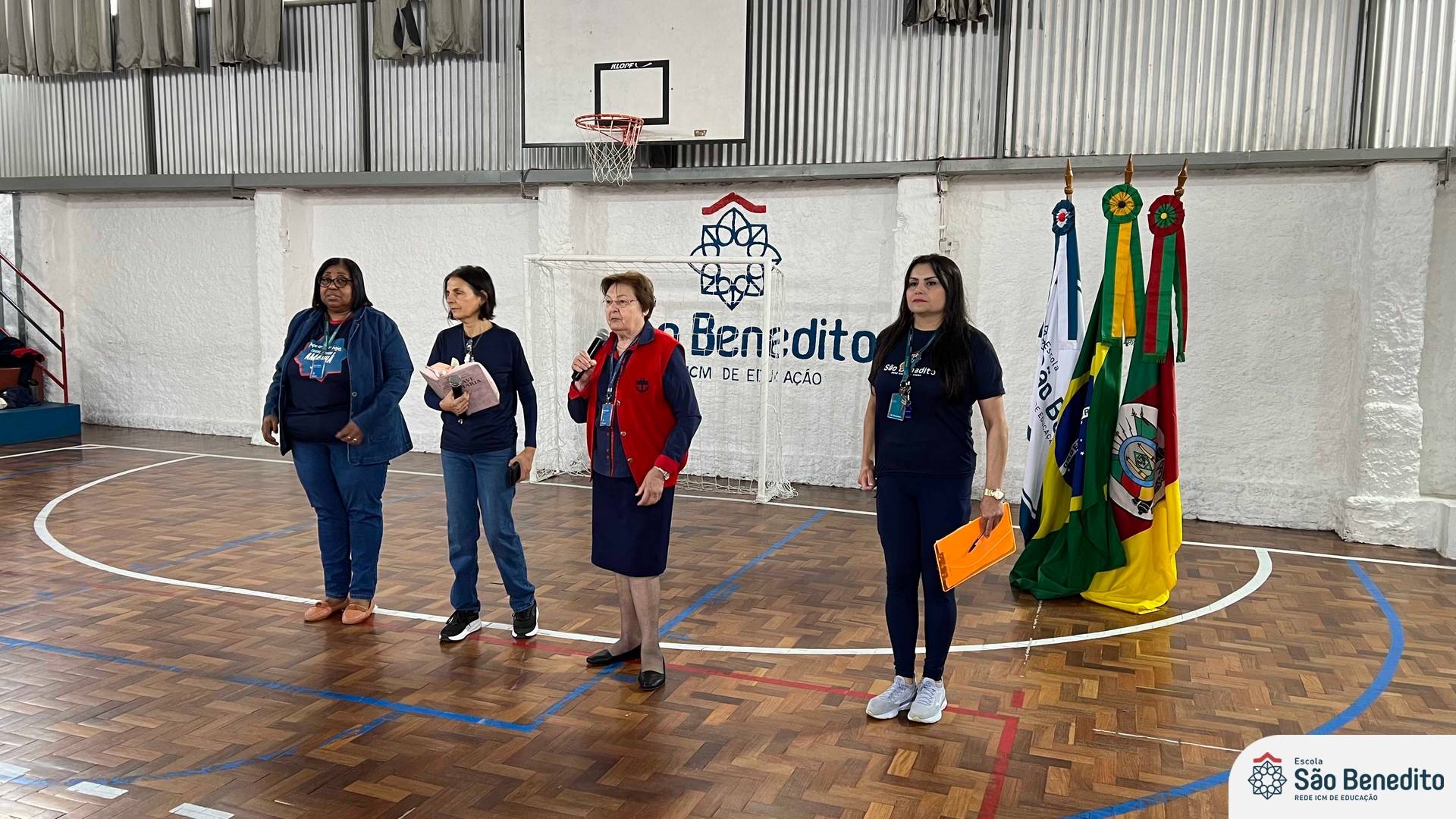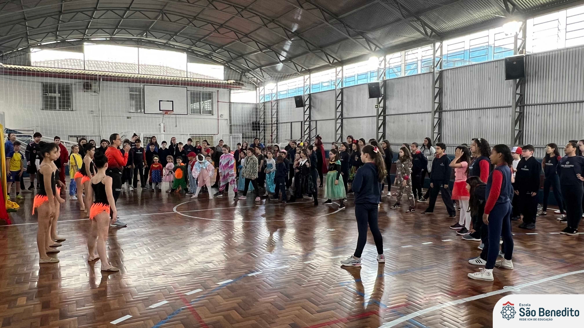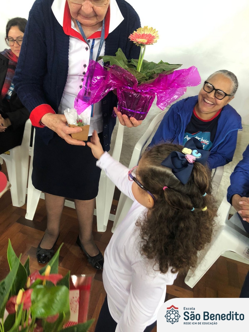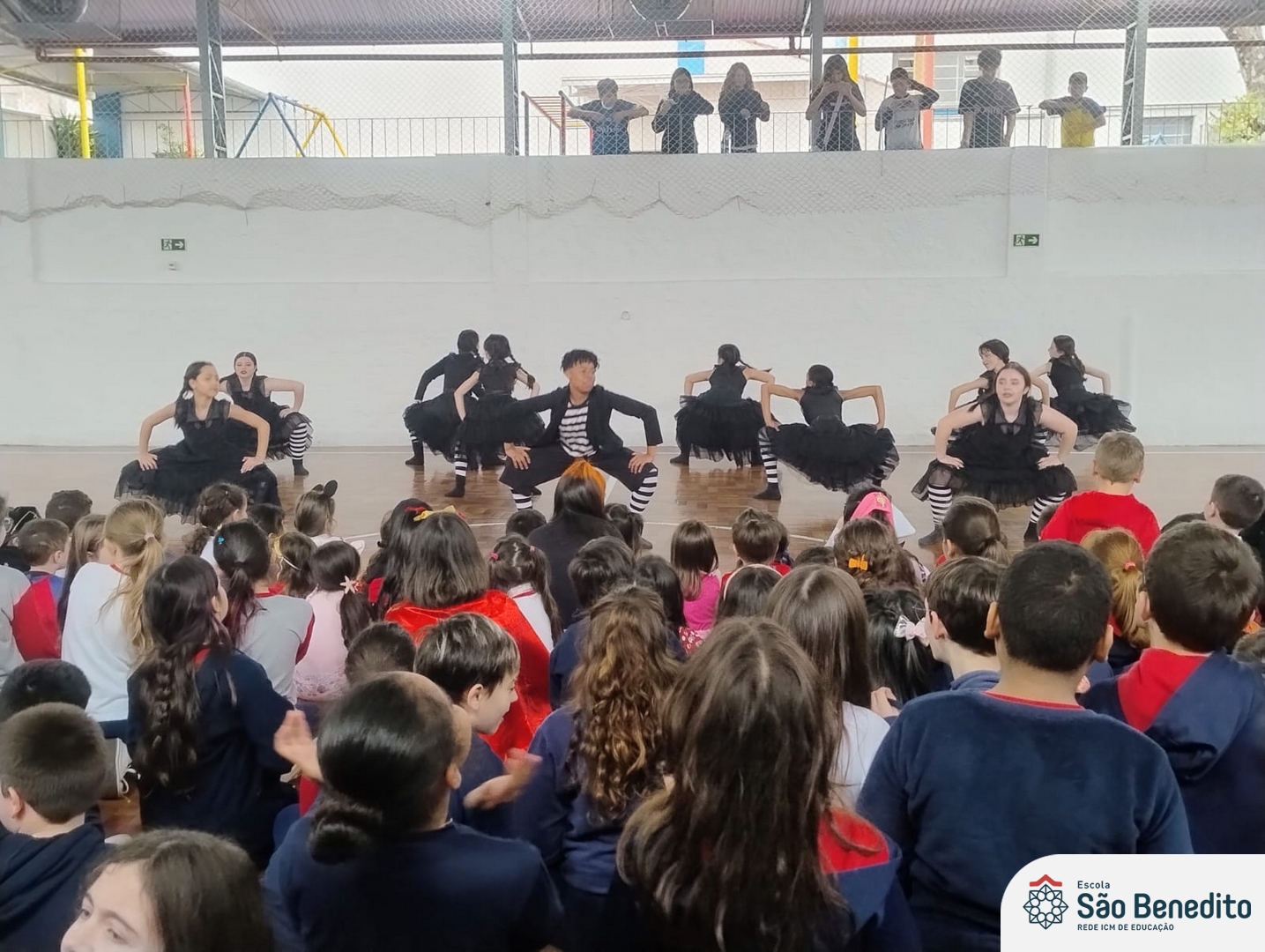 O encerramento da Semana da Criança na Escola São Benedito foi marcado por uma celebração muito especial: o aniversário da querida irmã Ines Terezinha Sangalli, diretora da instituição. Estudantes, professores e monitores, desde a Educação Infantil até o Ensino Fundamental II, se uniram para prestar homenagens com apresentações emocionantes, muito amor, carinho e mimos exclusivos. A ocasião foi um verdadeiro símbolo de gratidão e afeto, fechando a semana de festividades com chave de ouro.