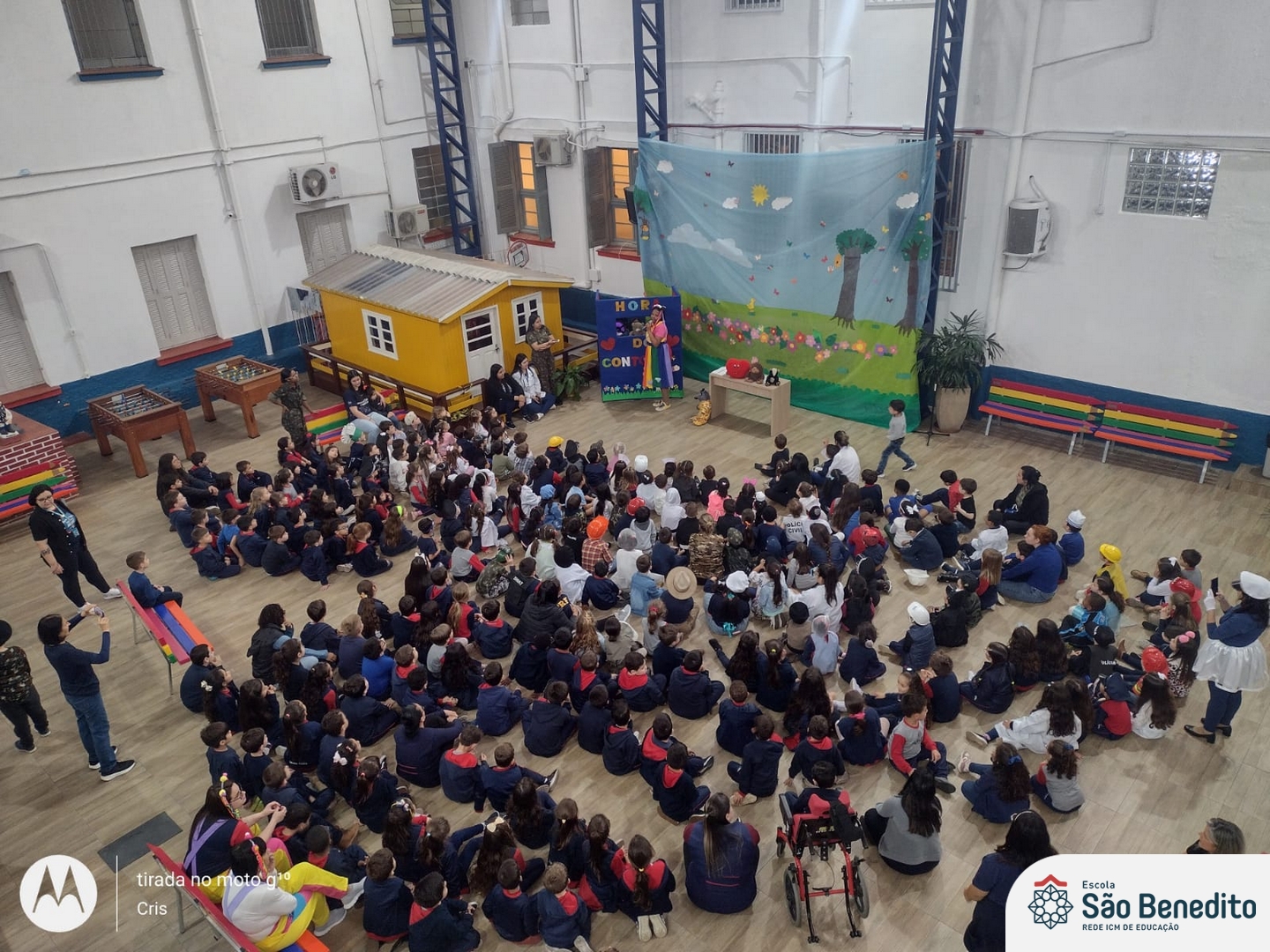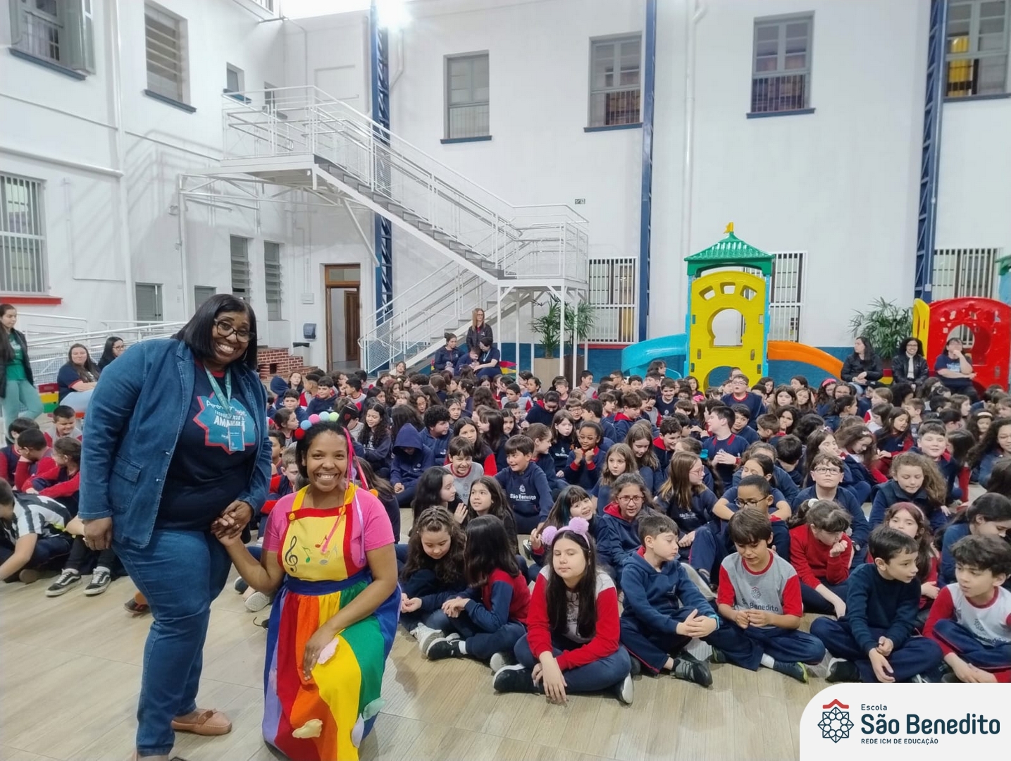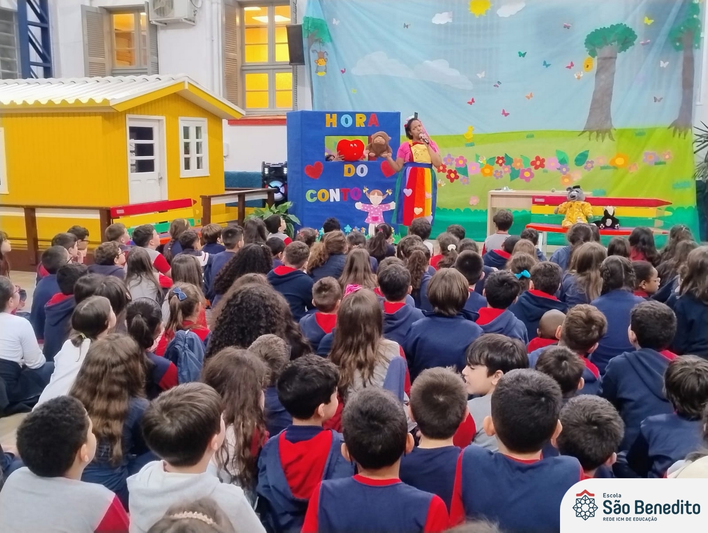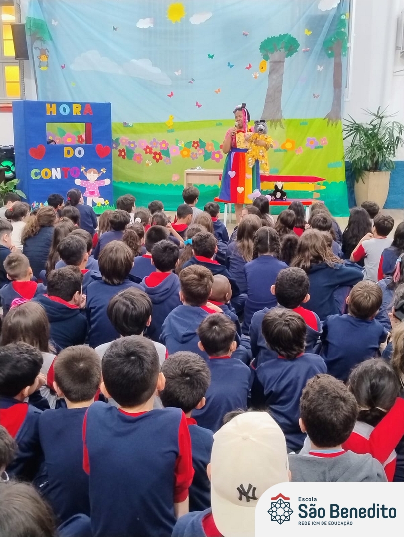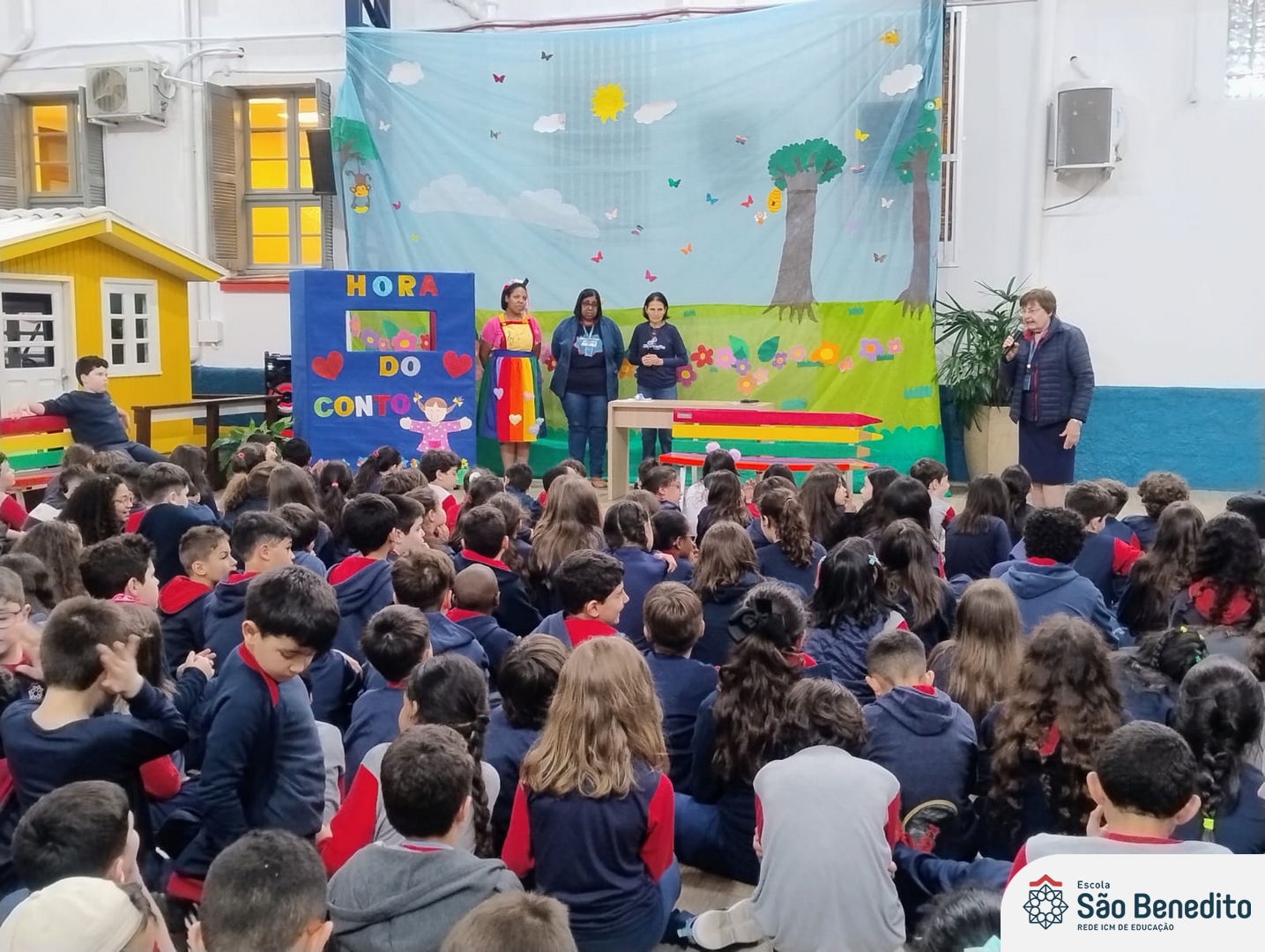 O Turno Extracurricular proporcionou momentos memoráveis e cheios de alegria para a criançada do São Benedito. Uma das atividades mais envolventes e aclamadas, foi a Hora do Conto, que estrelando a história “Pata de Elefante” e “A Magia da Felicidade”, foi uma parceria entre o Extracurricular (sob coordenação de Rosa Freire) e a professora de musicalização, Cássia Balim. Essa atividade cativou a imaginação das crianças e promoveu uma experiência literária enriquecedora.