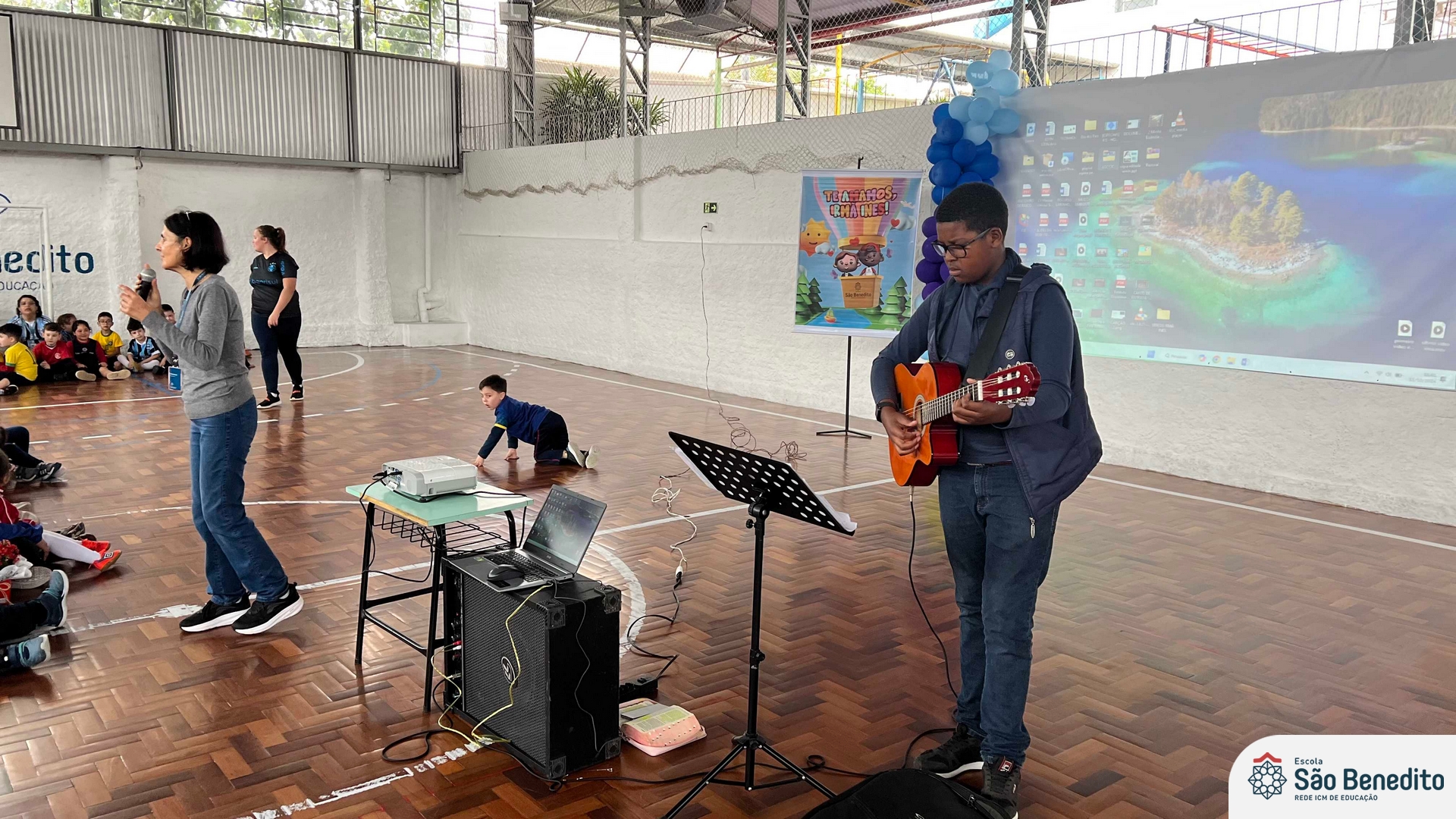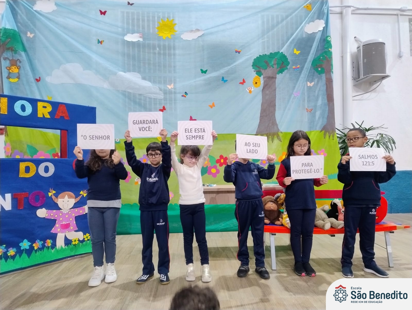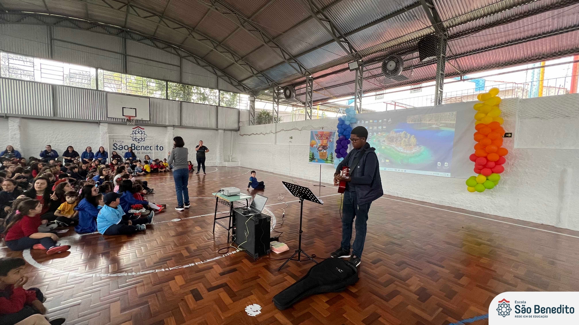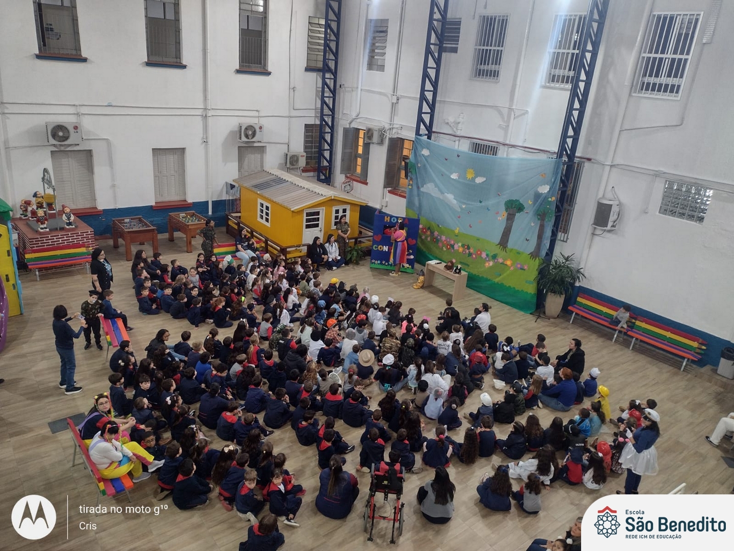O Turno Extracurricular proporcionou momentos memoráveis e cheios de alegria para a criançada do São Benedito. Uma das atividades mais envolventes e aclamadas, foi a Hora do Conto, que estrelando a história “Pata de Elefante” e “A Magia da Felicidade”, foi uma parceria entre o Extracurricular (sob coordenação de Rosa Freire) e a professora de musicalização, Cássia Balim. Essa atividade cativou a imaginação das crianças e promoveu uma experiência literária enriquecedora.
