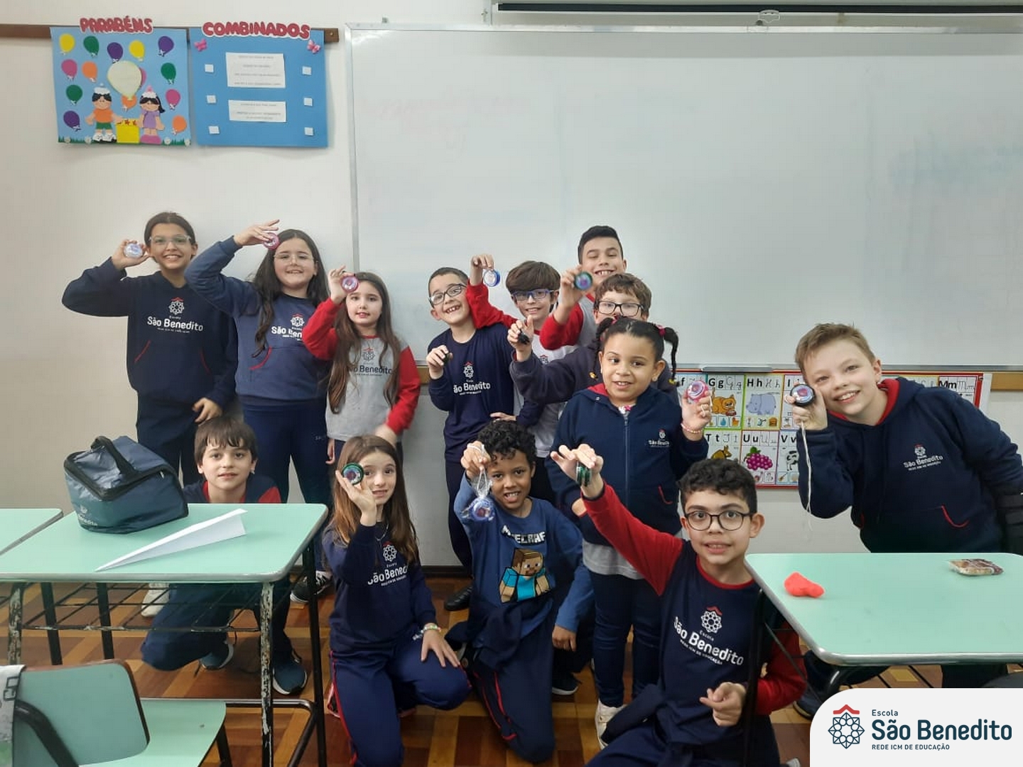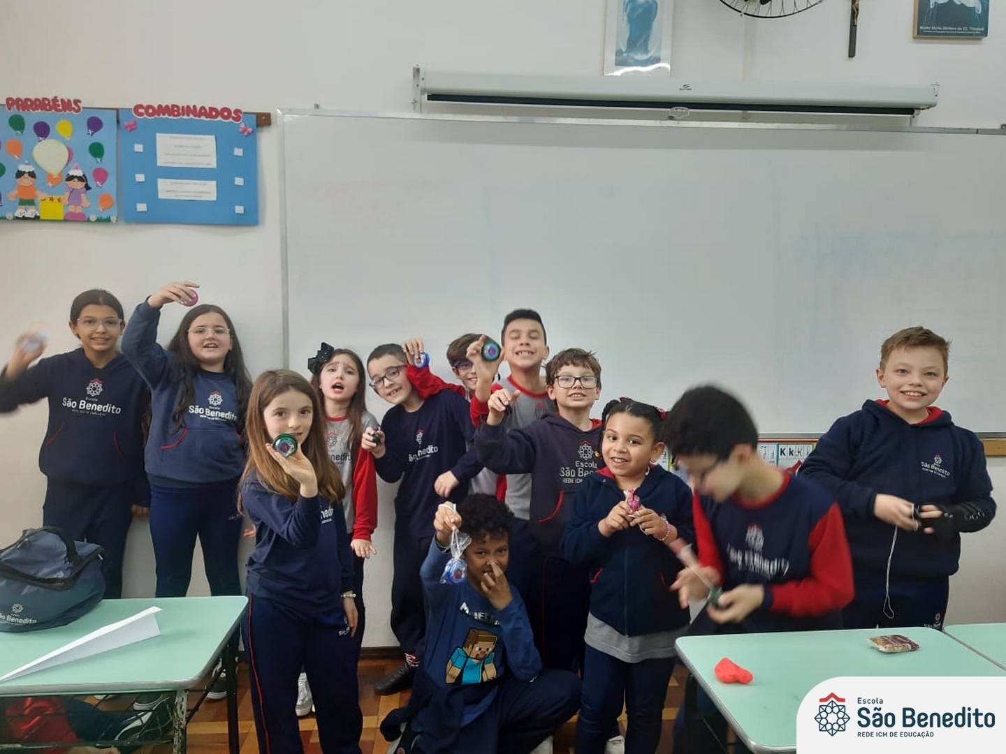 As crianças da Educação Infantil ao 5º ano da Escola São Benedito também tiveram uma surpresa especial: cada aluno recebeu um mimo único: um io-iô do Bene!