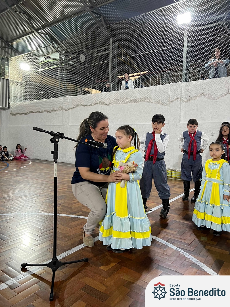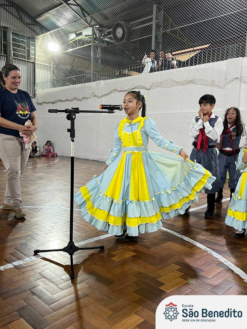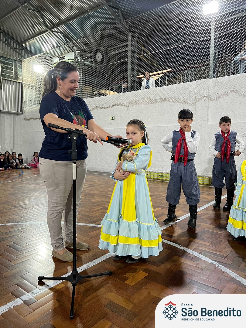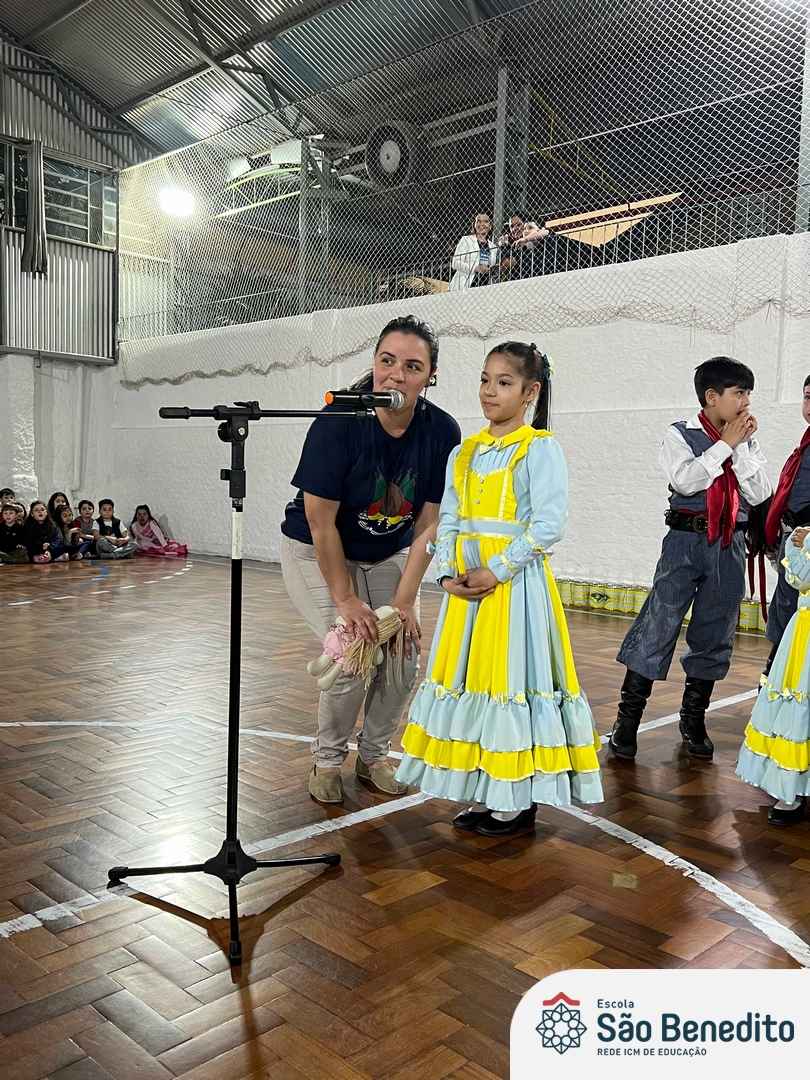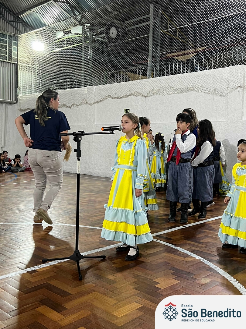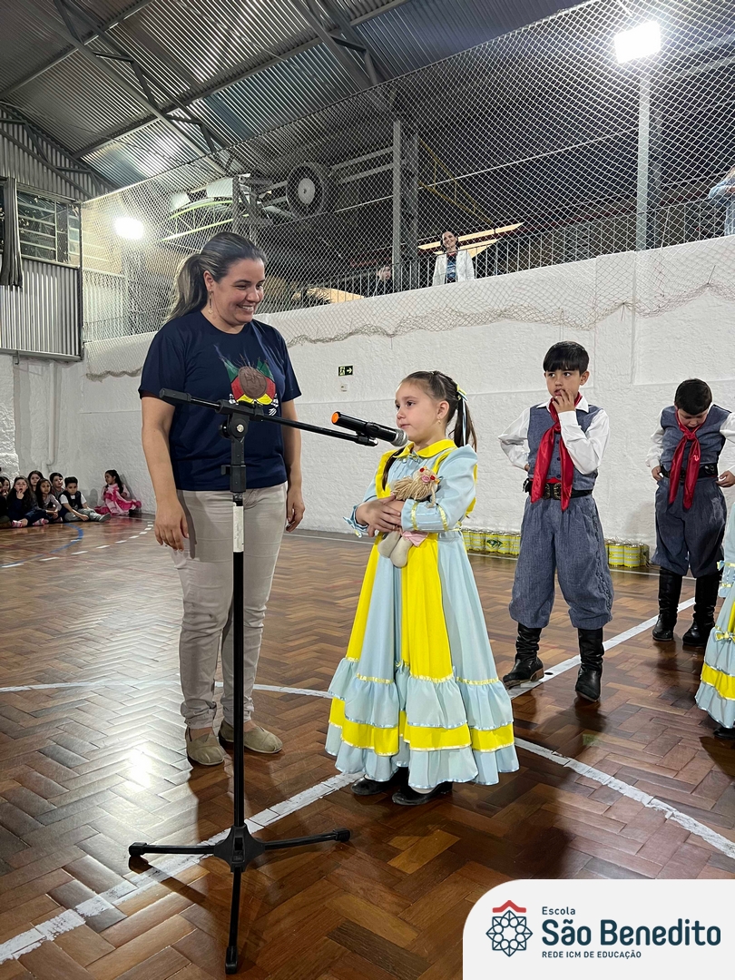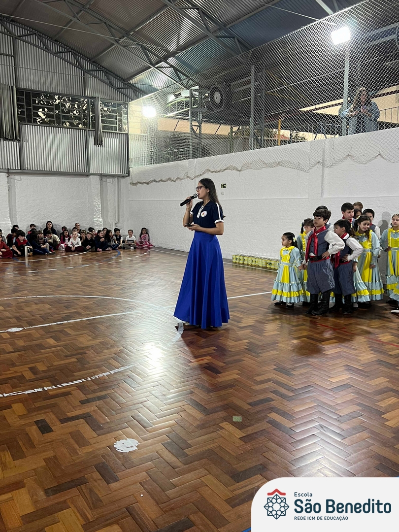 Durante a Semana Farroupilha, a Escola São Benedito celebrou com uma série de atividades tradicionalistas que envolveram toda a comunidade escolar. Houve apresentações de CTG, declamações, música e dança. Essas atividades proporcionaram um momento de confraternização e aprendizado sobre a cultura gaúcha, fortalecendo os laços entre os participantes e celebrando as tradições do Rio Grande do Sul.