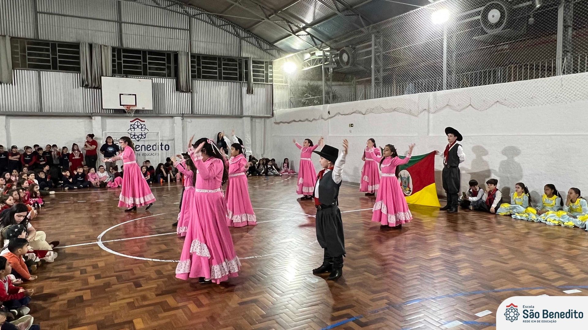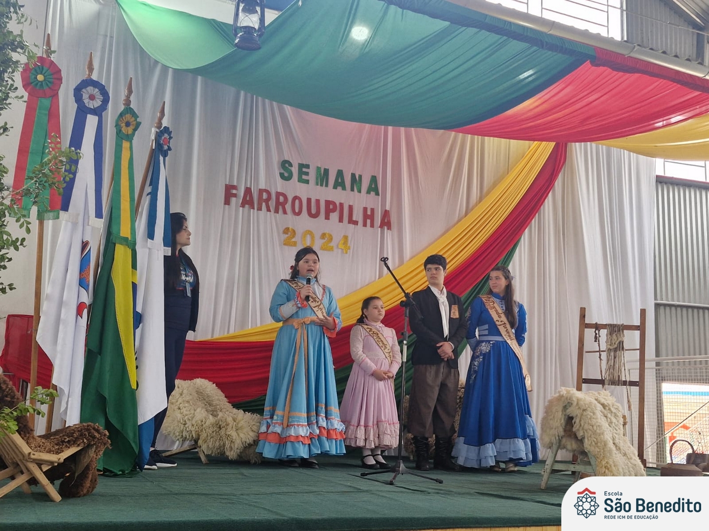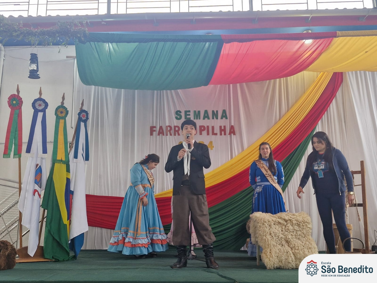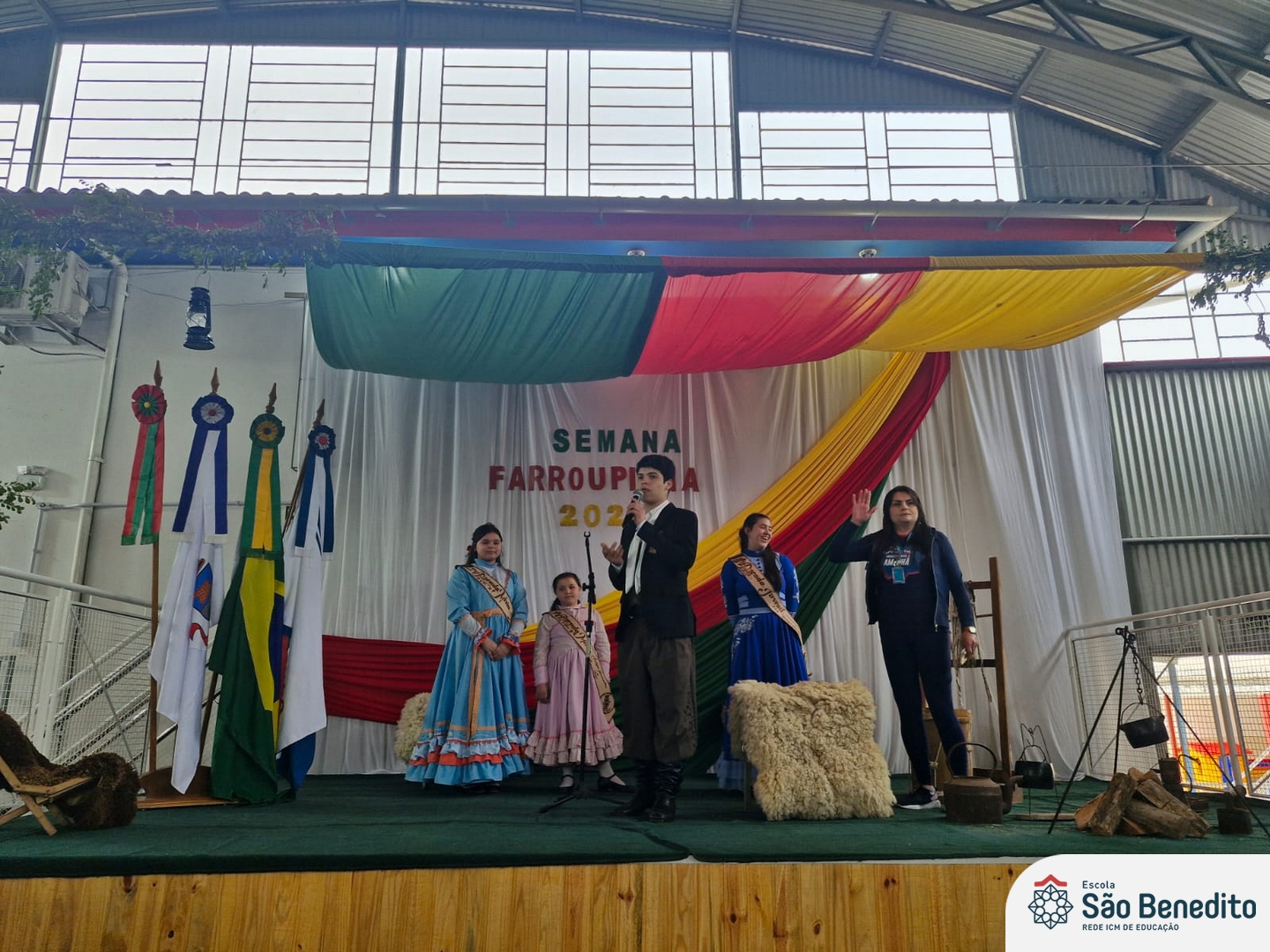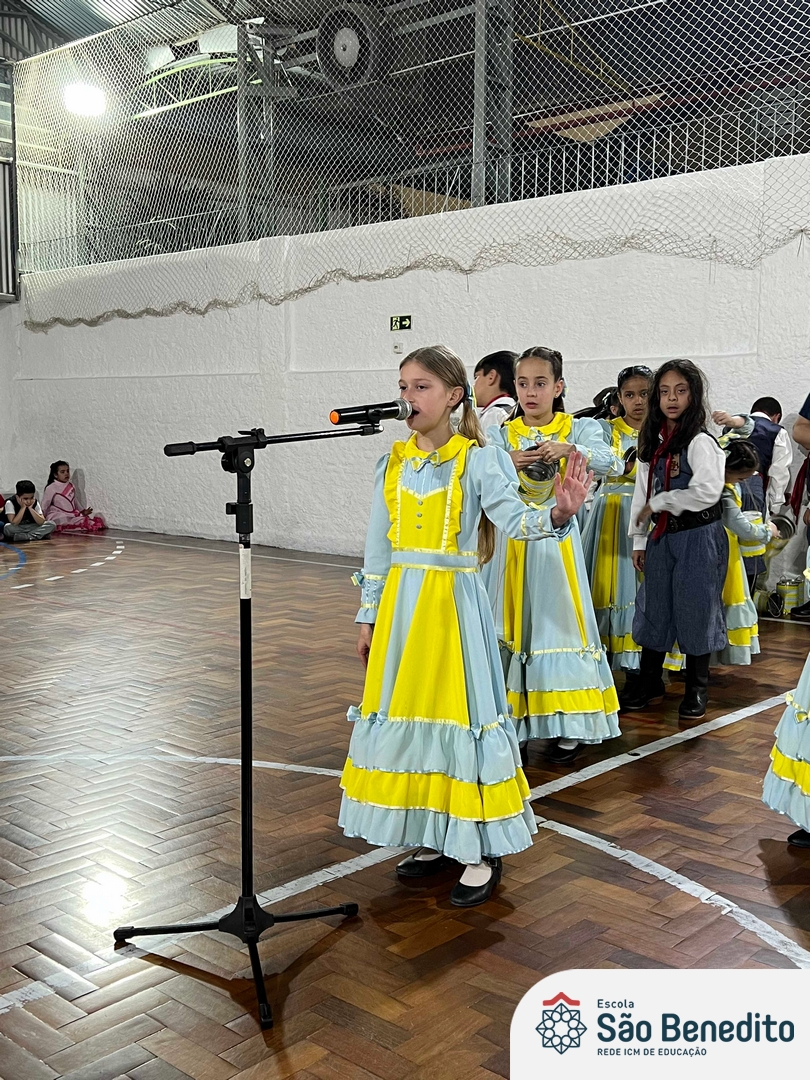 Durante a Semana Farroupilha, a Escola São Benedito celebrou com uma série de atividades tradicionalistas que envolveram toda a comunidade escolar. Houve apresentações de CTG, declamações, música e dança. Essas atividades proporcionaram um momento de confraternização e aprendizado sobre a cultura gaúcha, fortalecendo os laços entre os participantes e celebrando as tradições do Rio Grande do Sul.