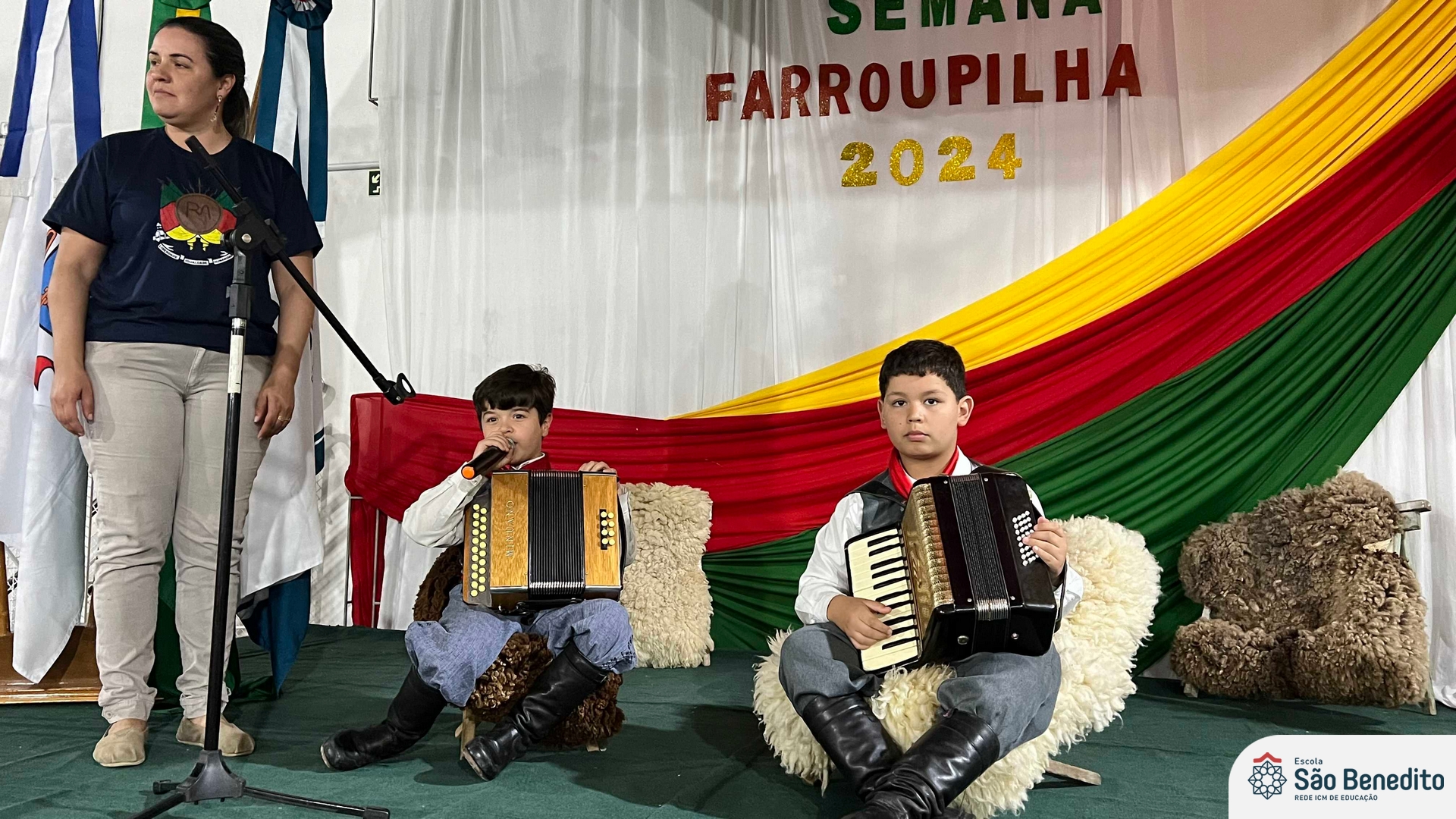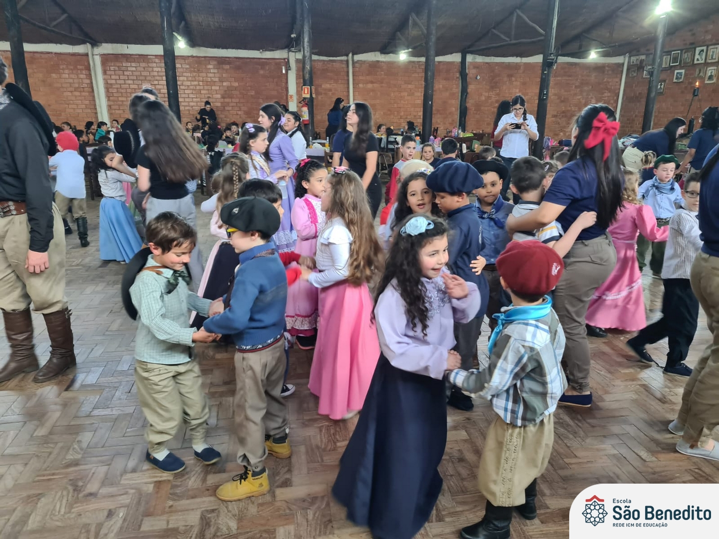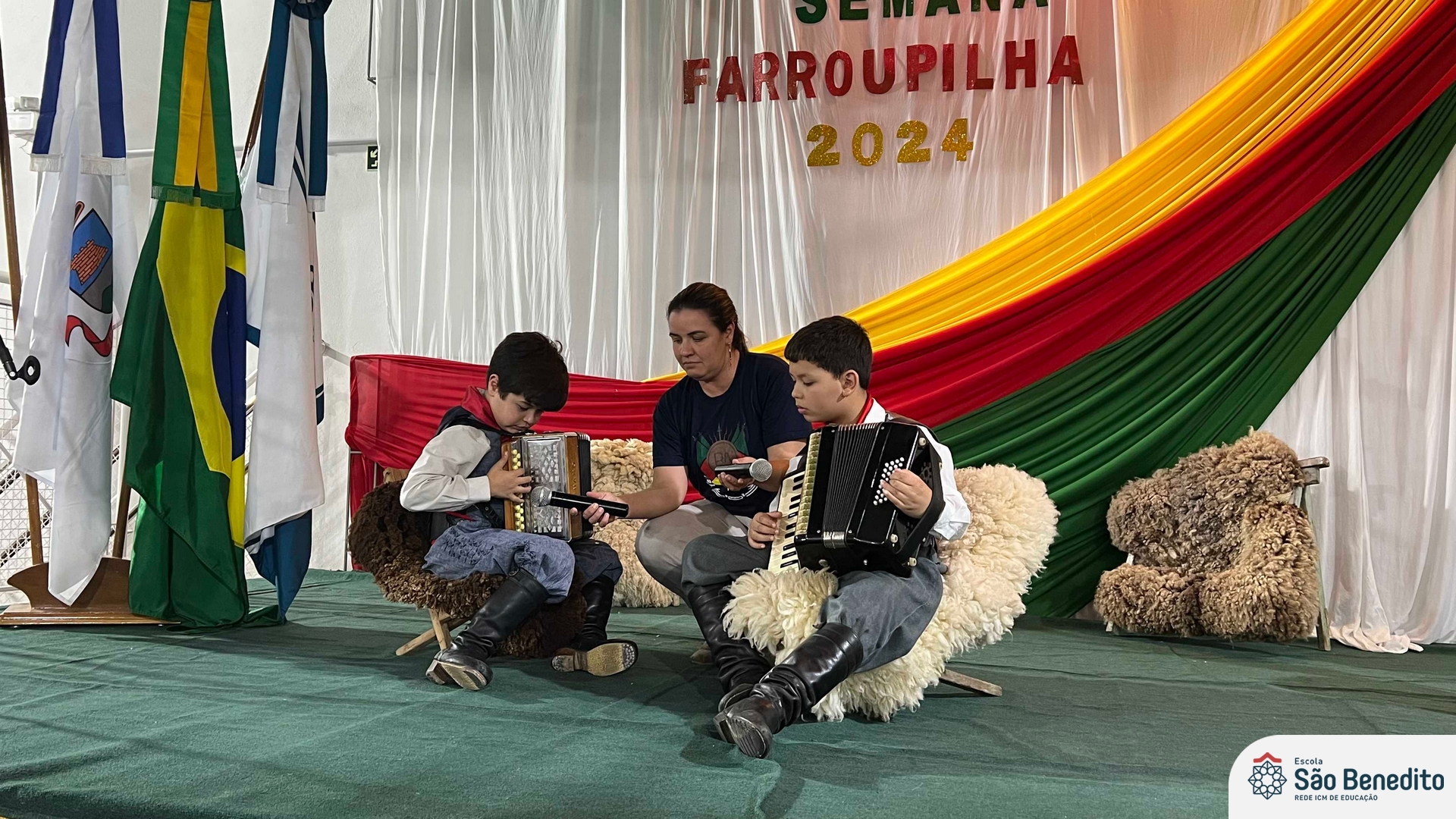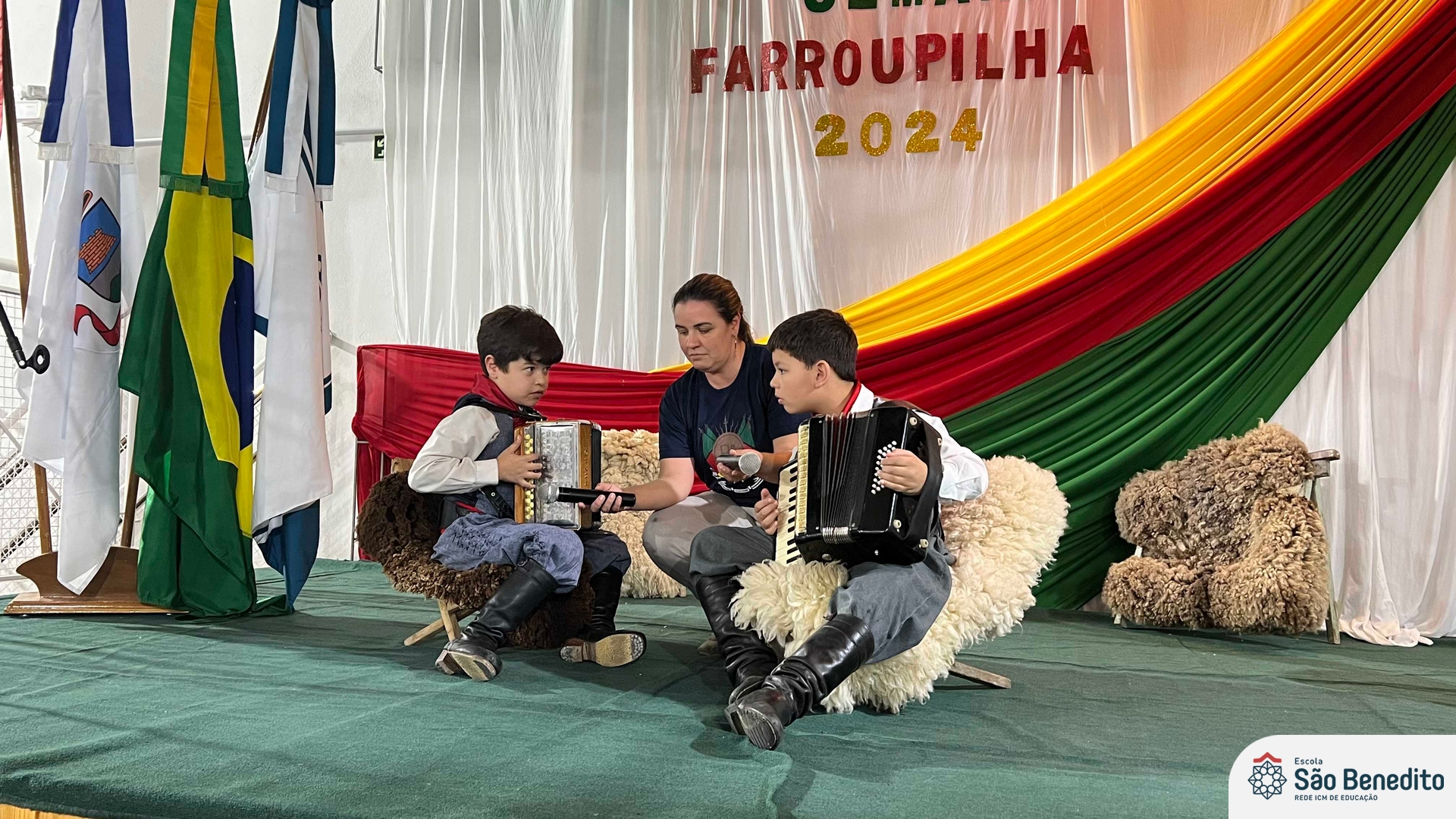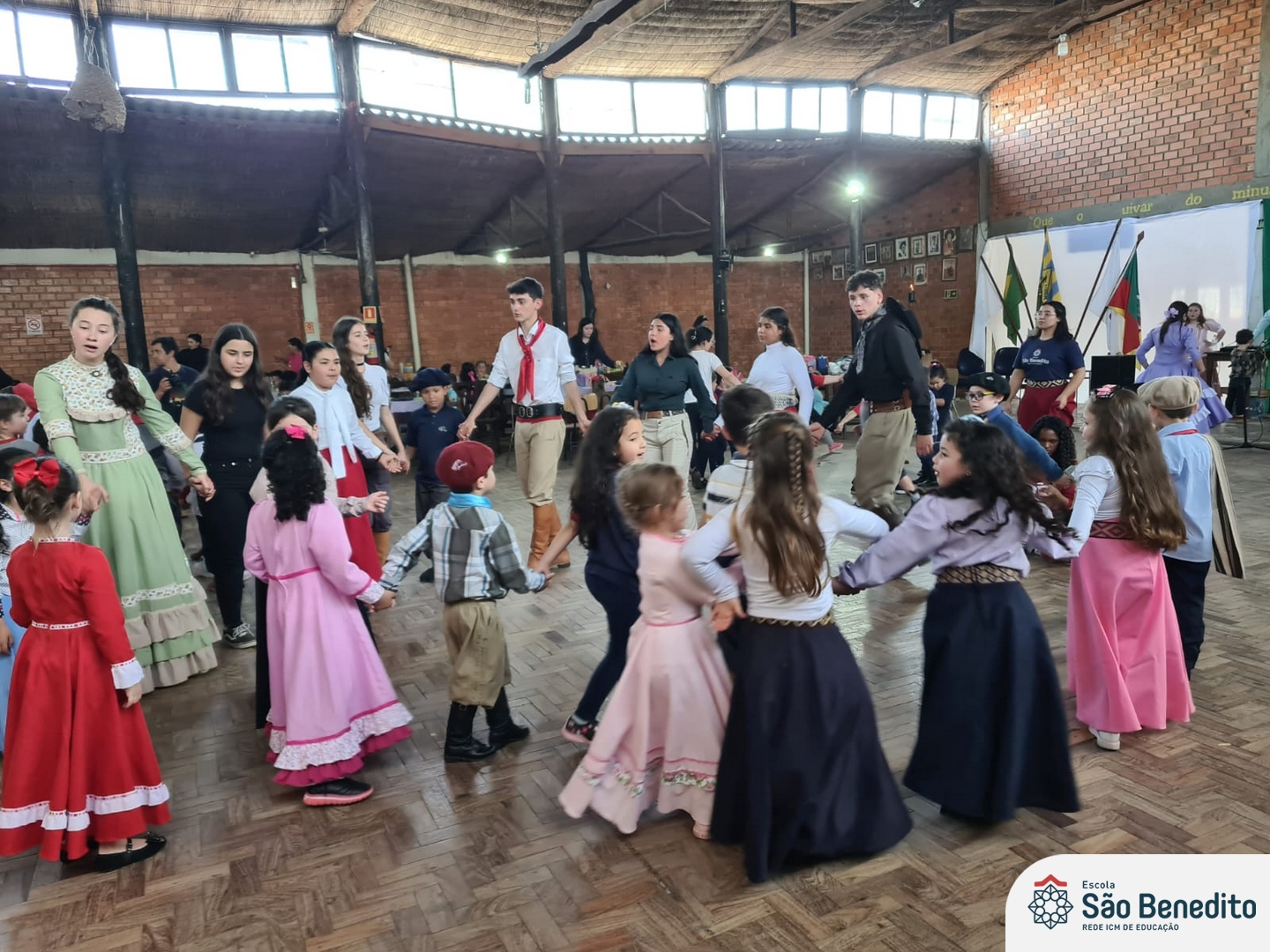 Durante a Semana Farroupilha, a Escola São Benedito celebrou com uma série de atividades tradicionalistas que envolveram toda a comunidade escolar. Houve apresentações de CTG, declamações, música e dança. Essas atividades proporcionaram um momento de confraternização e aprendizado sobre a cultura gaúcha, fortalecendo os laços entre os participantes e celebrando as tradições do Rio Grande do Sul.