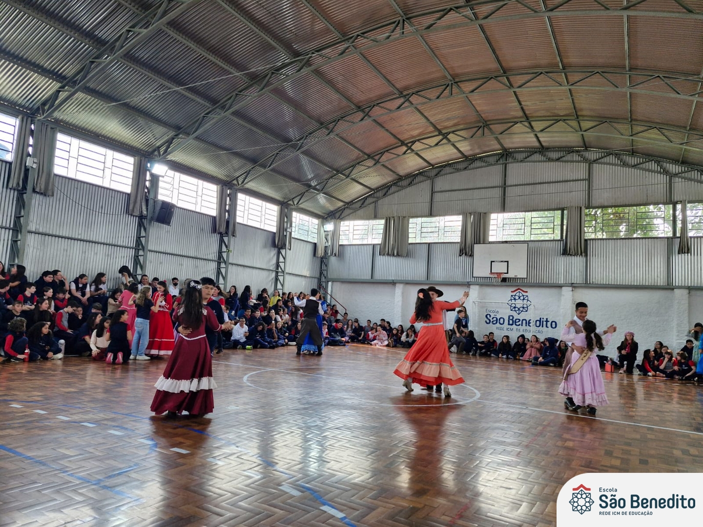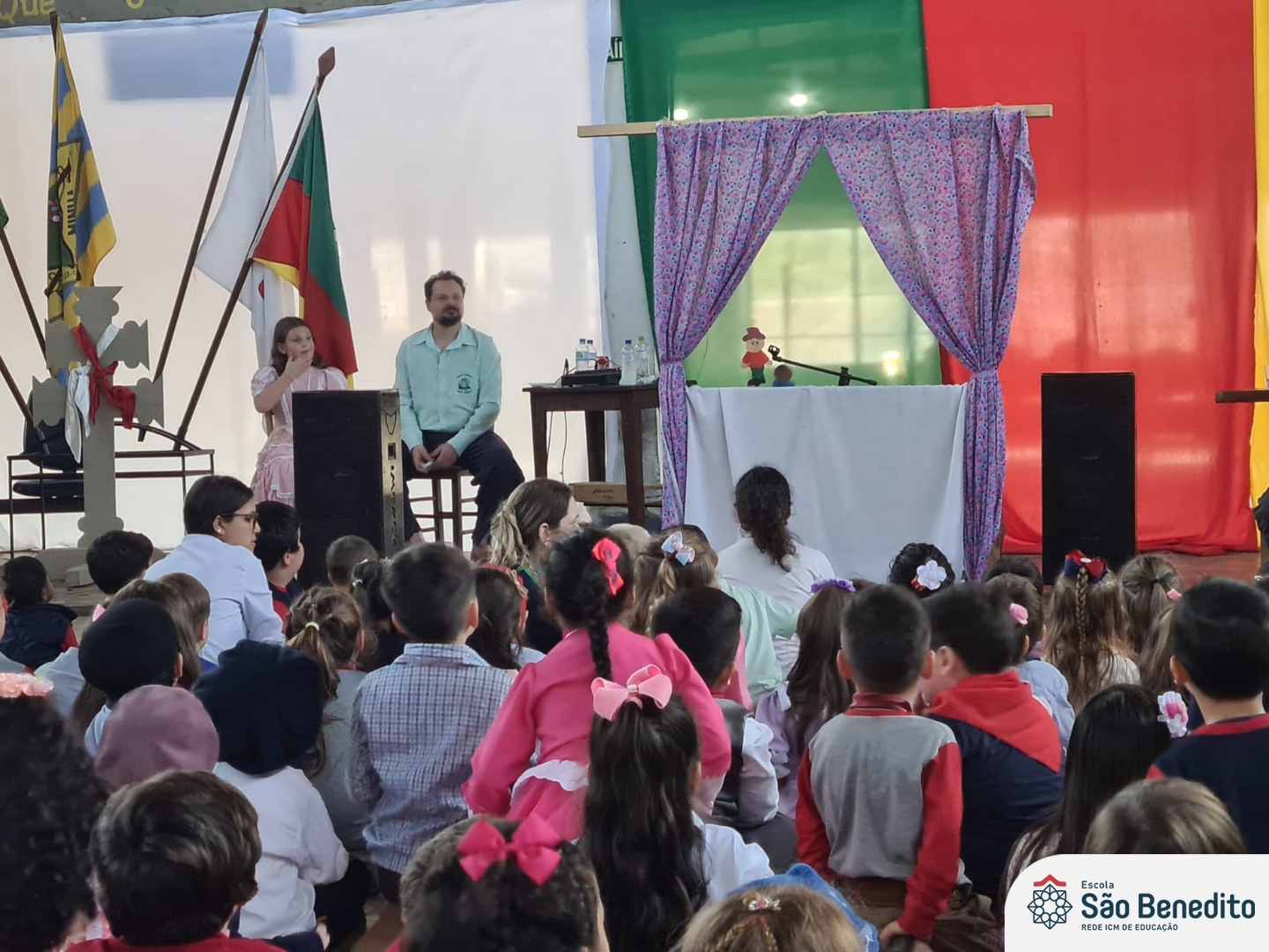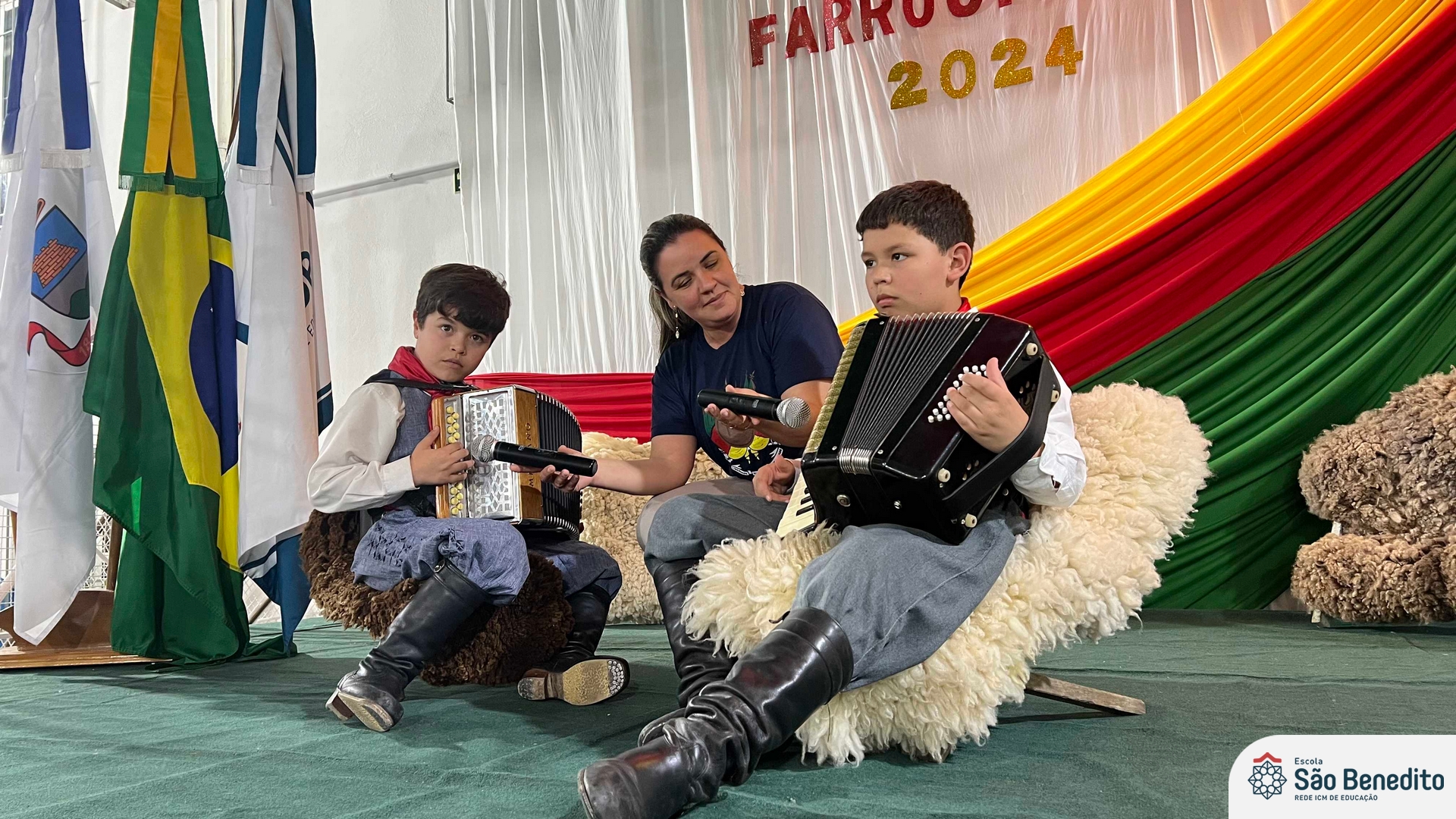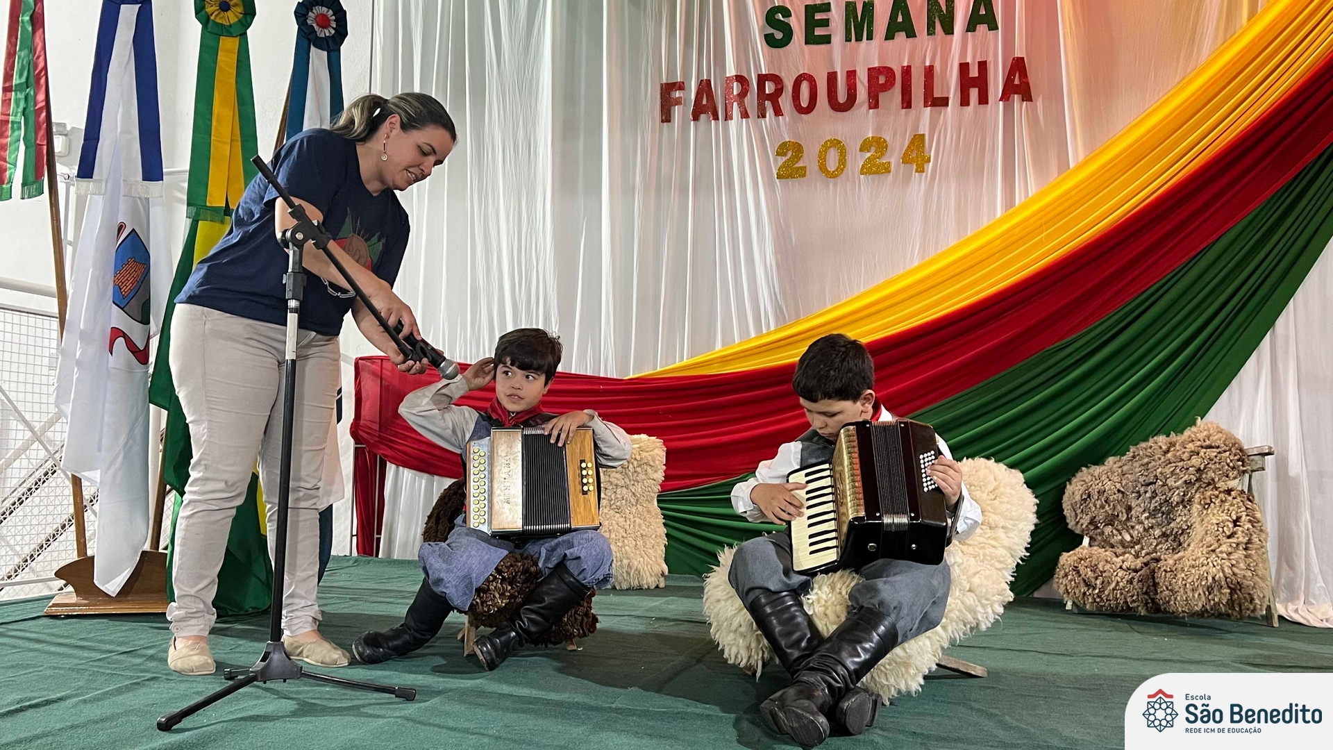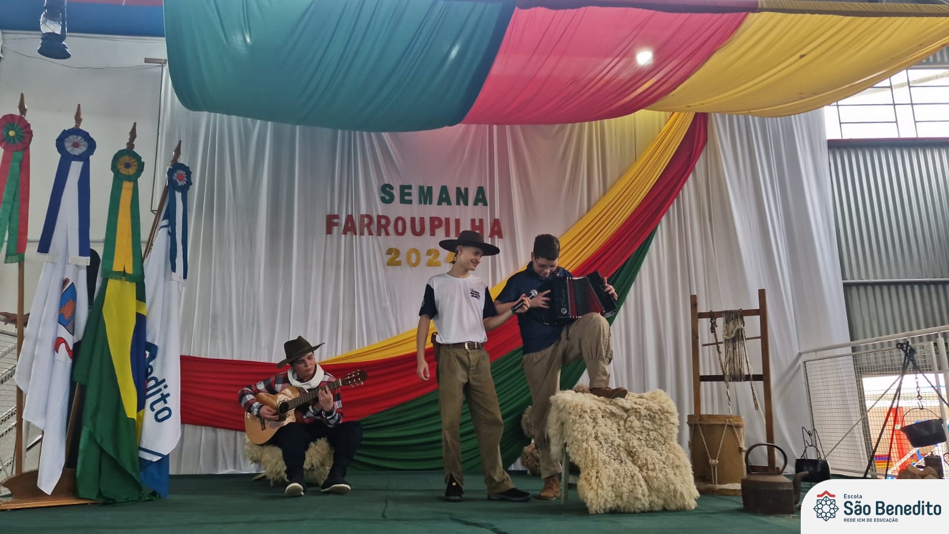Durante a Semana Farroupilha, a Escola São Benedito celebrou com uma série de atividades tradicionalistas que envolveram toda a comunidade escolar. Houve apresentações de CTG, declamações, música e dança. Essas atividades proporcionaram um momento de confraternização e aprendizado sobre a cultura gaúcha, fortalecendo os laços entre os participantes e celebrando as tradições do Rio Grande do Sul.