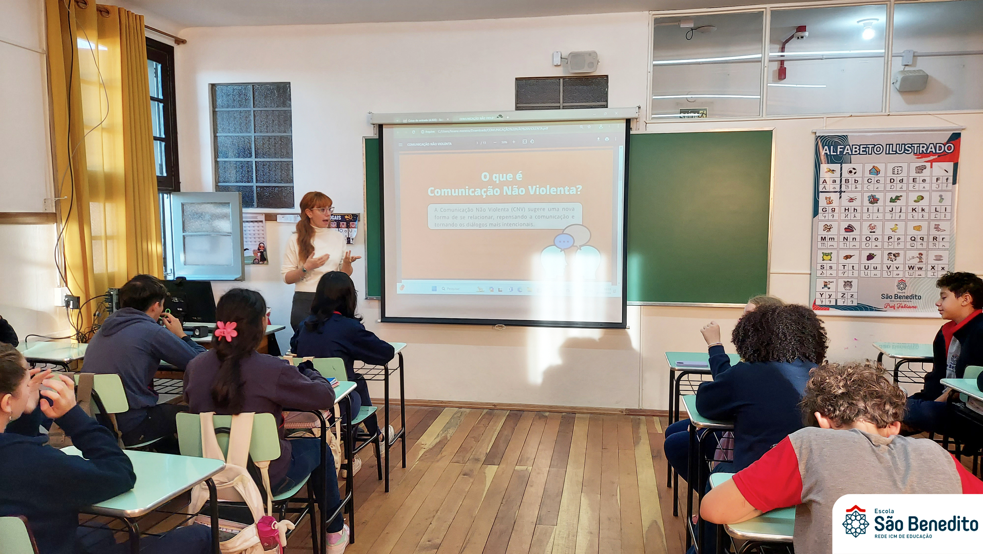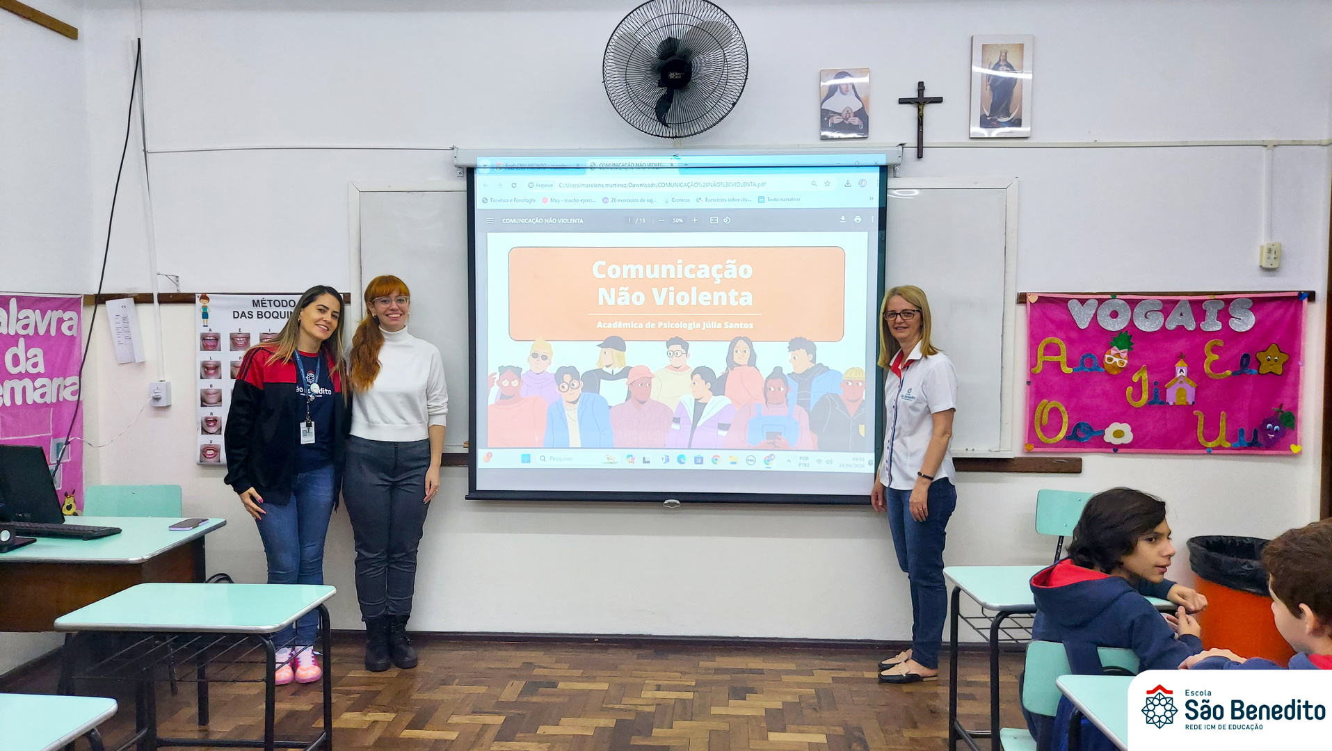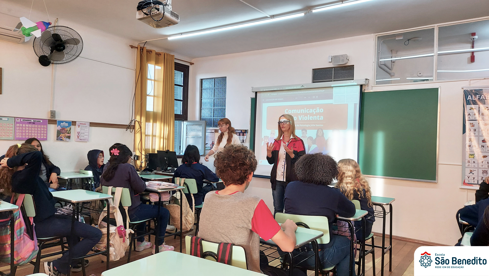 No dia 24 de abril, o Serviço de Orientação Educacional (Irmã Georgina Guarize), em parceria com a estudante de psicologia, Júlia Rosa dos Santos, iniciou um projeto sobre comunicação não violenta com os estudantes do Ensino Fundamental II. O objetivo da iniciativa é auxiliar os estudantes na comunicação e nos relacionamentos através do entendimento da comunicação não violenta e seus princípios.