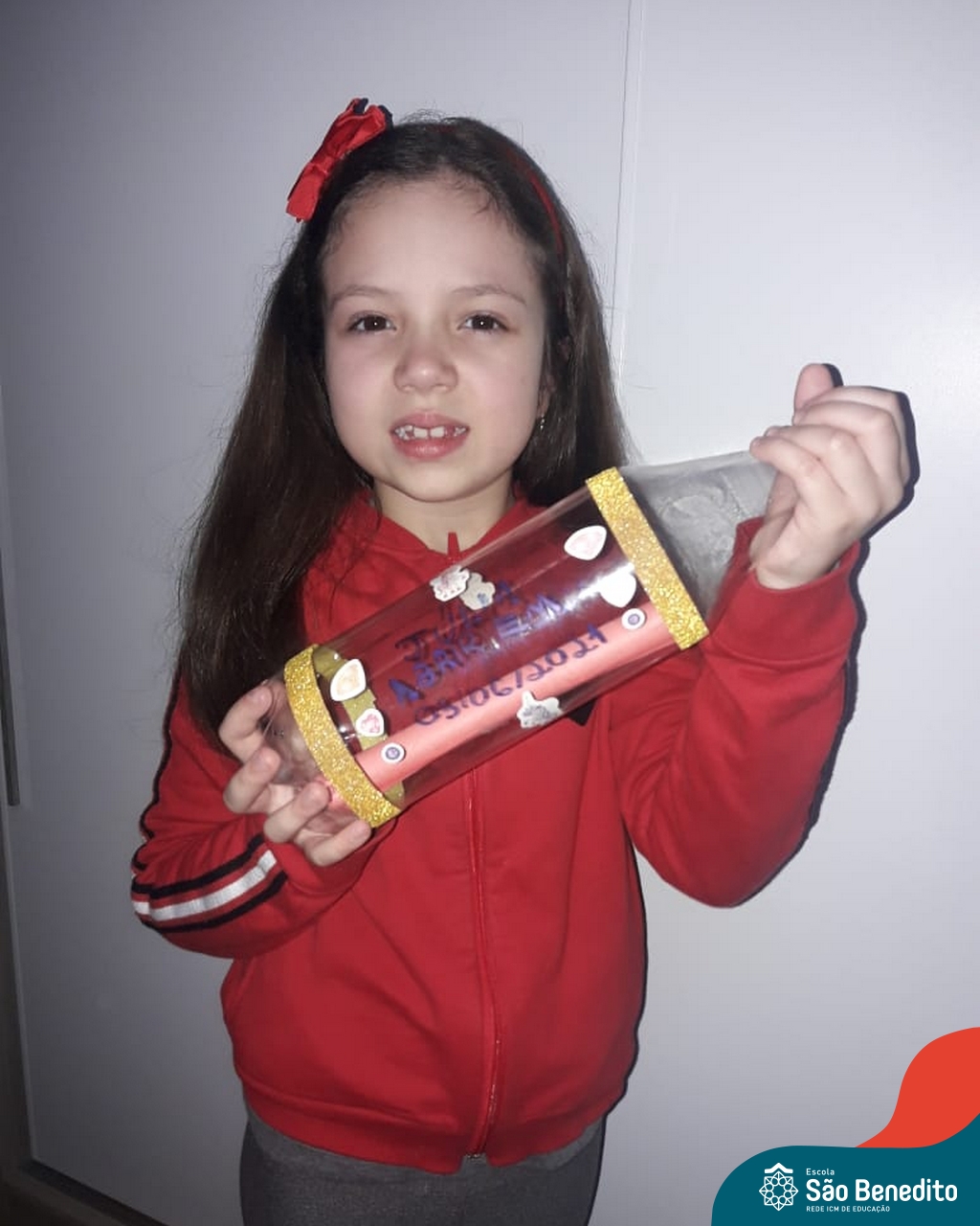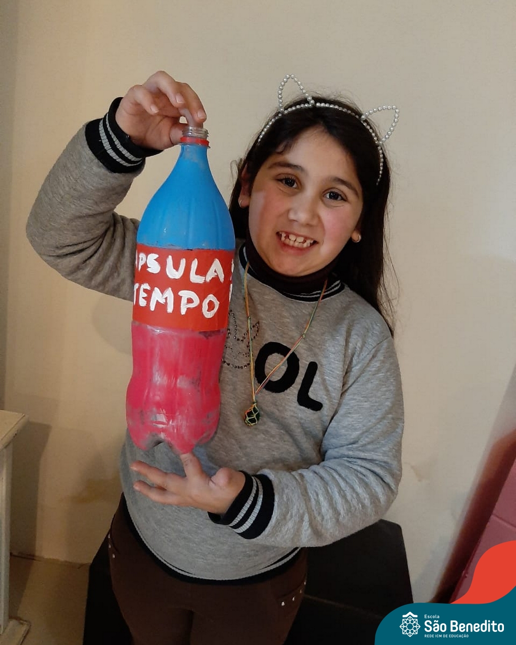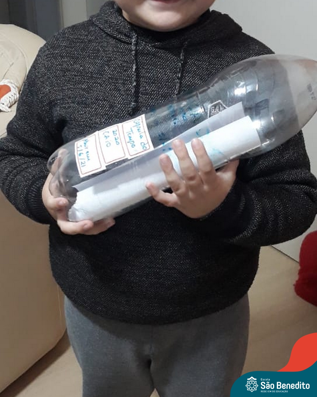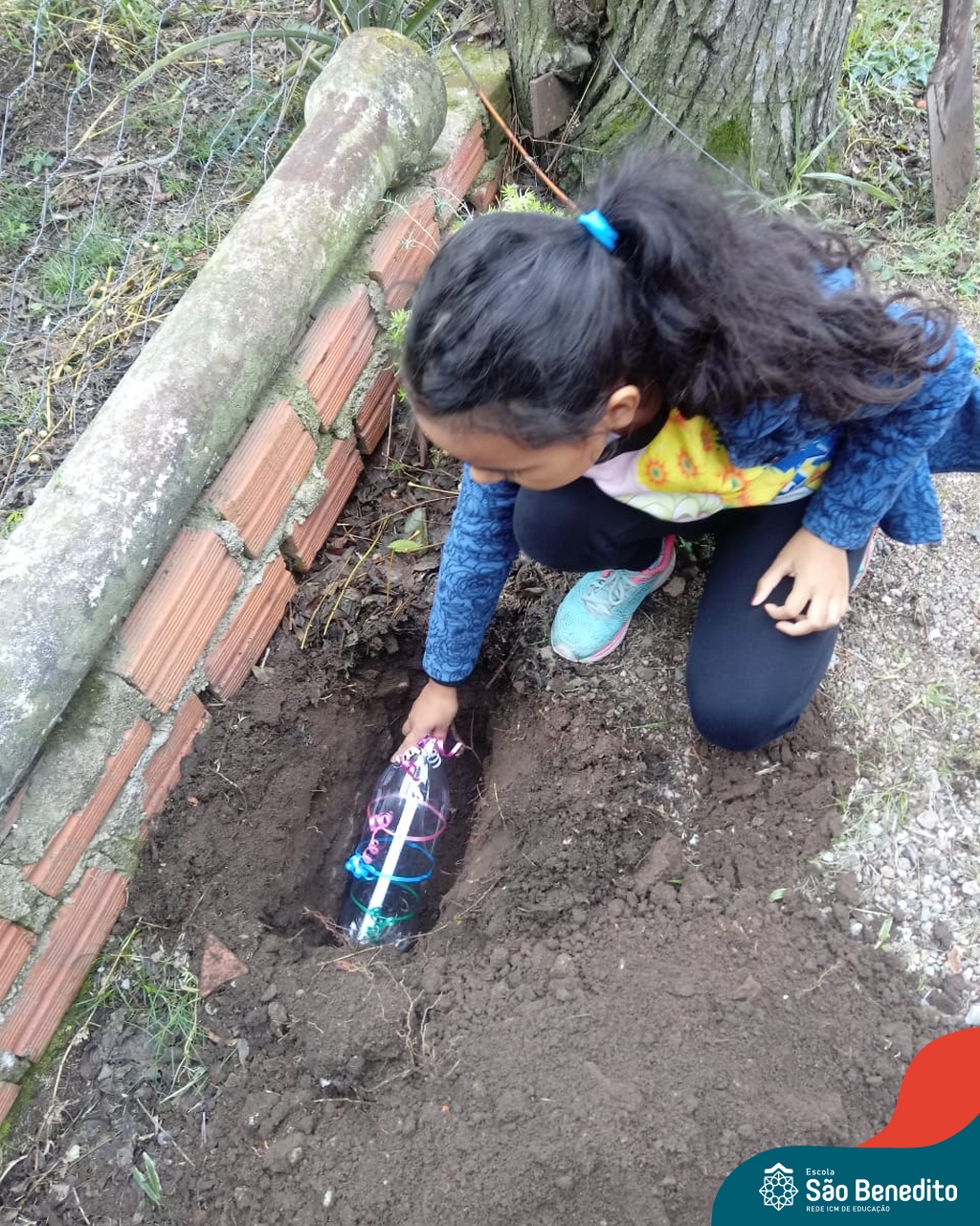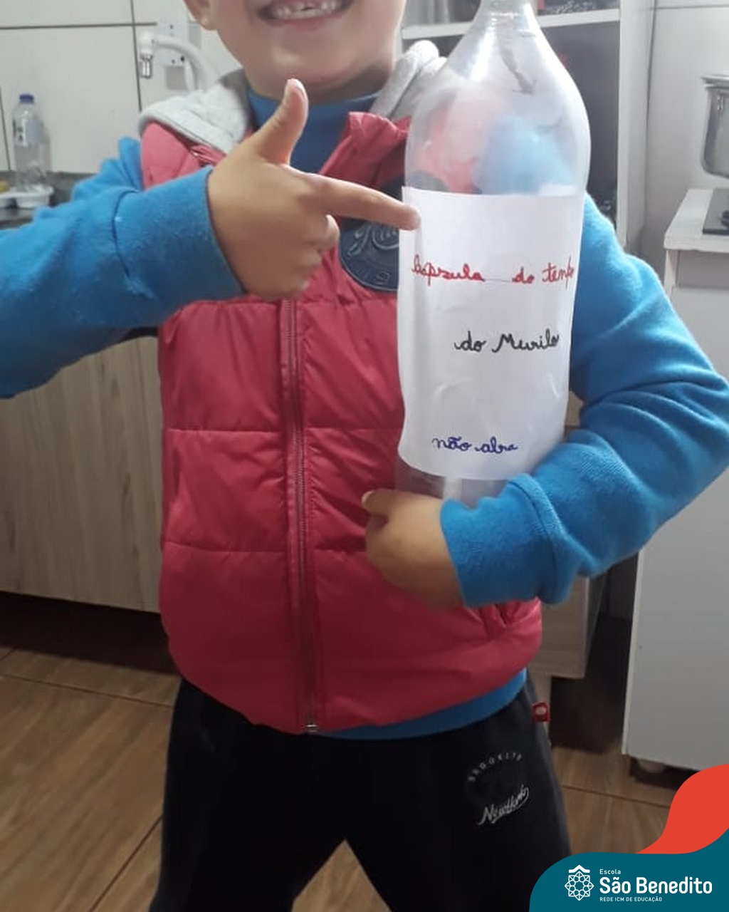 As cápsulas foram guardadas em um lugar secreto que cada um escolheu; algumas até enterradas! A ideia é que os alunos abram somente daqui um ano, recordando esse momento.