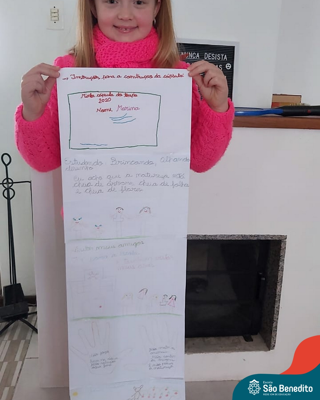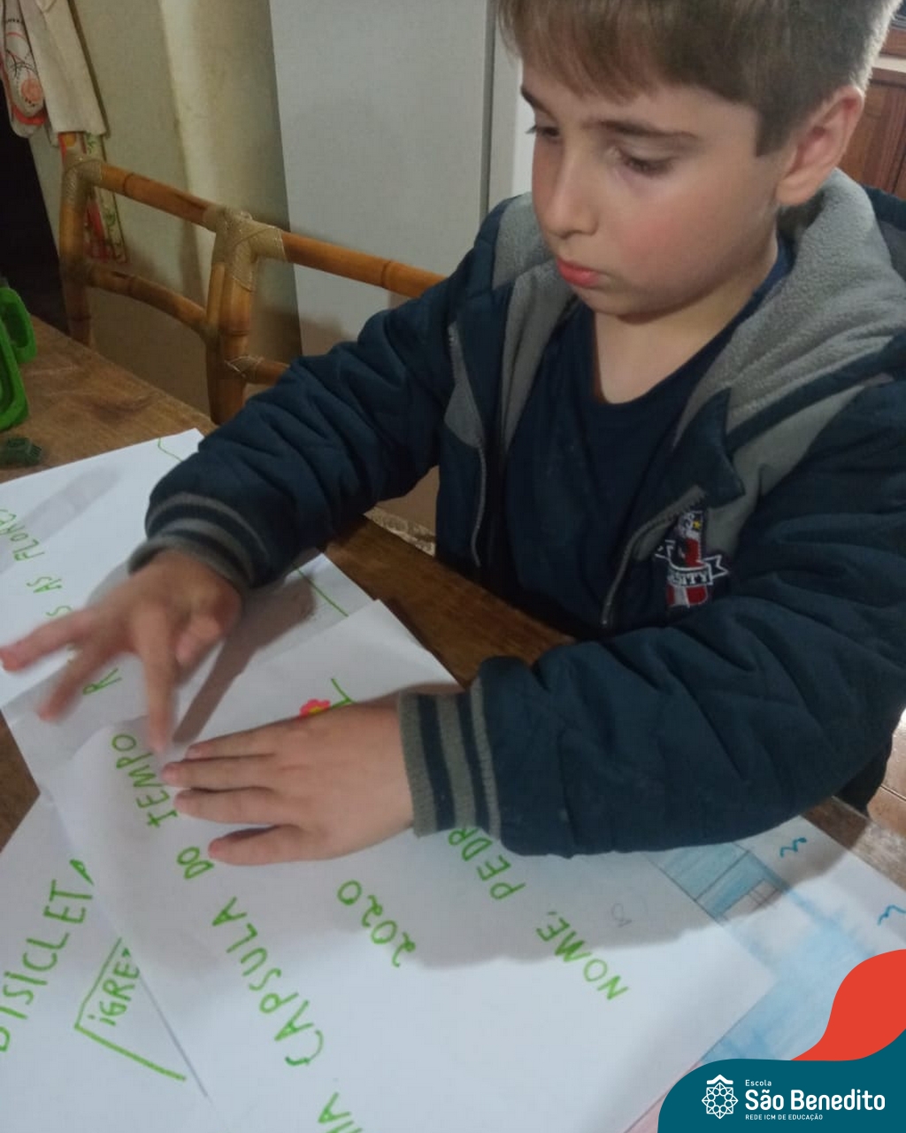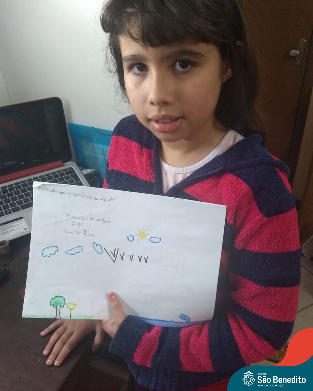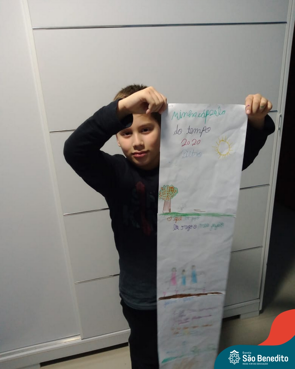 As cápsulas foram guardadas em um lugar secreto que cada um escolheu; algumas até enterradas! A ideia é que os alunos abram somente daqui um ano, recordando esse momento.