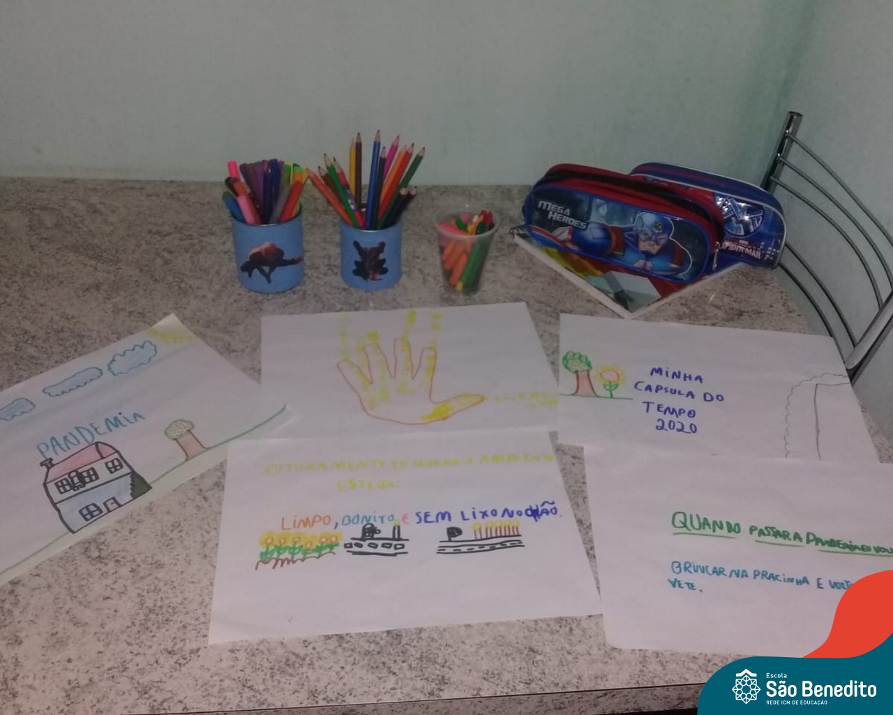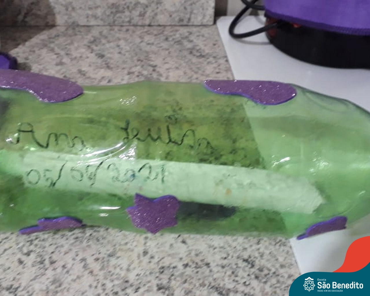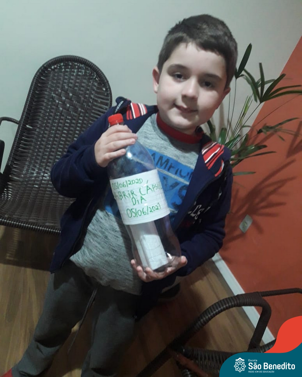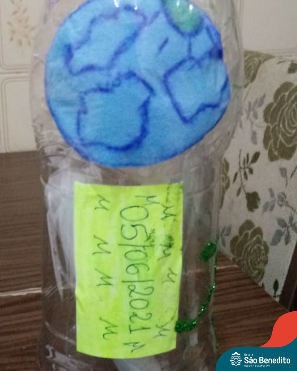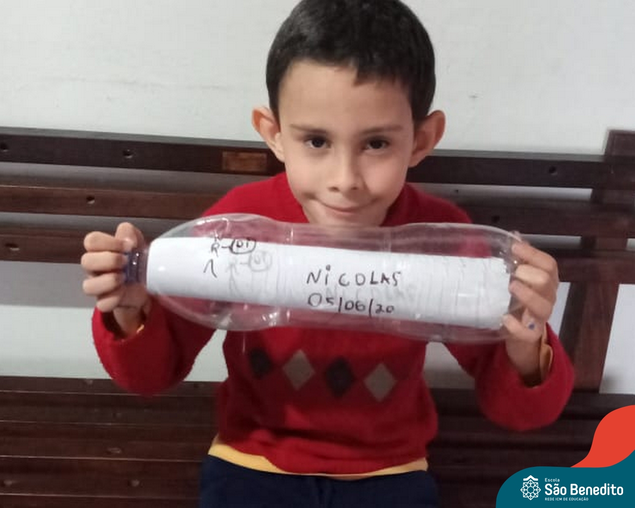Cada aluno criou para si um desafio de cuidar mais do meio ambiente, e todos assumiram esse lindo compromisso anotando tudo no conteúdo da cápsula. Os registros não mentem: o talento dos pequenos é gigante. Tivemos muitos desenhos, repletos de cores, frases, sonhos, e principalmente: muita esperança.