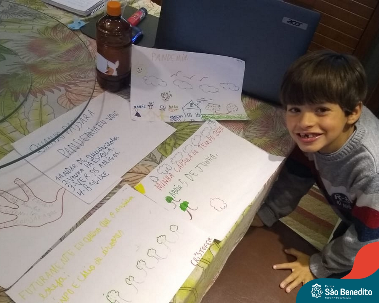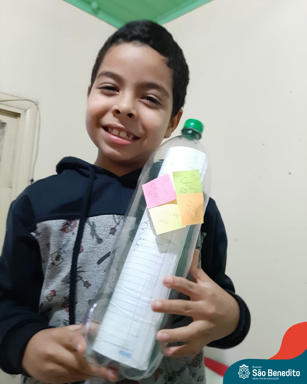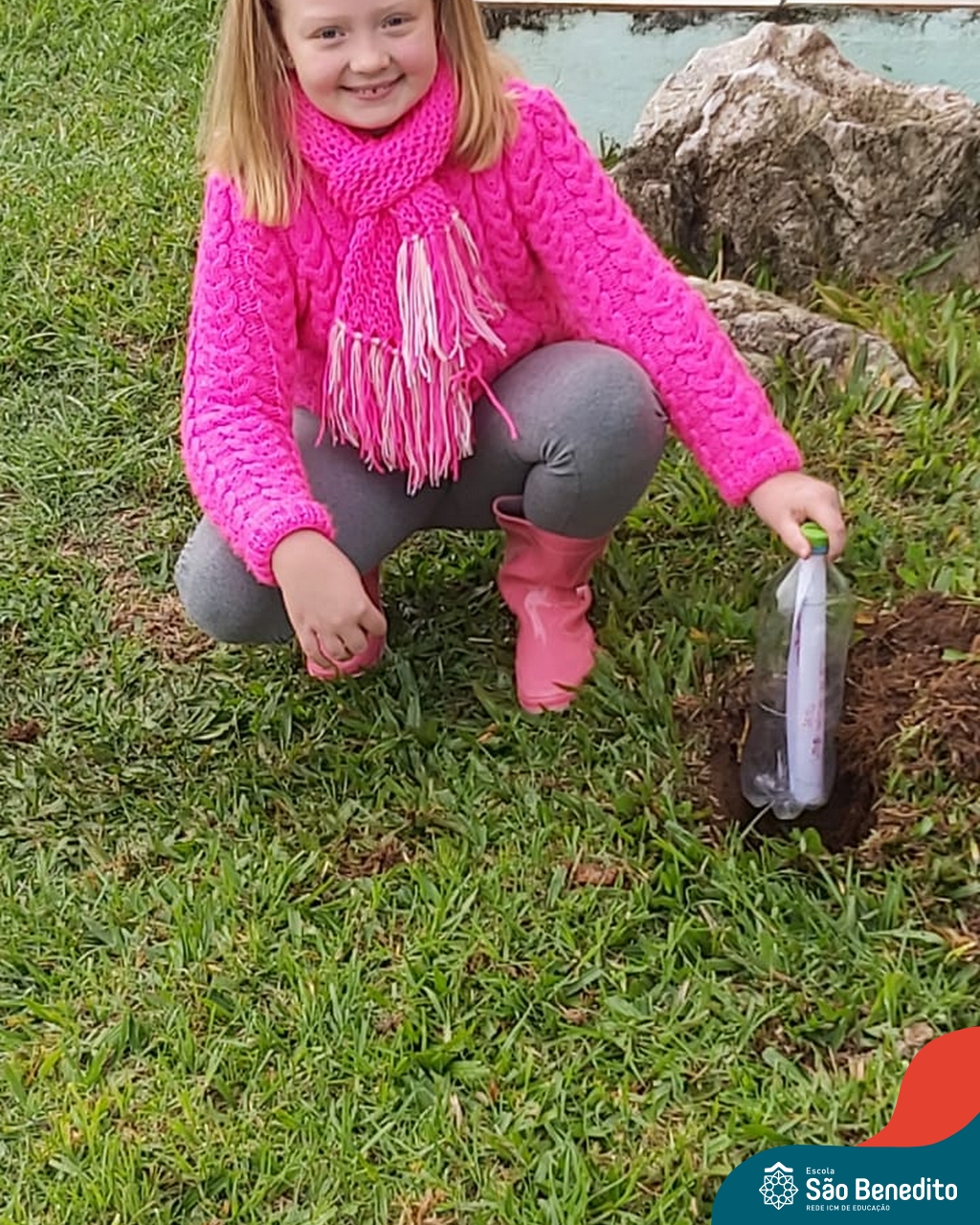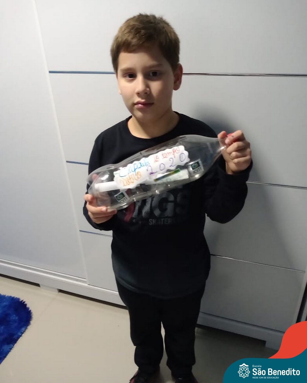 Cada aluno criou para si um desafio de cuidar mais do meio ambiente, e todos assumiram esse lindo compromisso anotando tudo no conteúdo da cápsula. Os registros não mentem: o talento dos pequenos é gigante. Tivemos muitos desenhos, repletos de cores, frases, sonhos, e principalmente: muita esperança.
