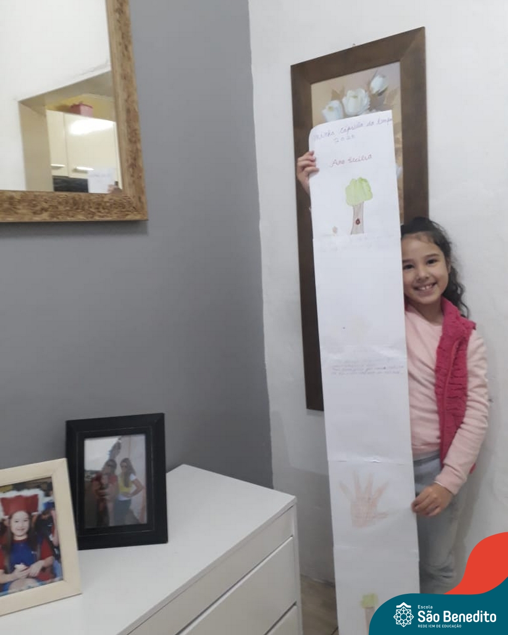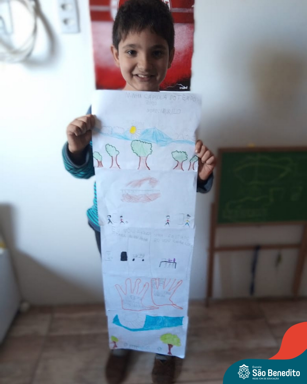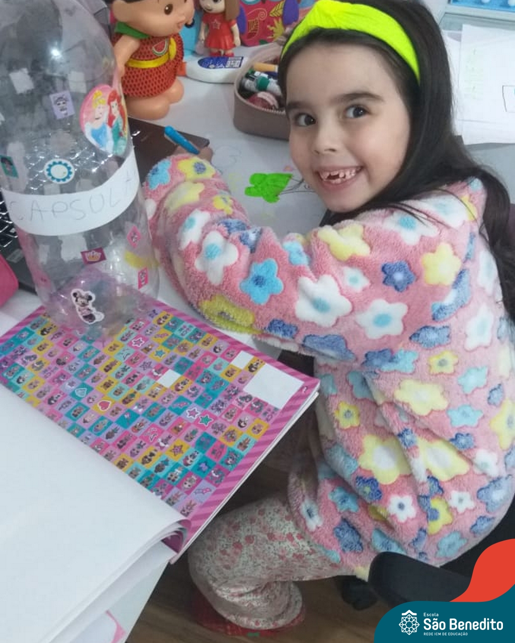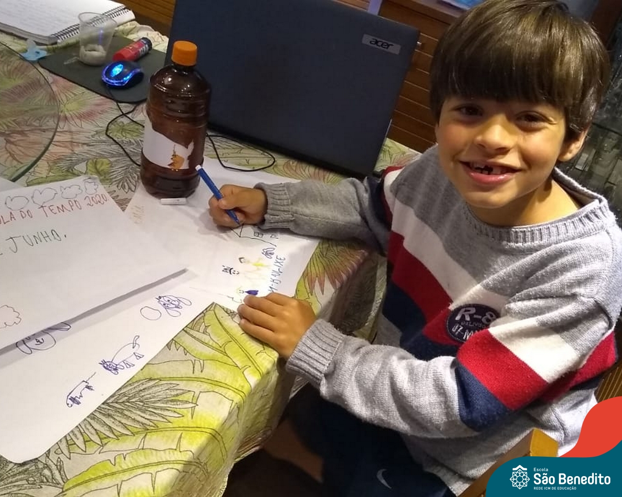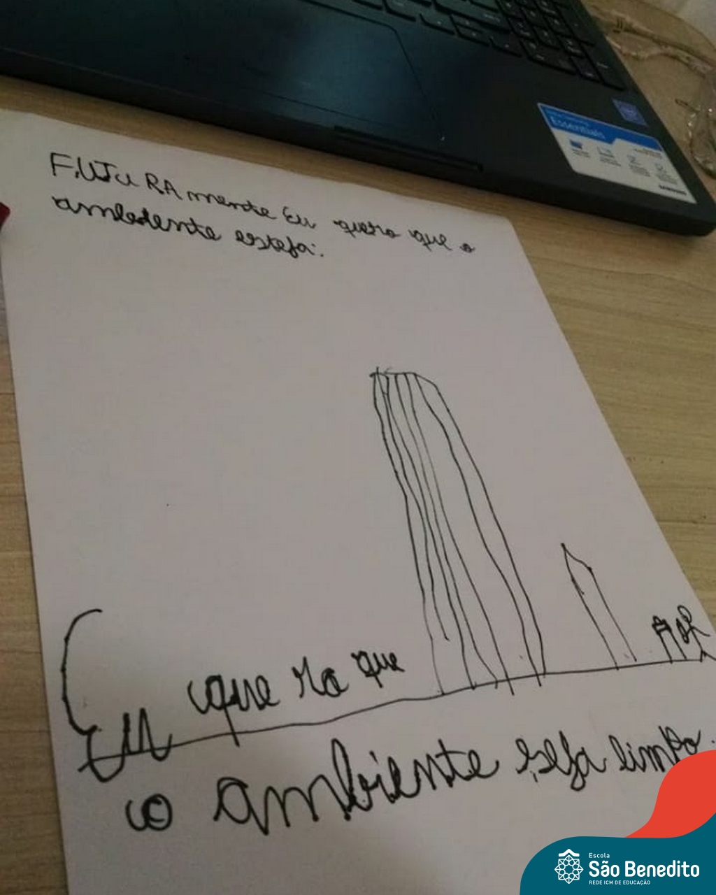 Cada aluno criou para si um desafio de cuidar mais do meio ambiente, e todos assumiram esse lindo compromisso anotando tudo no conteúdo da cápsula. Os registros não mentem: o talento dos pequenos é gigante. Tivemos muitos desenhos, repletos de cores, frases, sonhos, e principalmente: muita esperança.