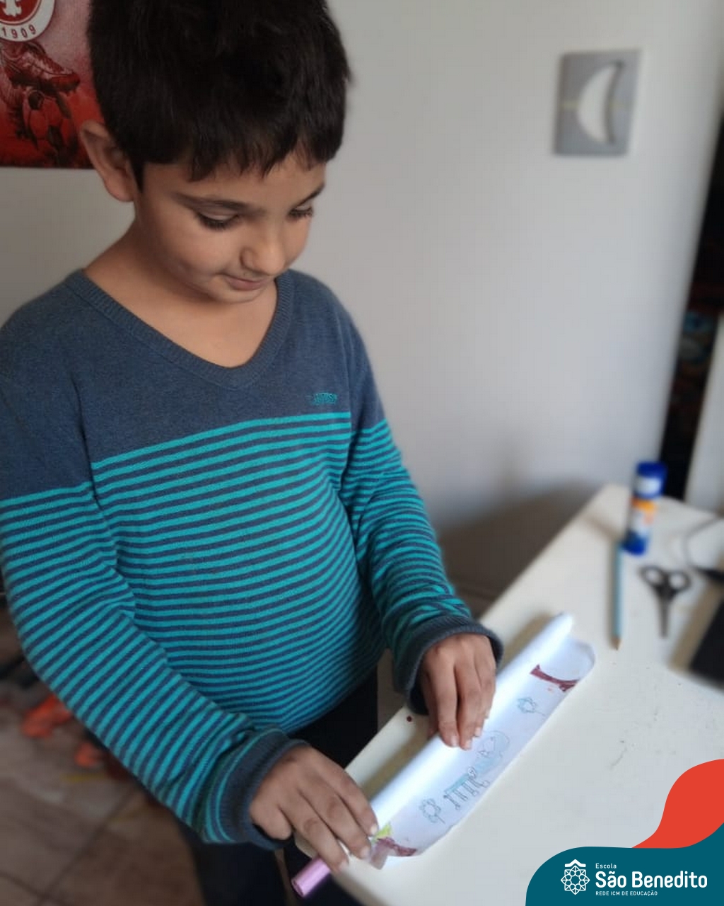 Durante a Semana do Meio Ambiente, os alunos do 2º Ano participaram de uma atividade inusitada, proposta pelas professoras: Criar uma cápsula do tempo. Cada aluno ficou livre para escolher as ténicas para a produção da cápsula e do conteúdo. Folhas, giz de cera, lápis e canetas. Para alguns, simples ferramentas; para os nossos alunos, um universo de possibilidades. E foi nesse clima que se iniciaram os trabalhos.
