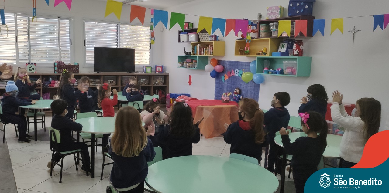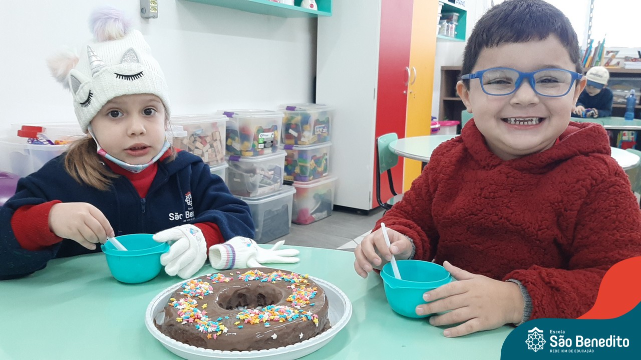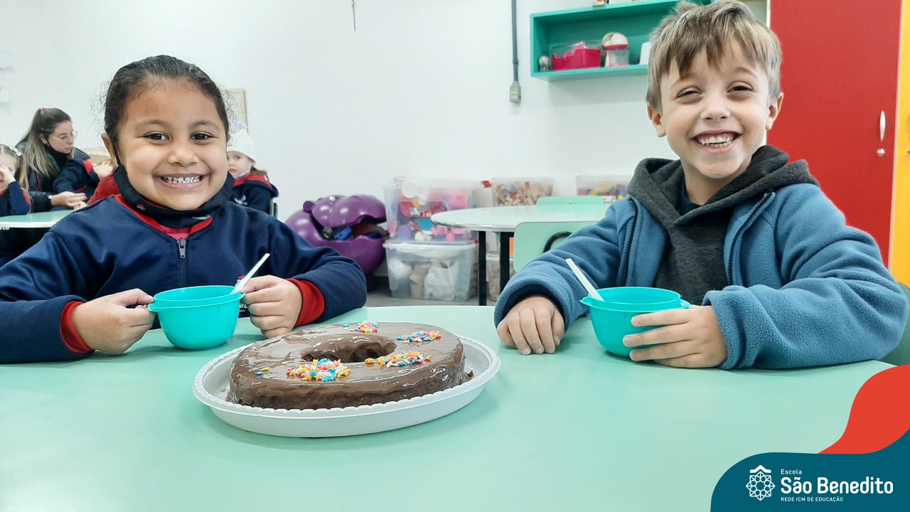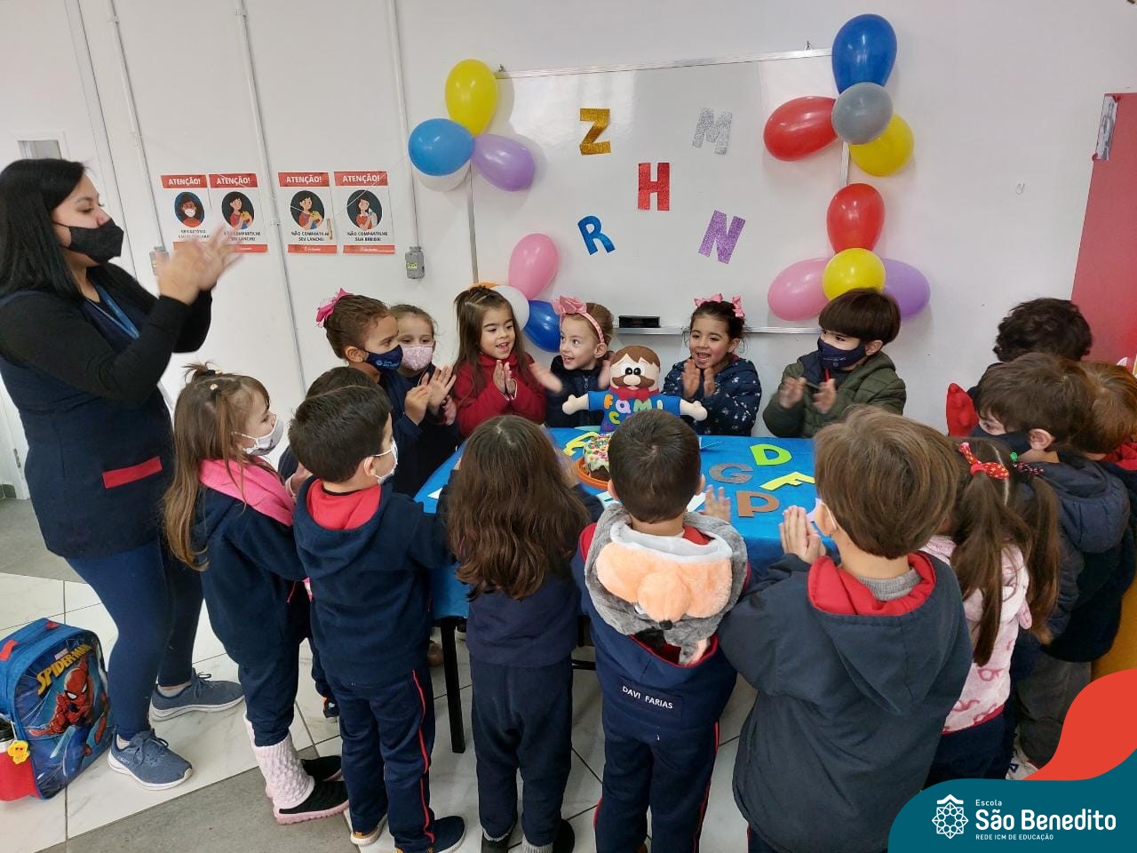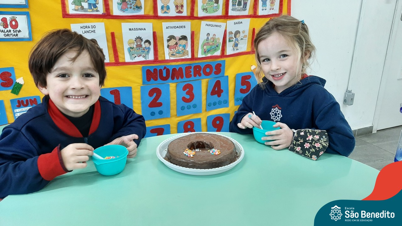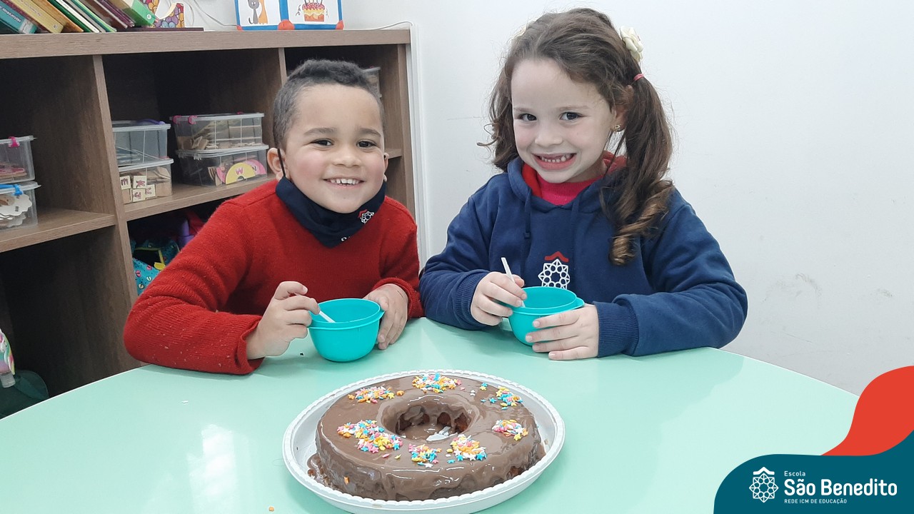 Com base no conto, os estudantes também comemoraram o aniversário do Seu Alfabeto, contando, é claro, com presença ilustre do próprio: o mascotinho recebeu até bolo! E para essa festa ficar ainda mais incrível e recheada de aprendizado, cada dia, os alunos presentearão o amigo com algo que comece com a letra escolhida pelas professoras. Todos os presentes ficarão expostos em sala de aula durante todo o projeto, de forma que os pequenos possam memorizar as letras. Além disso, através dos objetos, será construído um livro do alfabeto, que será entregue às famílias, contendo os registros das atividades, e se transformará em uma linda lembrança desse momento tão importante da infância, que é o início da alfabetização.
