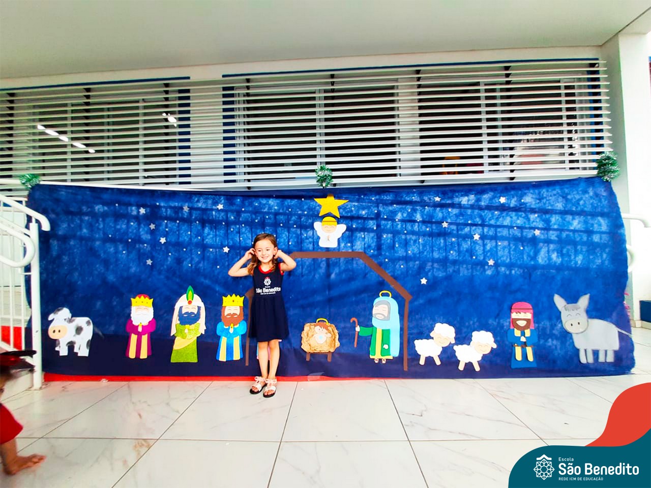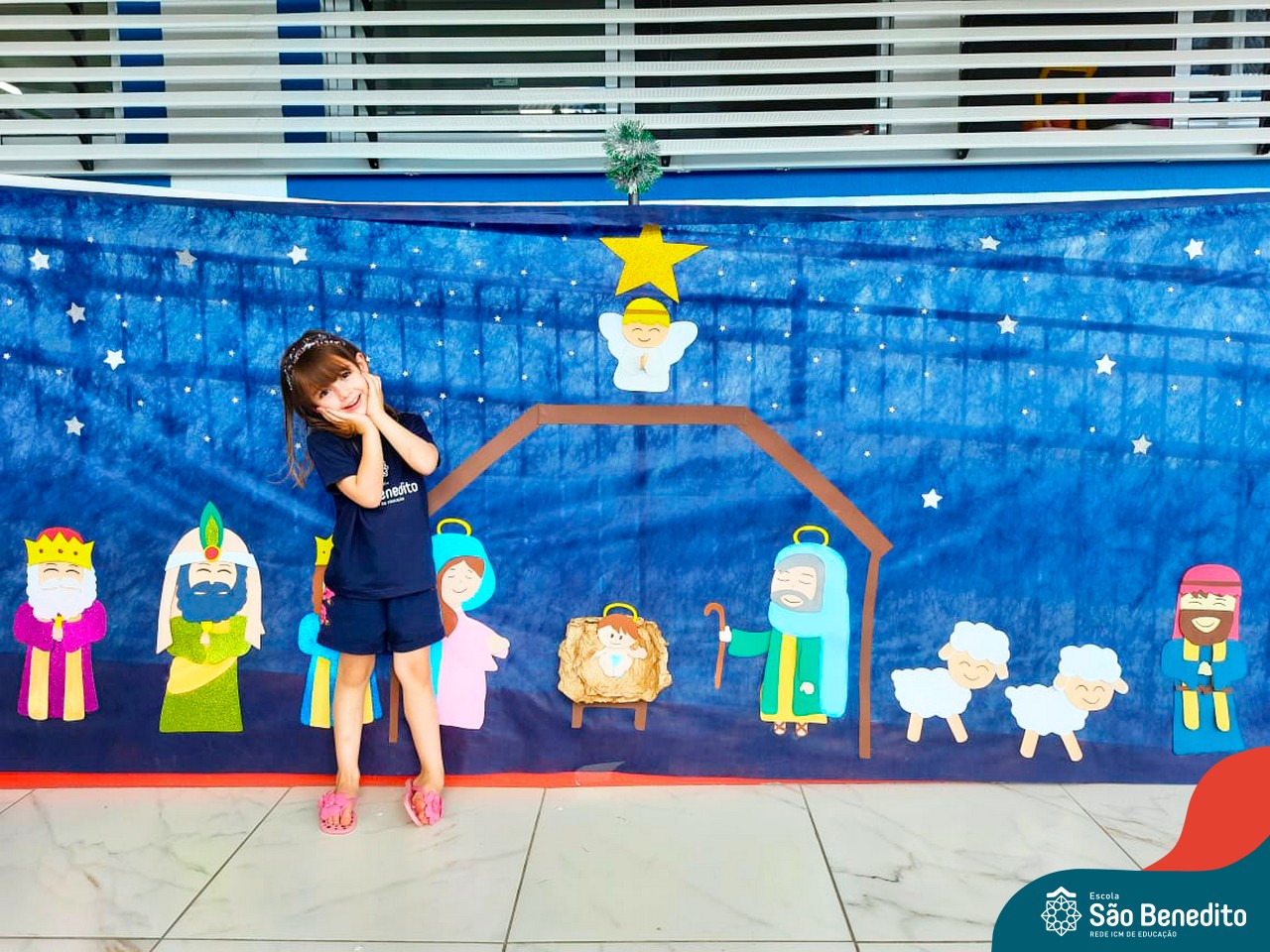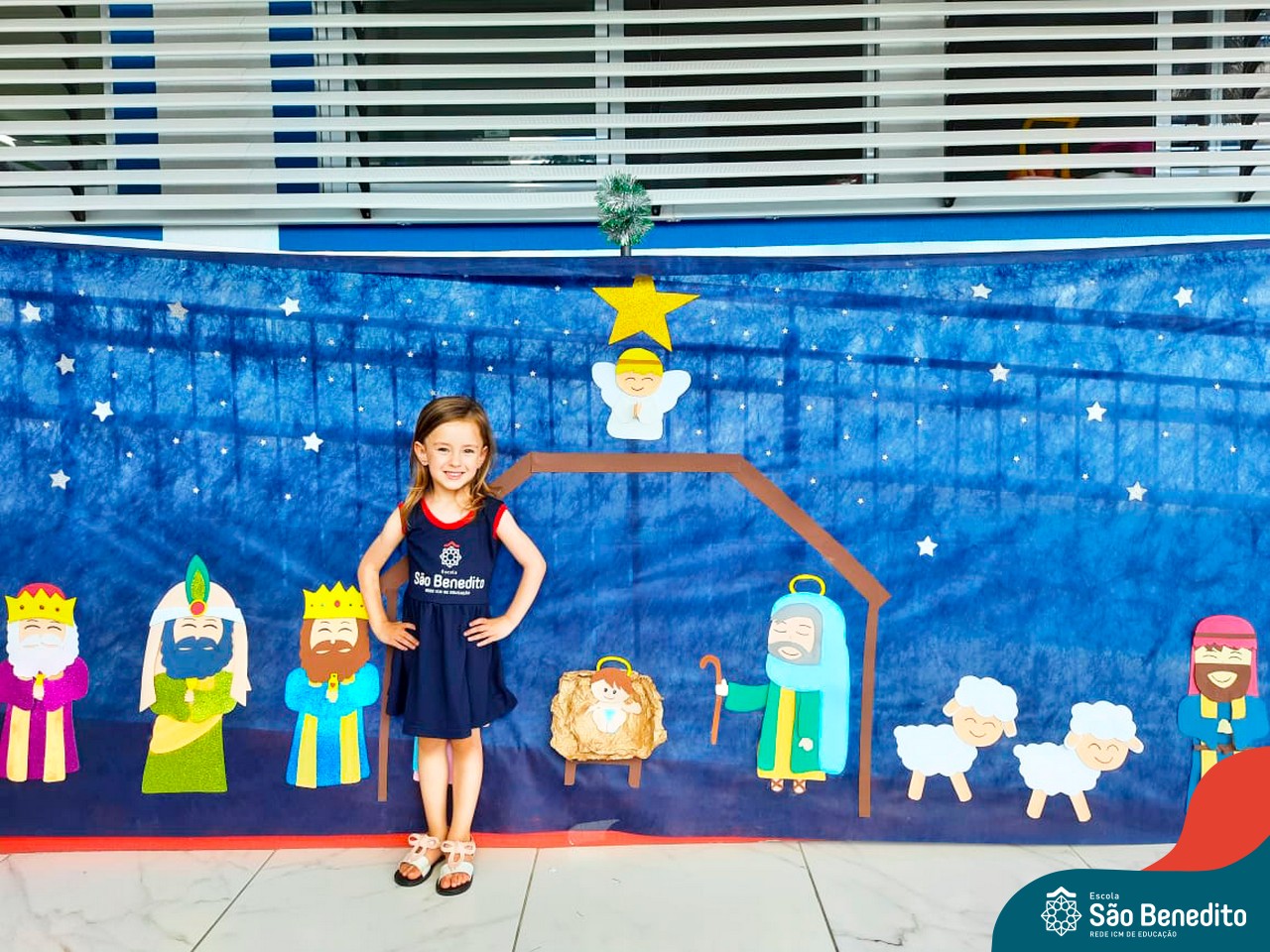 Estamos chegando ao final do nosso Ano Letivo, e com ele, já vem um gostinho de saudade. Mas, este também é um momento para sorrir e se alegrar: os pequenos estão crescendo e se desenvolvendo cada dia mais. Para comemorar e curtir a última semana de aula, o Maternal das professoras Camile e Ana Maria entrou no clima Natalino e fez uma sessão de fotos no presépio da Educação Infantil.