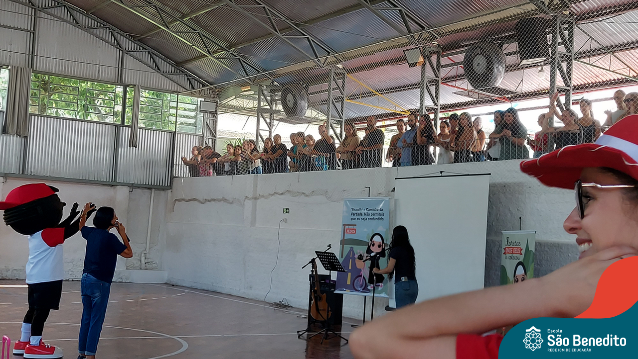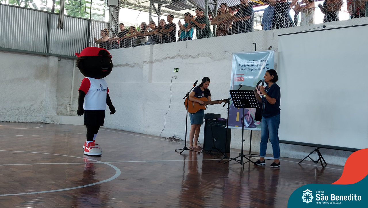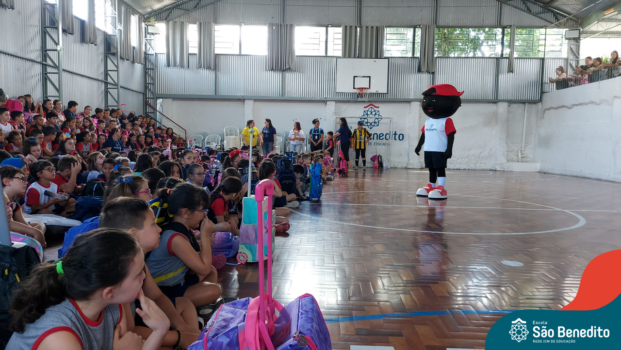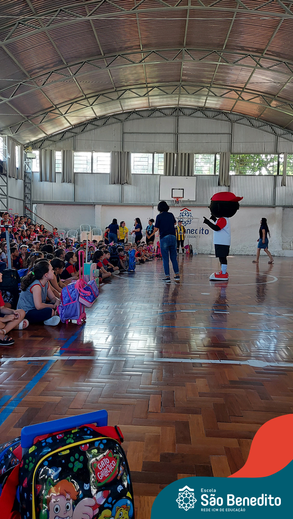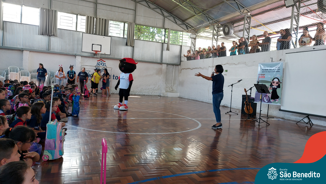 Além de receber a bênção das mochilas, o Ensino Fundamental I foi acolhido pelo mascote Bene, que através da dança e do bom humor, deu início ao ano letivo dos pequenos.