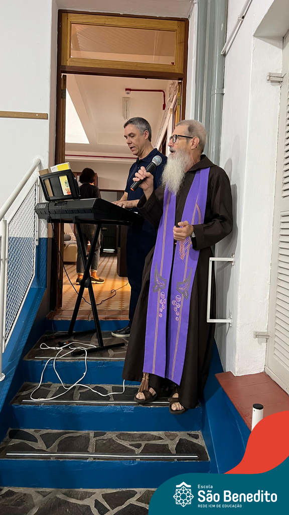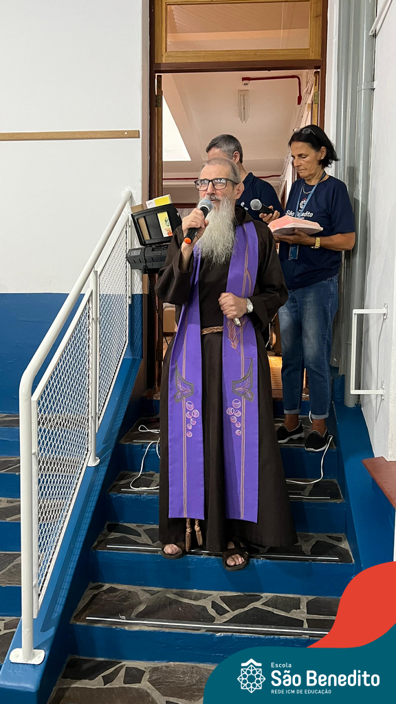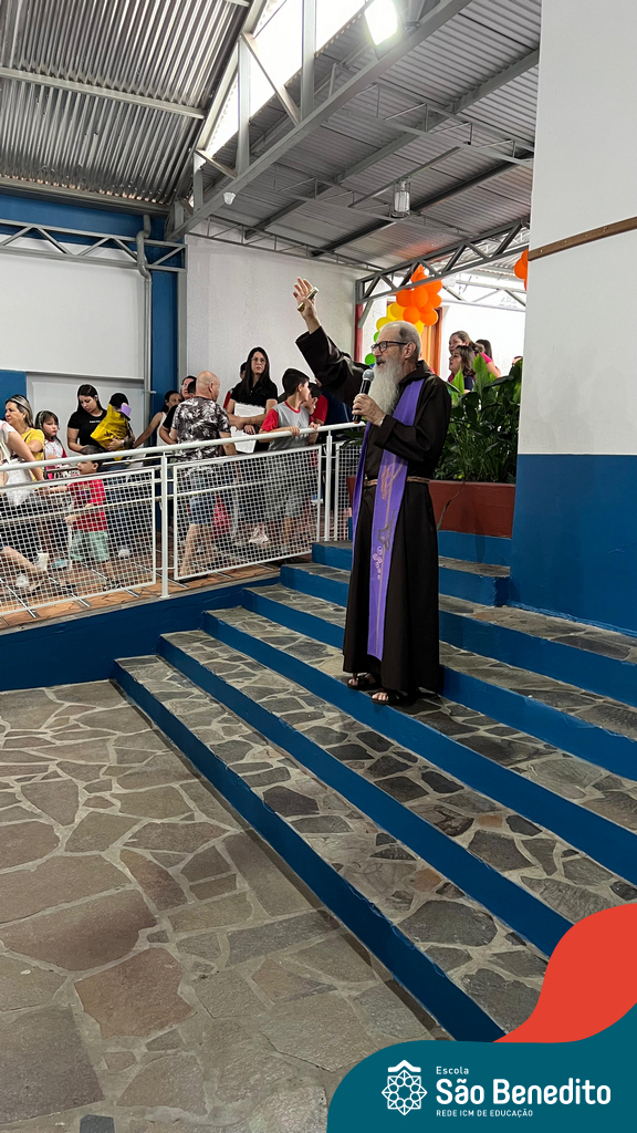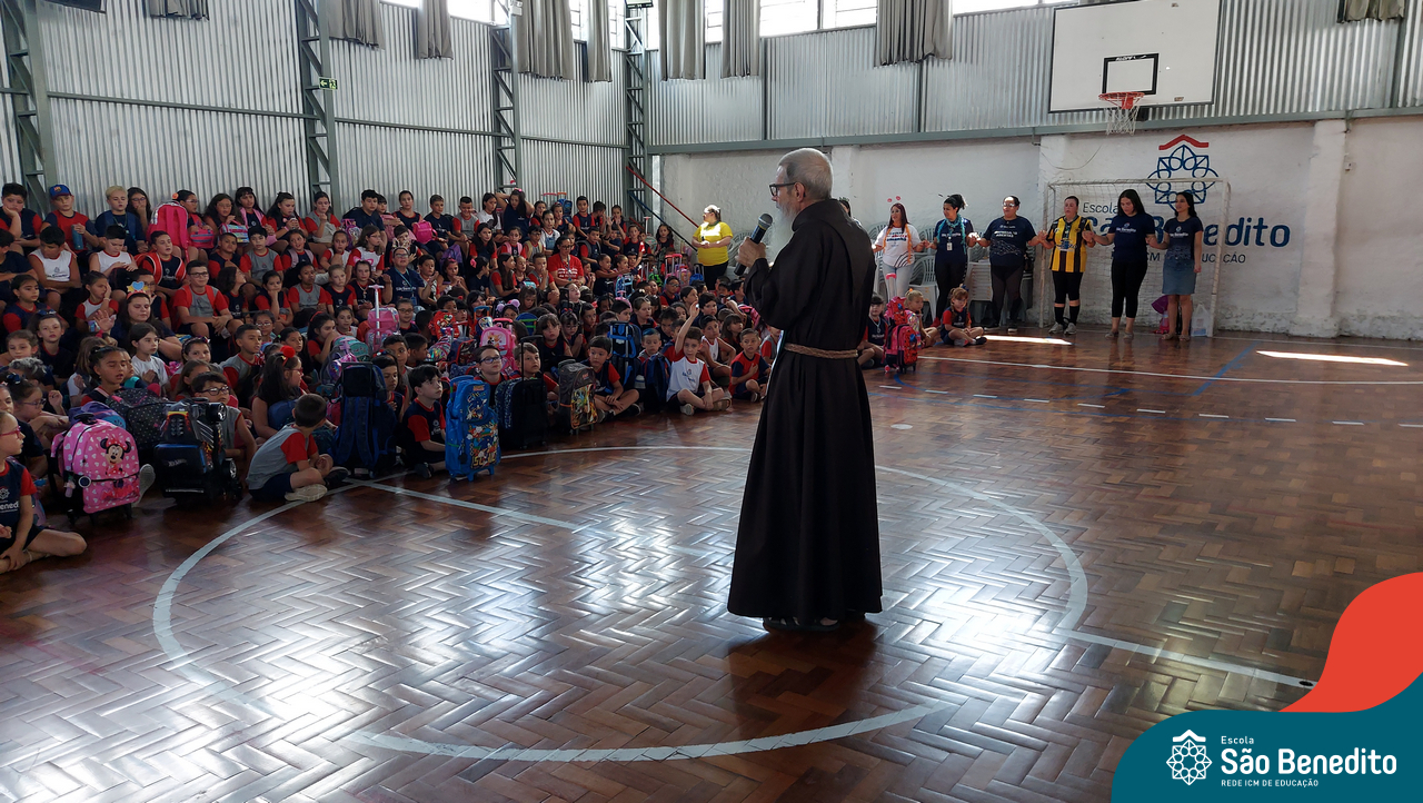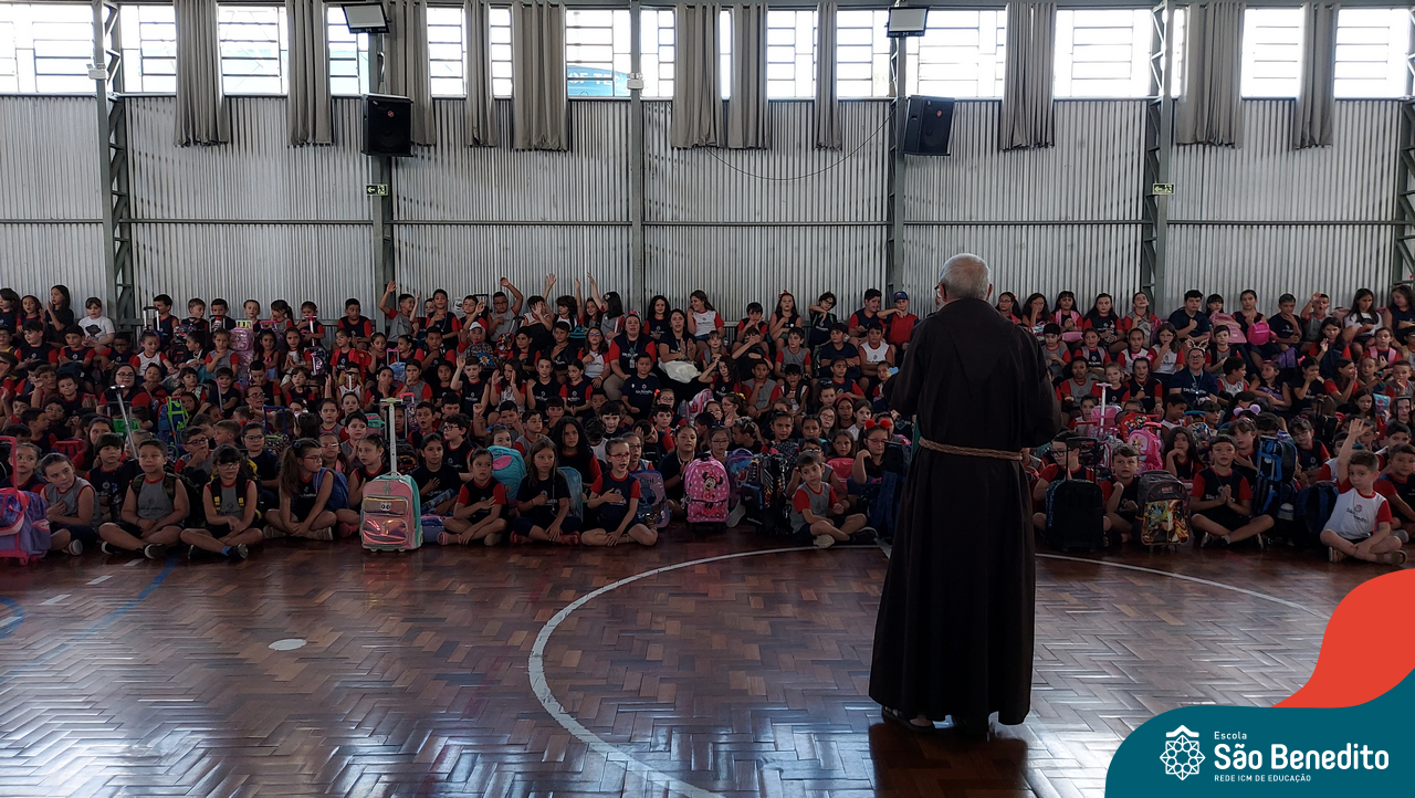 Na acolhida, contamos com a presença do Frei Lori, que concedeu a bênção das mochilas para os estudantes. Além de conter todos os materiais utilizados durante o ano para o crescimento e aprendizado, as mochilas representam os sonhos e projetos que cada um carrega dentro de si.