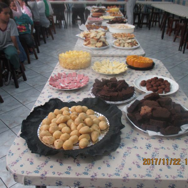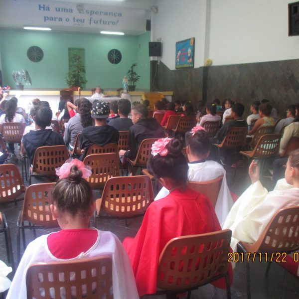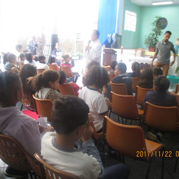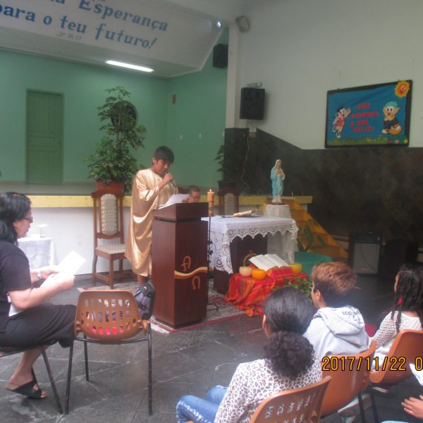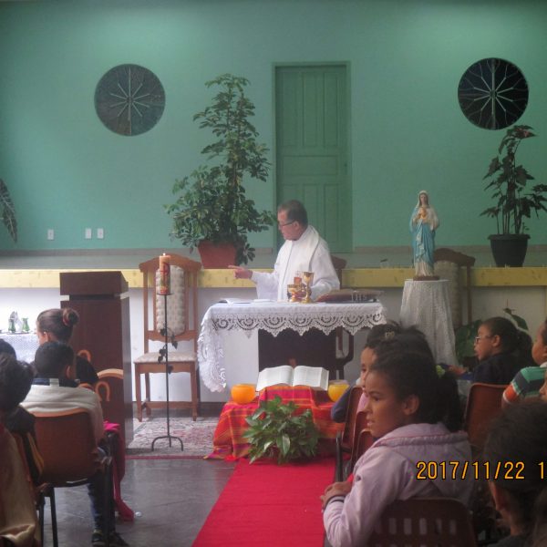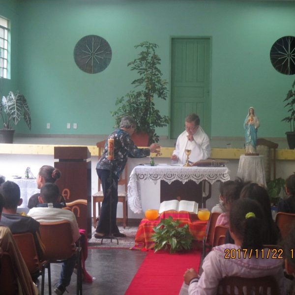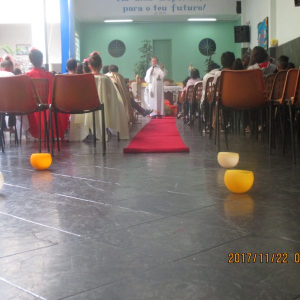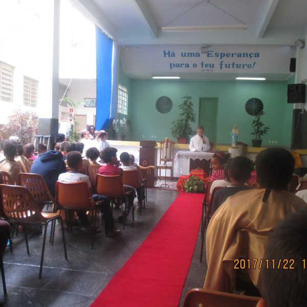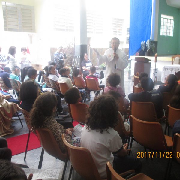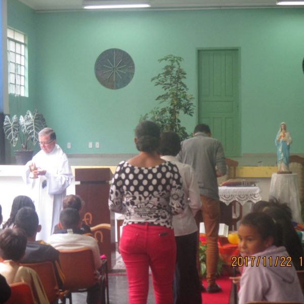 No dia 23 de novembro celebramos o dia de ação de graças com uma missa celebrada pelo Padre Brás, esteve presente as crianças e adolescentes usuárias do Serviço de Convivência e Fortalecimento de Vínculos e os Educadores Sociais, as Voluntárias do Projeto “|Mãos que Constroem Cidadania” e as Irmãs do Imaculado Coração de Maria. No evangelho dos talentos Padre Brás destacou a importância de agradecer a Deus os dons que recebemos. Após a celebração houve uma confraternização onde partilhamos os alimentos trazidos pela pessoas presentes.