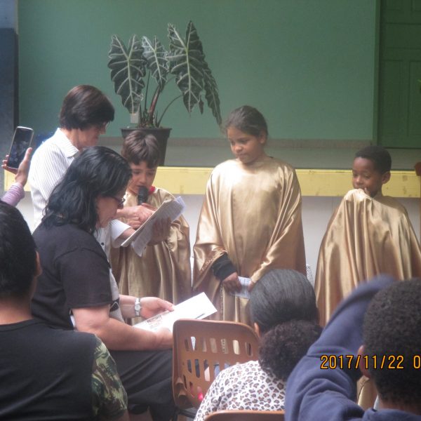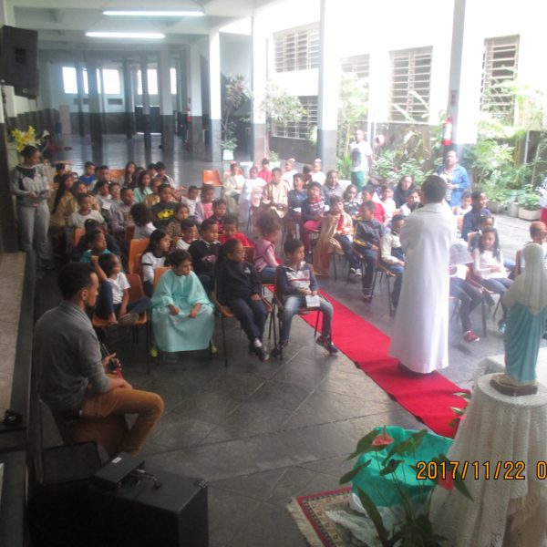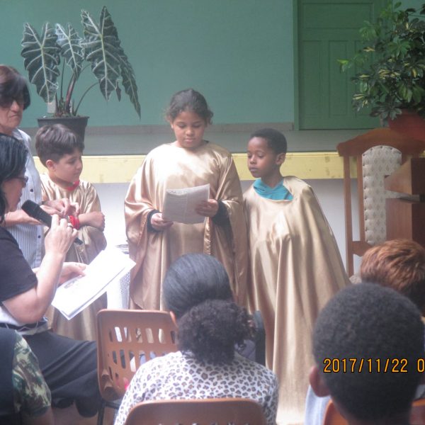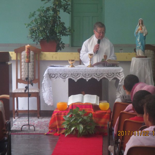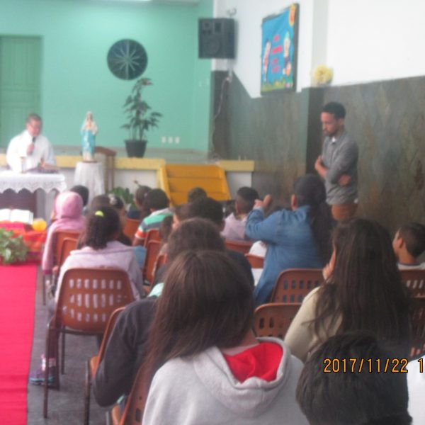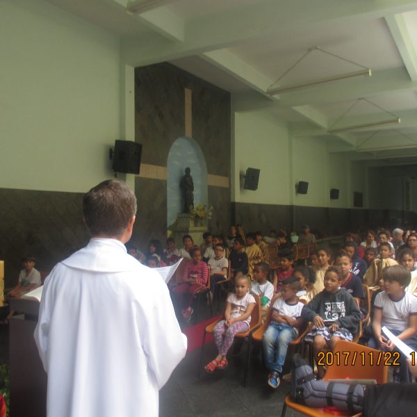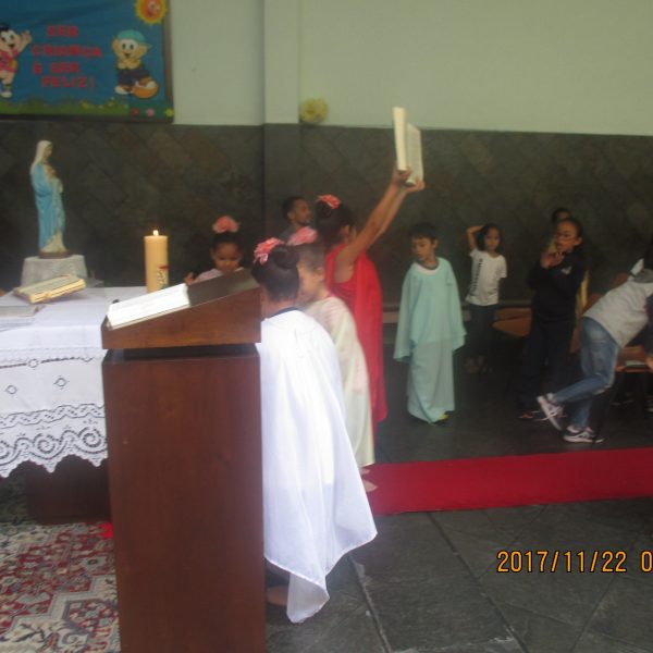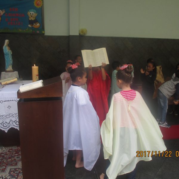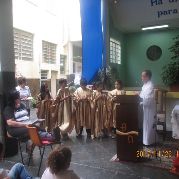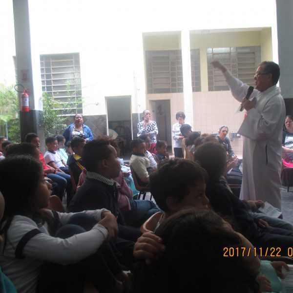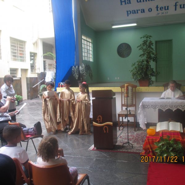 No dia 23 de novembro celebramos o dia de ação de graças com uma missa celebrada pelo Padre Brás, esteve presente as crianças e adolescentes usuárias do Serviço de Convivência e Fortalecimento de Vínculos e os Educadores Sociais, as Voluntárias do Projeto “|Mãos que Constroem Cidadania” e as Irmãs do Imaculado Coração de Maria. No evangelho dos talentos Padre Brás destacou a importância de agradecer a Deus os dons que recebemos. Após a celebração houve uma confraternização onde partilhamos os alimentos trazidos pela pessoas presentes.