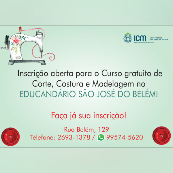 Inscrições Curso Gratuito de Corte, Costura e Modelagem