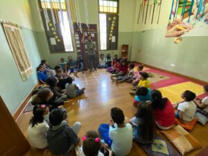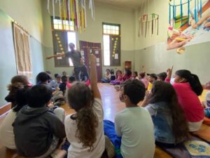Neste ano de 2022 se adaptou uma sala própria para a realização de Oficinas Afrodiaspóricas, trazendo um pouco da história, cultura e brincadeiras dos povos africanos.