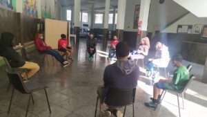 No último dia 17/06, tivemos uma tarde favorável com os adolescentes que antes da pandemia eram participantes do serviço e saíram por completarem a idade de permanência. Assim, promovemos uma tarde de reflexão, oração e confraternização na obra.