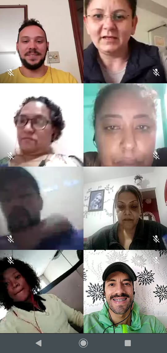 Em reunião com os educadores e direção por vídeo chamada, os educadores dialogaram as experiências em meio à pandemia e a readequação das oficinas via plataformas digitais, uma vez que o público atendido varia no âmbito familiar (pai, mãe, tio, tia, primo, prima, avós, etc.), acrescentaram ainda: – Foi um desafio repensar as atividades para as redes sociais, tivemos que ser bem mais criativos e atingir um público cada vez mais heterogêneo, grifo dos educadores sociais.