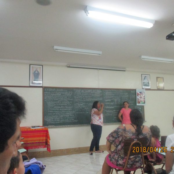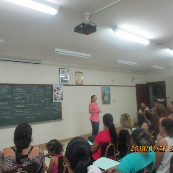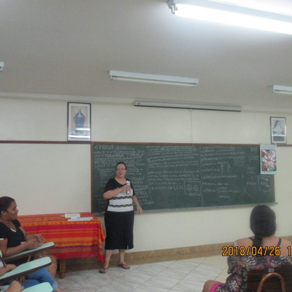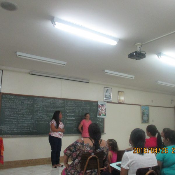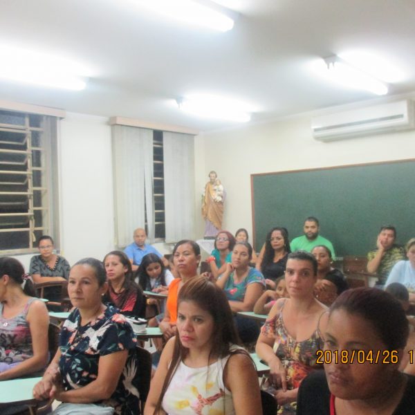 A formação de Pais e Responsáveis foi realizada no dia 27/04/18 das 19 às 21 horas, com o tema da Campanha da Fraternidade 2018 – Fraternidade e Superação da Violência com o lema em Cristo somos todos irmãos, a palestra foi dirigida por Irmã Maria Alice Duarte.