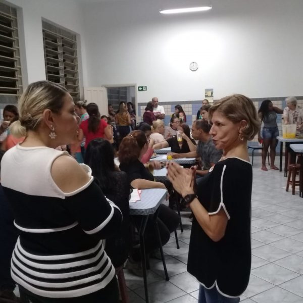 Em seguida, a Irmã Josélia Ramos acolheu às mães/responsáveis falando da importância do perdão, da união e companheirismo diário que temos que construir dentro de nós. Apresentou a nova equipe técnica, dando espaço para que cada um se apresentasse e falasse um pouco de seu trabalho/missão. Diretora, coordenador, educadora, psicóloga e assistente social deram às boas-vindas a todos os presentes e falaram da importância do amor, da esperança, da fé que temos que ter com os nossos pequeninos.