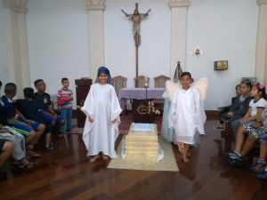 O Tríduo de Natal pode nos ajudar a perceber a presença constante de Deus no meio de nós. Não apenas no Natal. Jesus Filho de Deus Salvador, permanece entre nós de muitas maneiras e se faz encontrar de formas muito concretas: na celebração da comunidade reunida em seu Nome, na Eucaristia, na palavra de Deus anunciada e acolhida com fé, na Igreja, nos pobres, em cada pessoa… Ele mesmo disse estarei convosco todos os dias até o fim dos tempos”. Quem se encontra com Jesus encontra se com Deus. Nós do Educandário juntamente com as crianças e adolescentes proclamamos de maneira muito especial o tempo do Advento e Natal. Deus está no nosso meio!
