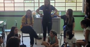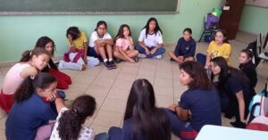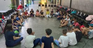 A Irmã Maria da equipe de Pastoral juntamente com os adolescentes do 9• ano realizaram momentos de trocas de experiências e vivências com muitas brincadeiras e jogos. Foi uma manhã cheia de diversão e descontração!