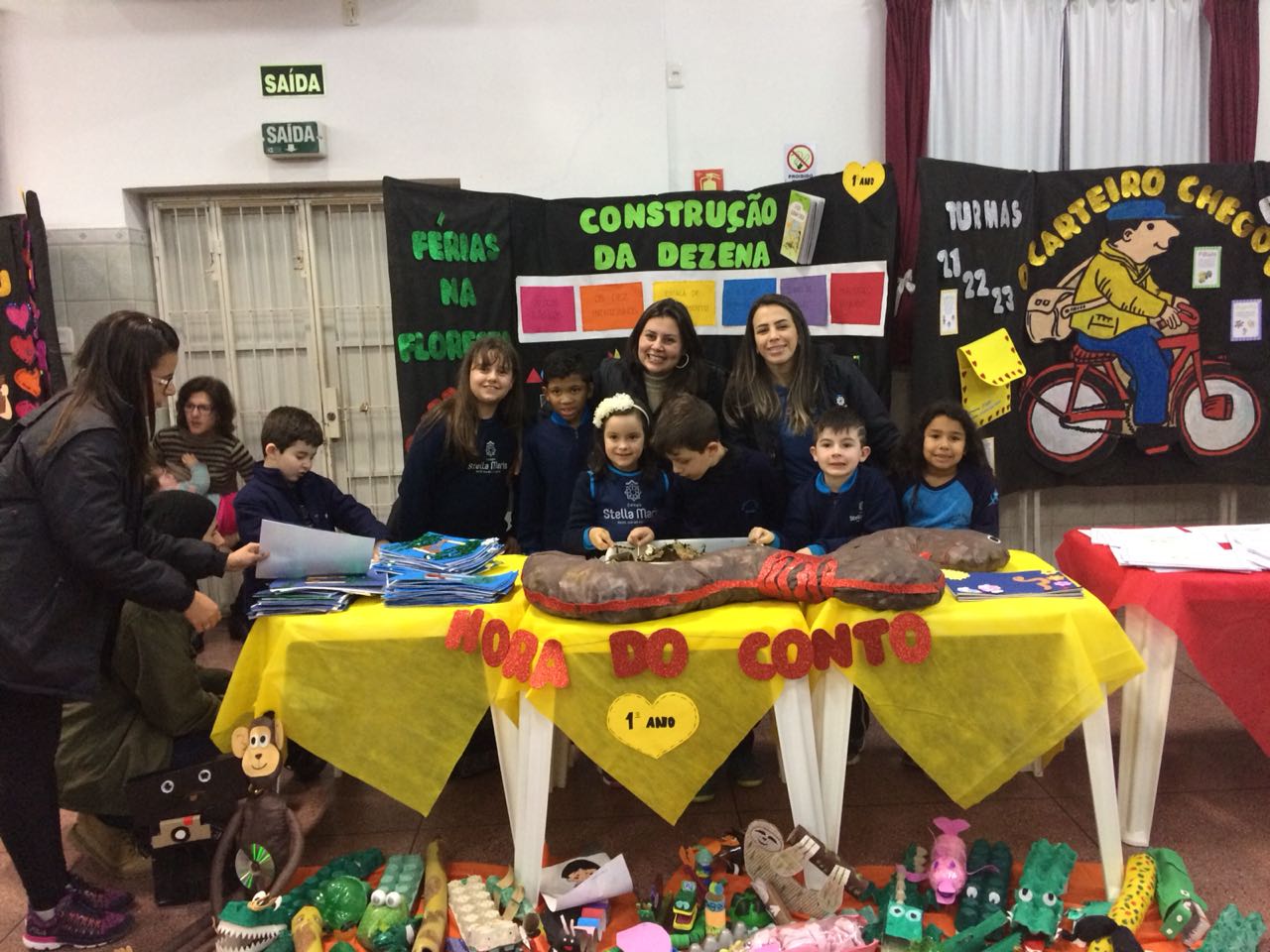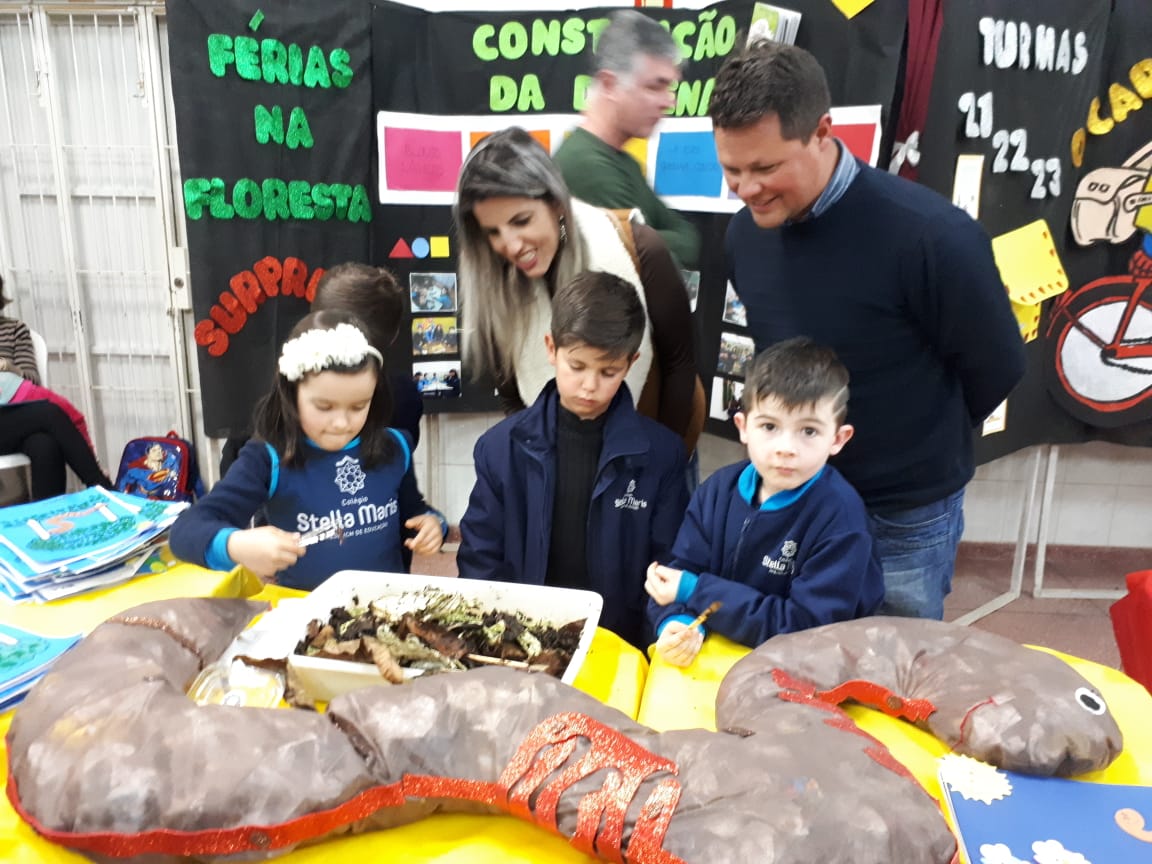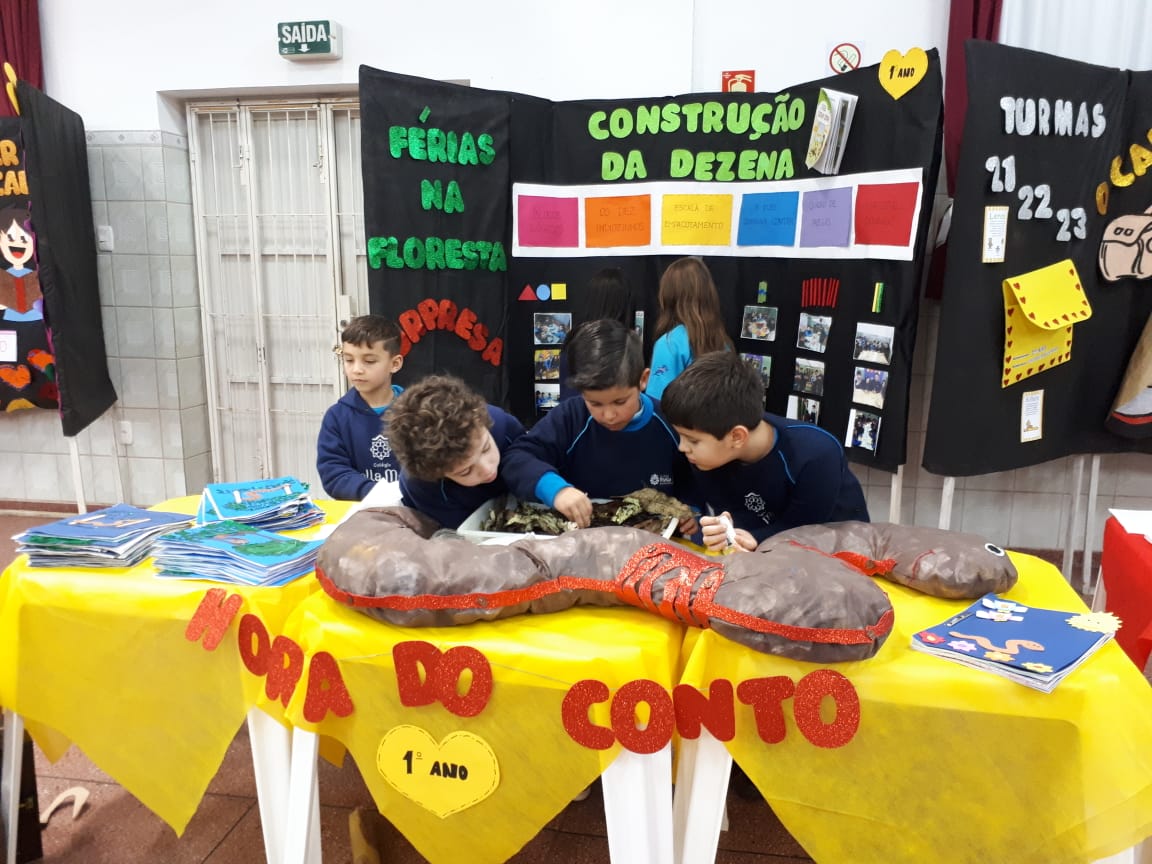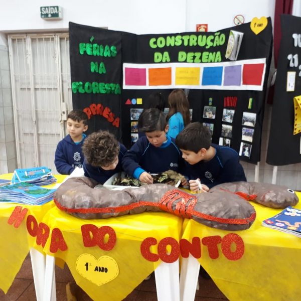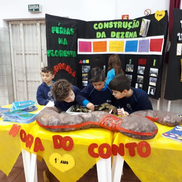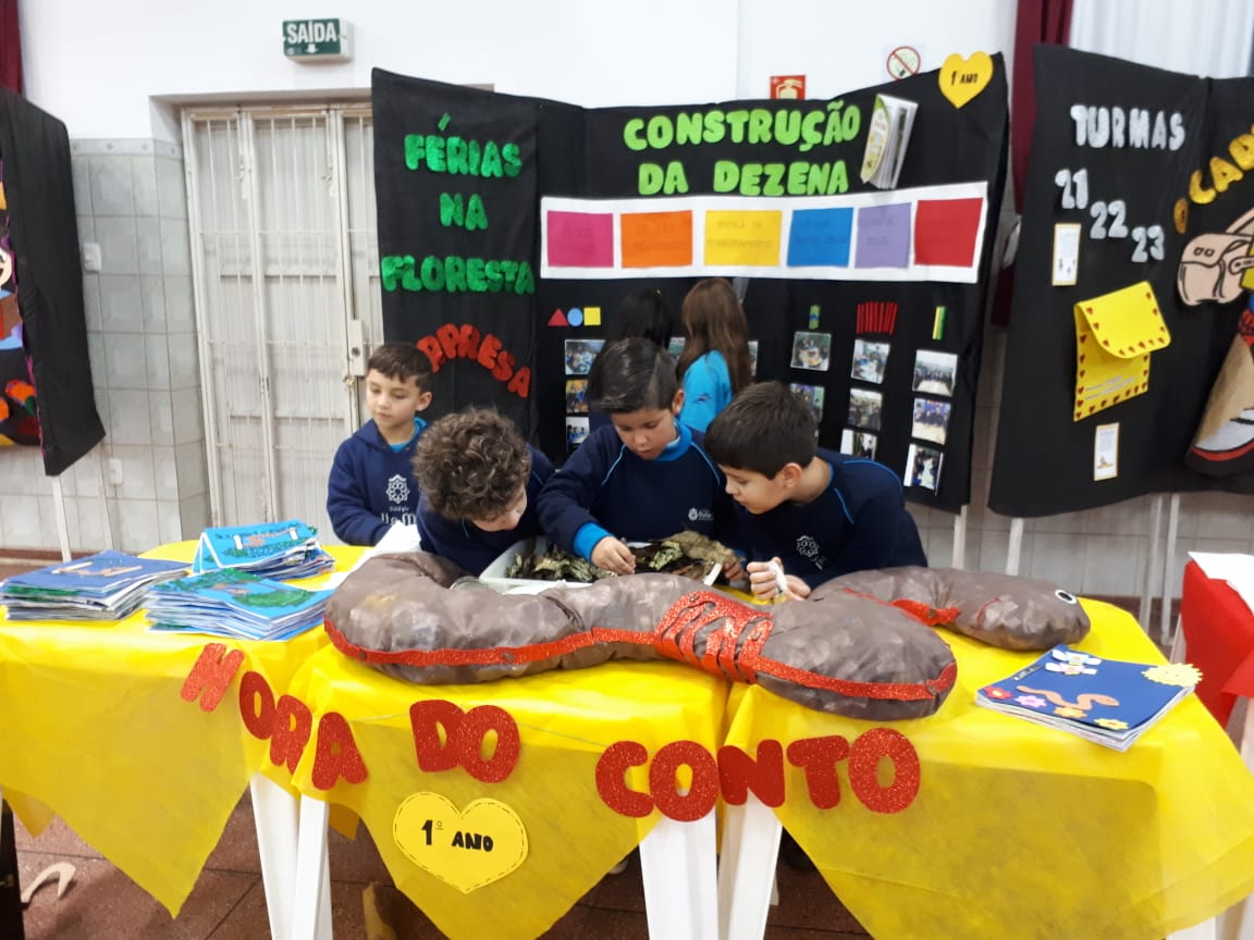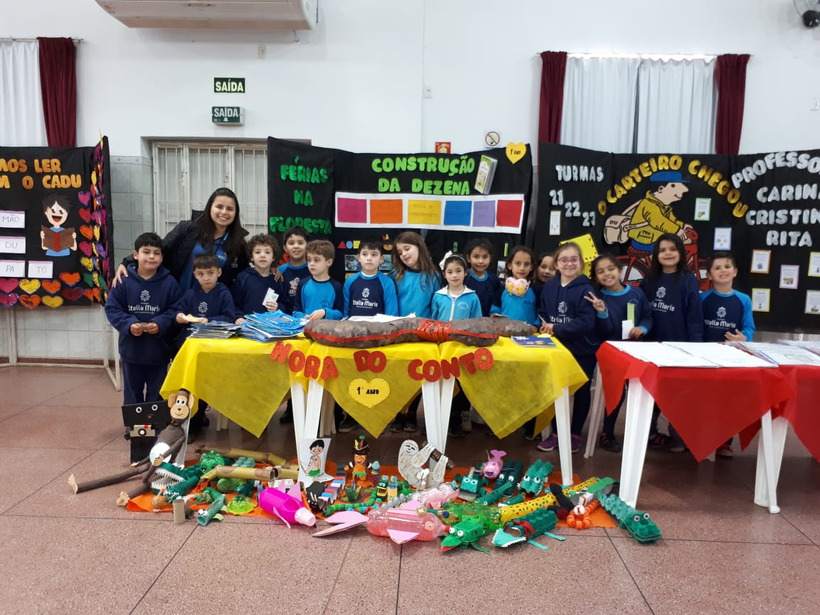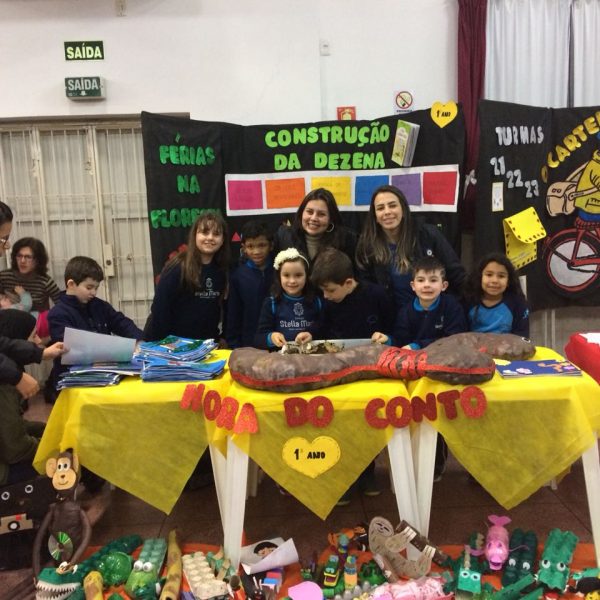 Na XVIII Feira do Livro do colégio Stella Maris as turmas 11, 12 e 13 com as professoras Ana Cláudia Weber, Ana Paula Sena e Juliane Sant’Ana expuseram as produções desenvolvidas ao longo dos trimestres partindo dos Projetos Literários e integrando outras áreas do conhecimento além da Linguagem como, Matemática e Ciências da Natureza. De uma forma lúdica e muito divertida os alunos desenvolveram os projetos: “Cadu e as sílabas “, Férias na Floresta” e “Eles queriam contar”.