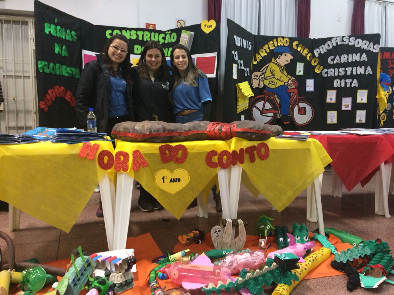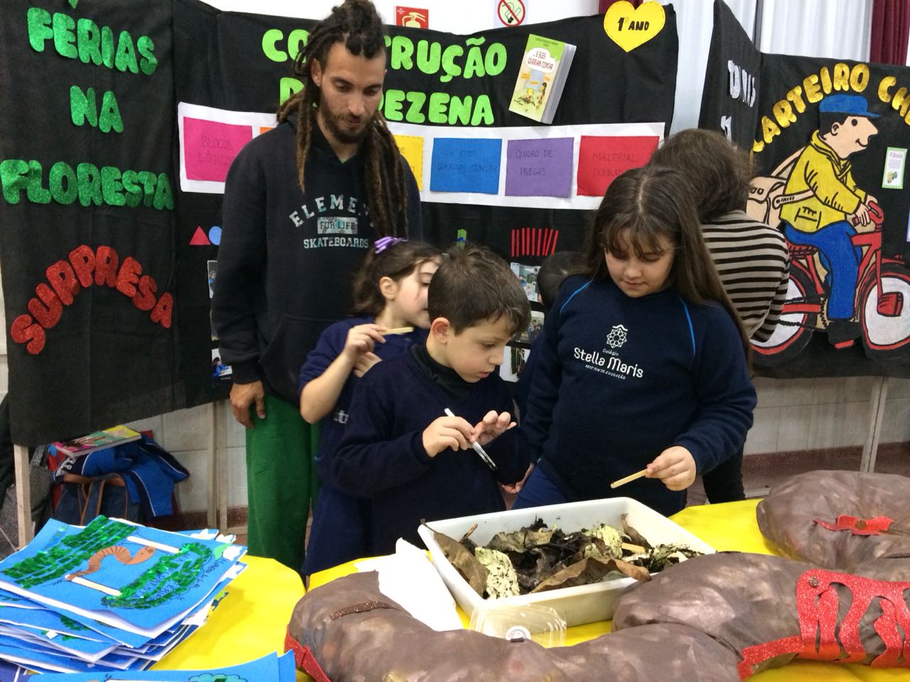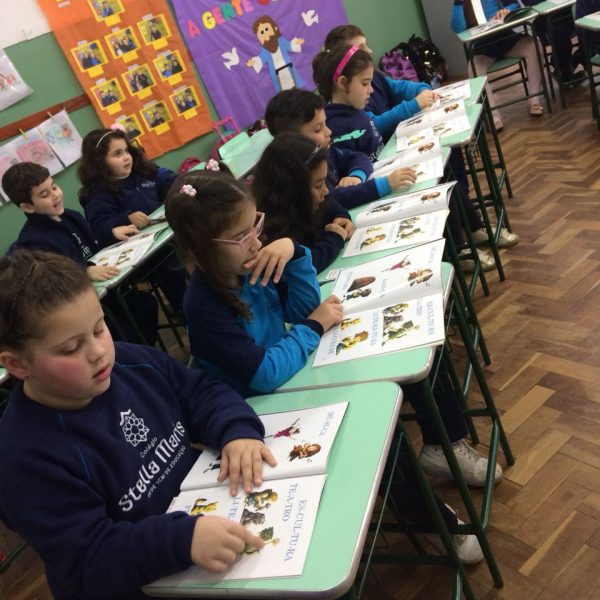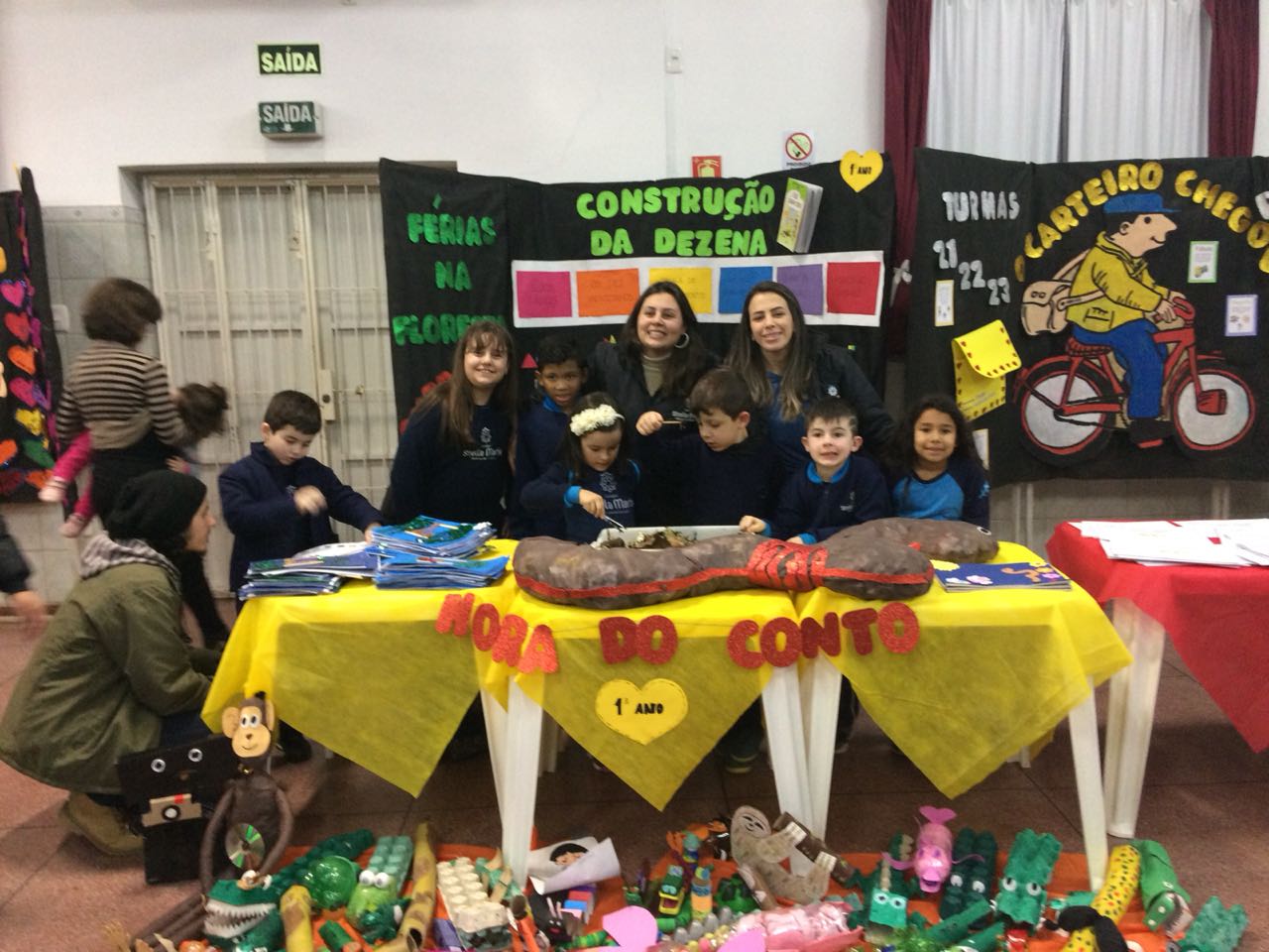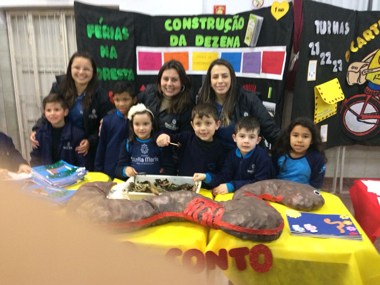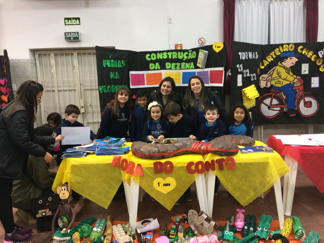 Na XVIII Feira do Livro do colégio Stella Maris as turmas 11, 12 e 13 com as professoras Ana Cláudia Weber, Ana Paula Sena e Juliane Sant’Ana expuseram as produções desenvolvidas ao longo dos trimestres partindo dos Projetos Literários e integrando outras áreas do conhecimento além da Linguagem como, Matemática e Ciências da Natureza. De uma forma lúdica e muito divertida os alunos desenvolveram os projetos: “Cadu e as sílabas “, Férias na Floresta” e “Eles queriam contar”.