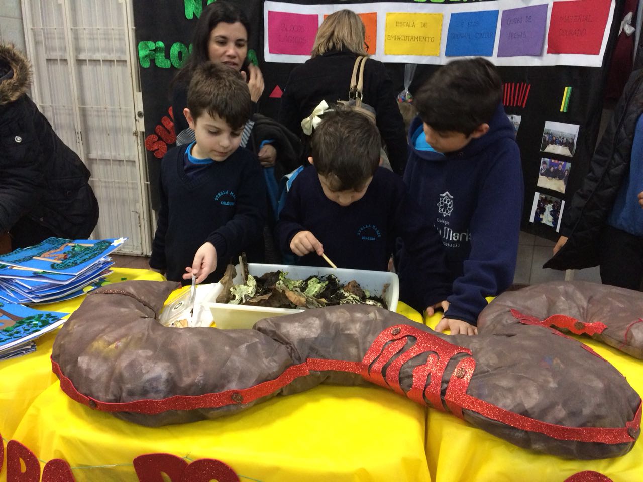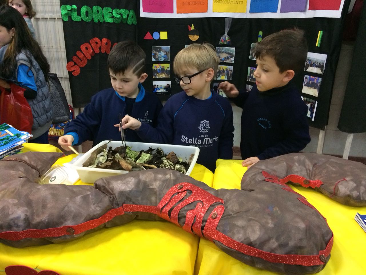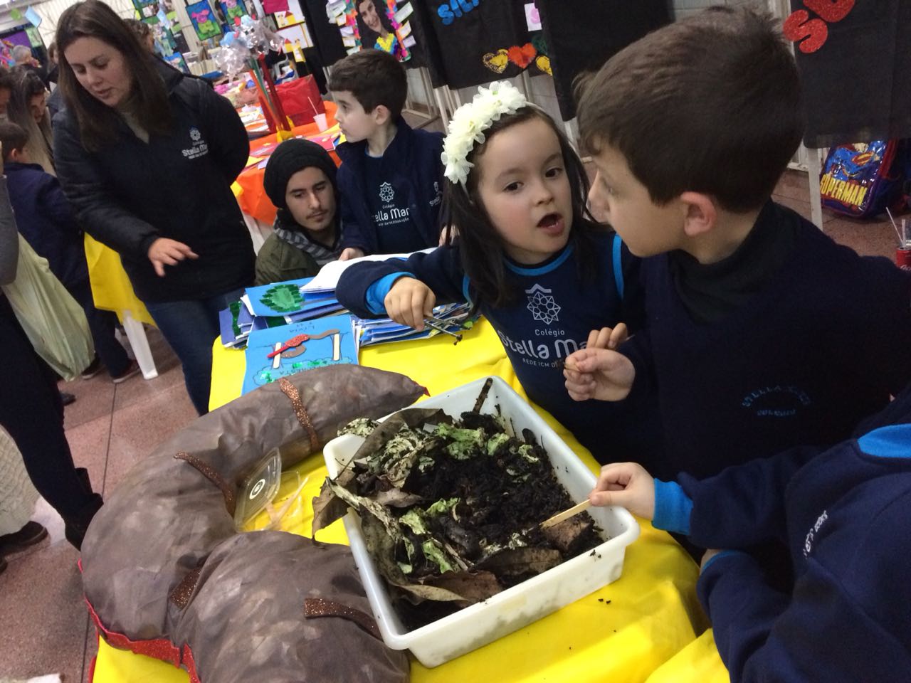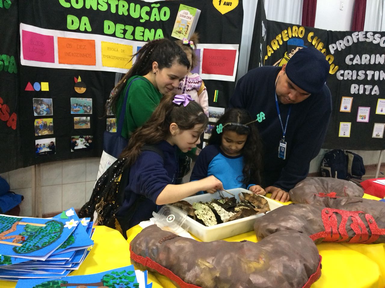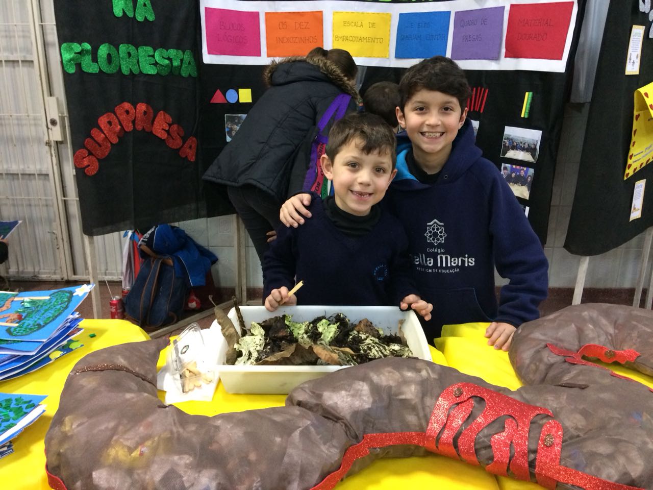 Na XVIII Feira do Livro do colégio Stella Maris as turmas 11, 12 e 13 com as professoras Ana Cláudia Weber, Ana Paula Sena e Juliane Sant’Ana expuseram as produções desenvolvidas ao longo dos trimestres partindo dos Projetos Literários e integrando outras áreas do conhecimento além da Linguagem como, Matemática e Ciências da Natureza. De uma forma lúdica e muito divertida os alunos desenvolveram os projetos: “Cadu e as sílabas “, Férias na Floresta” e “Eles queriam contar”.