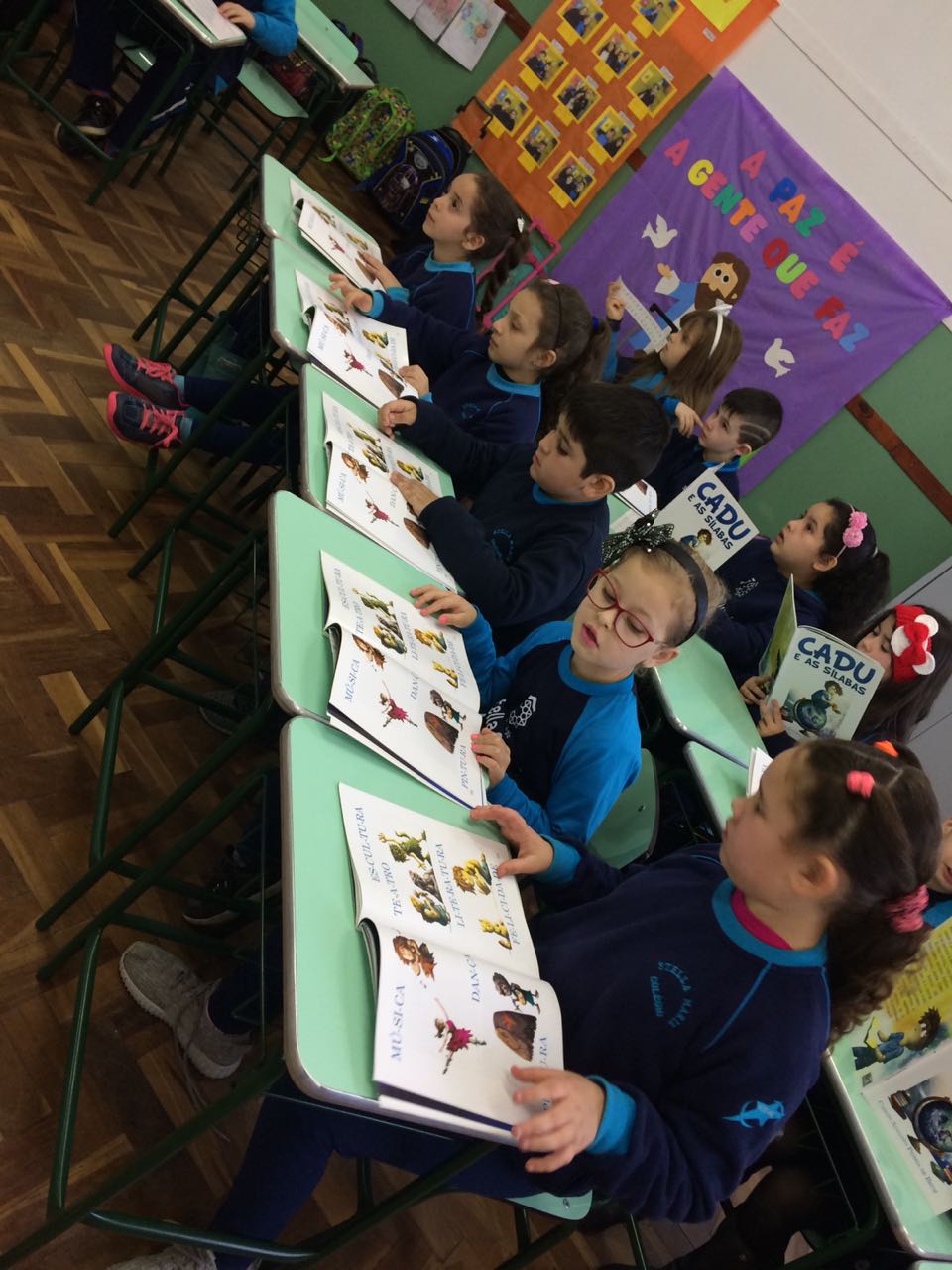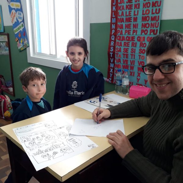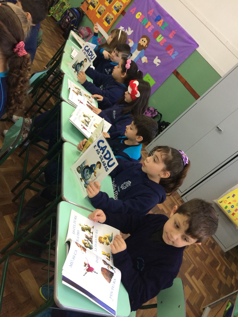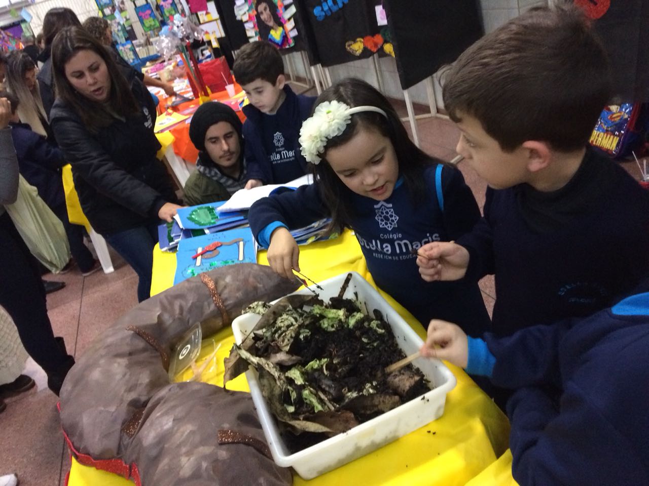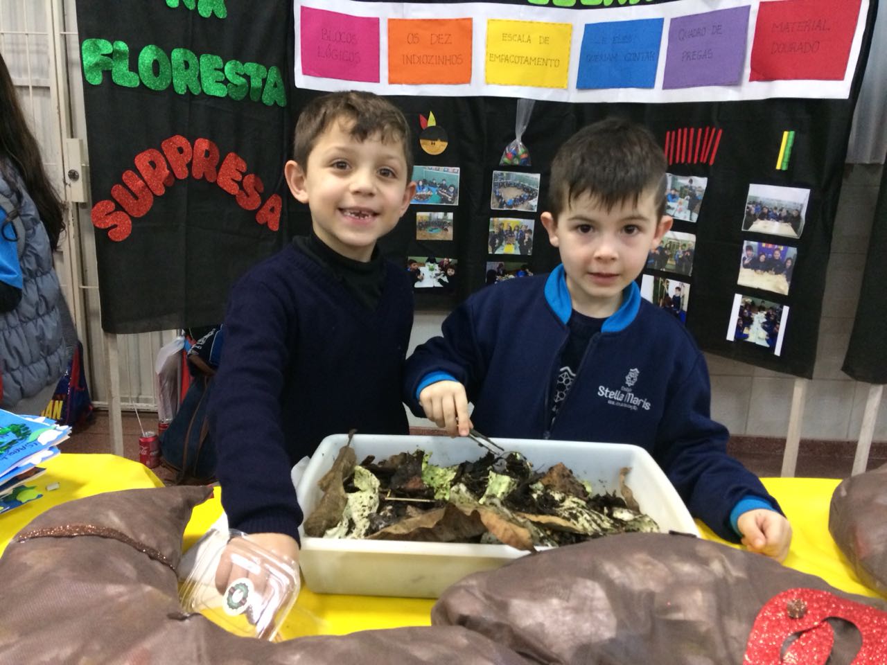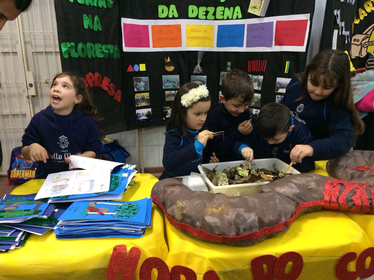 Na XVIII Feira do Livro do colégio Stella Maris as turmas 11, 12 e 13 com as professoras Ana Cláudia Weber, Ana Paula Sena e Juliane Sant’Ana expuseram as produções desenvolvidas ao longo dos trimestres partindo dos Projetos Literários e integrando outras áreas do conhecimento além da Linguagem como, Matemática e Ciências da Natureza. De uma forma lúdica e muito divertida os alunos desenvolveram os projetos: “Cadu e as sílabas “, Férias na Floresta” e “Eles queriam contar”.