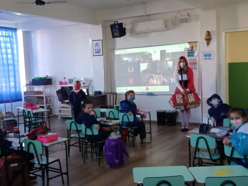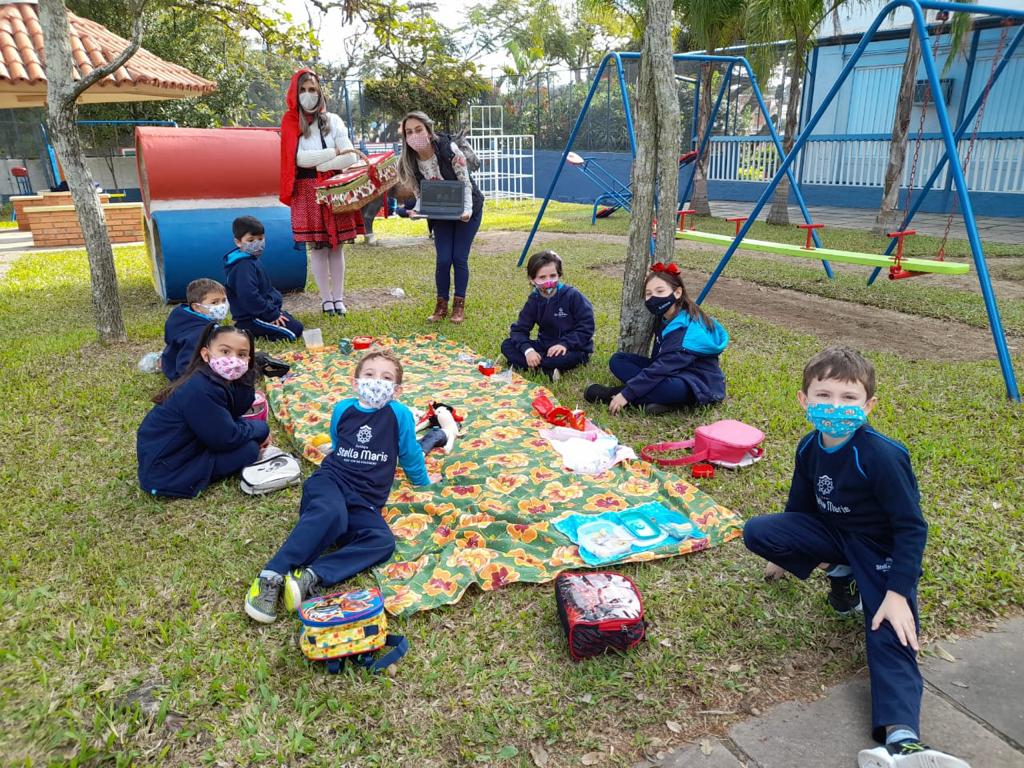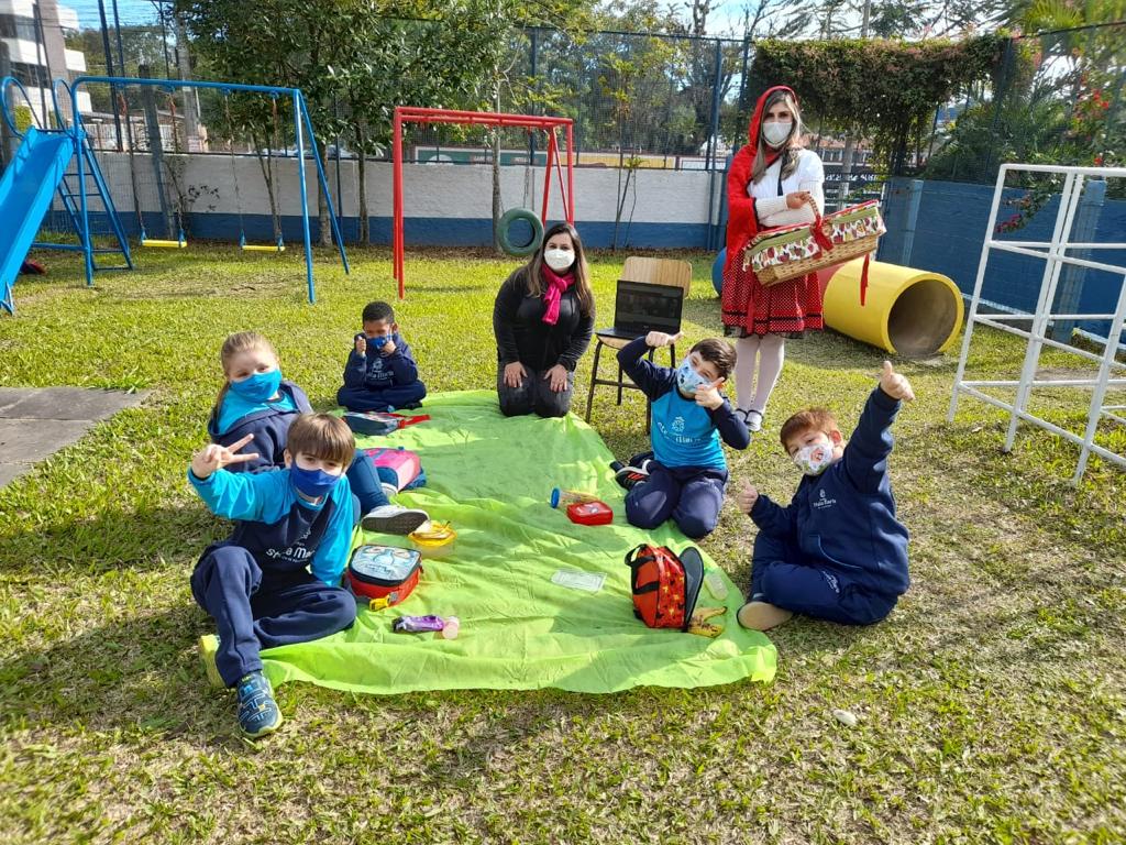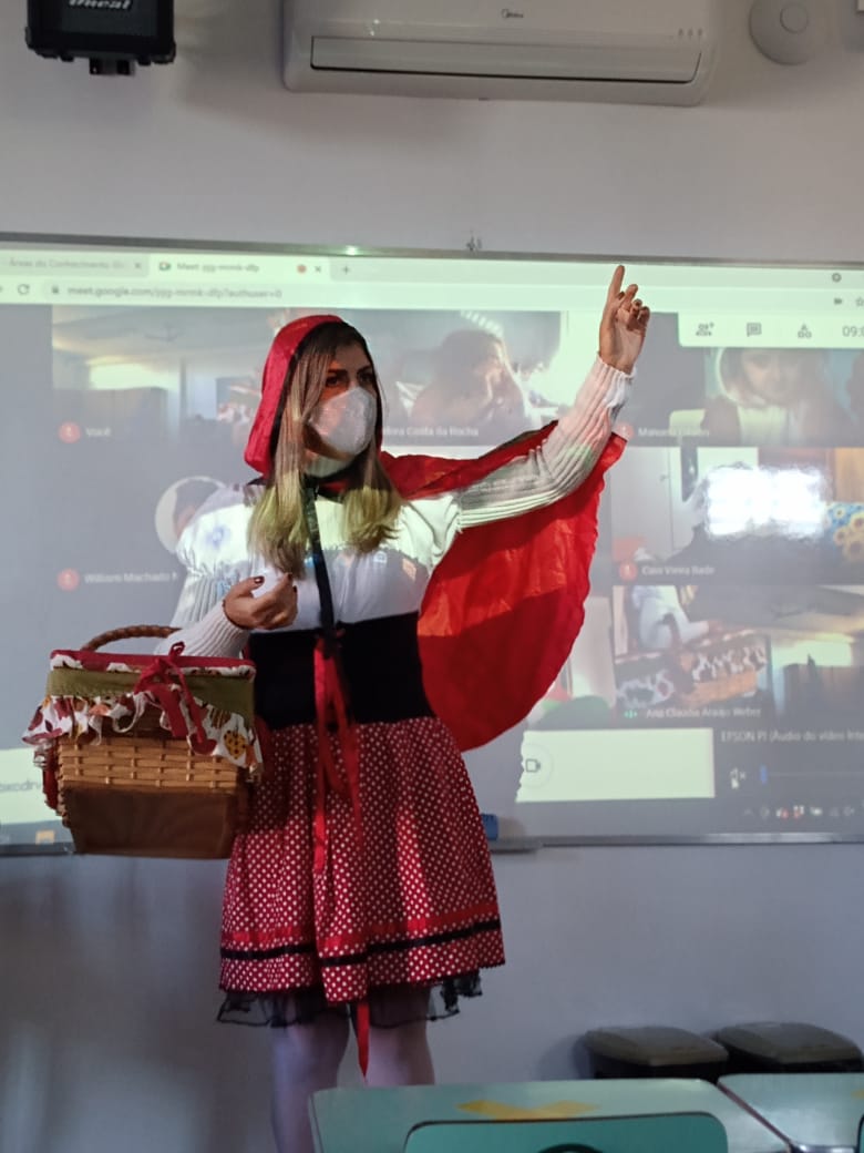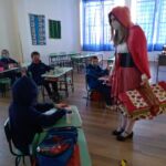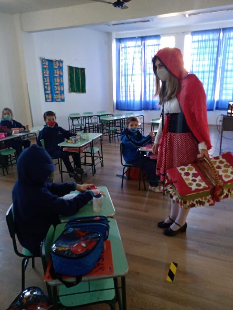 Dois amigos: Chapeuzinho Vermelho e o Lobo Bom saíram dos contos de fadas para as turmas 11, 12 e 13. Acompanharam as professoras Ana Cláudia, Ana Paula e Juliane nas aventuras e aprendizagens planejadas para essa semana.