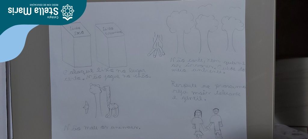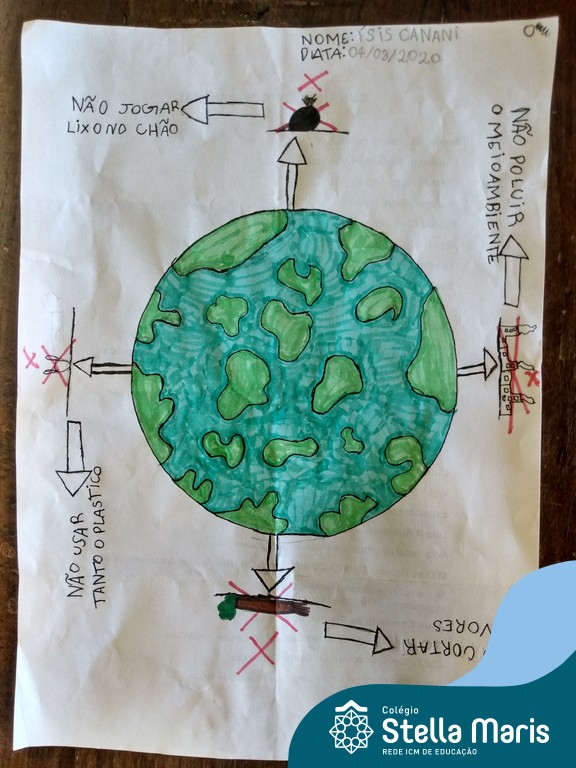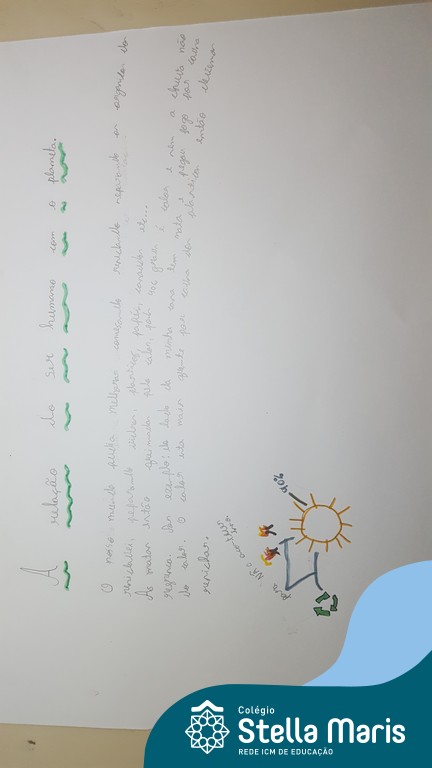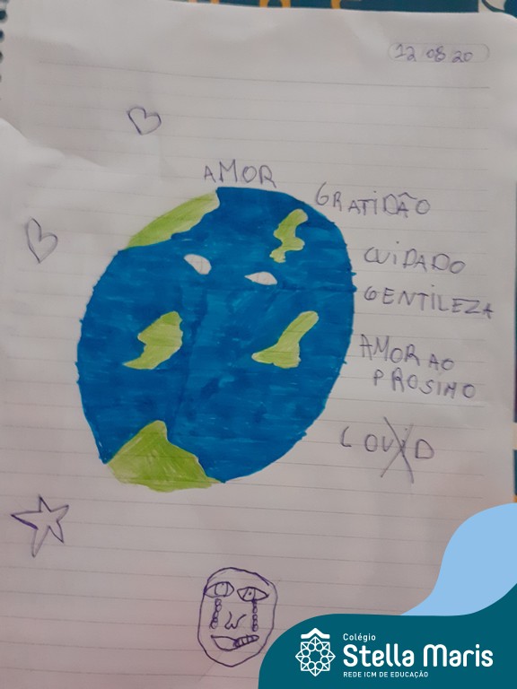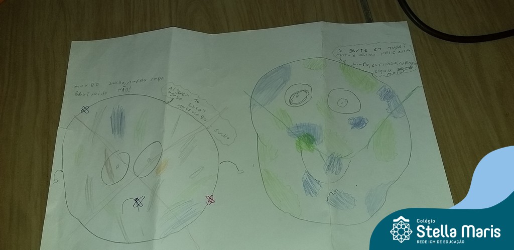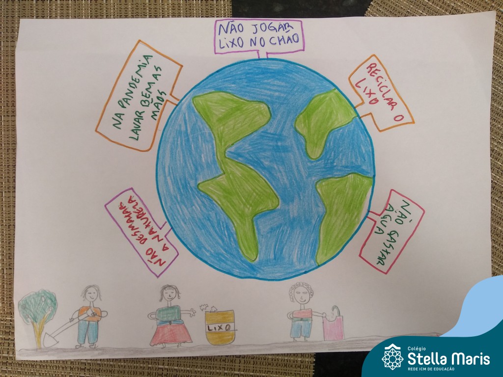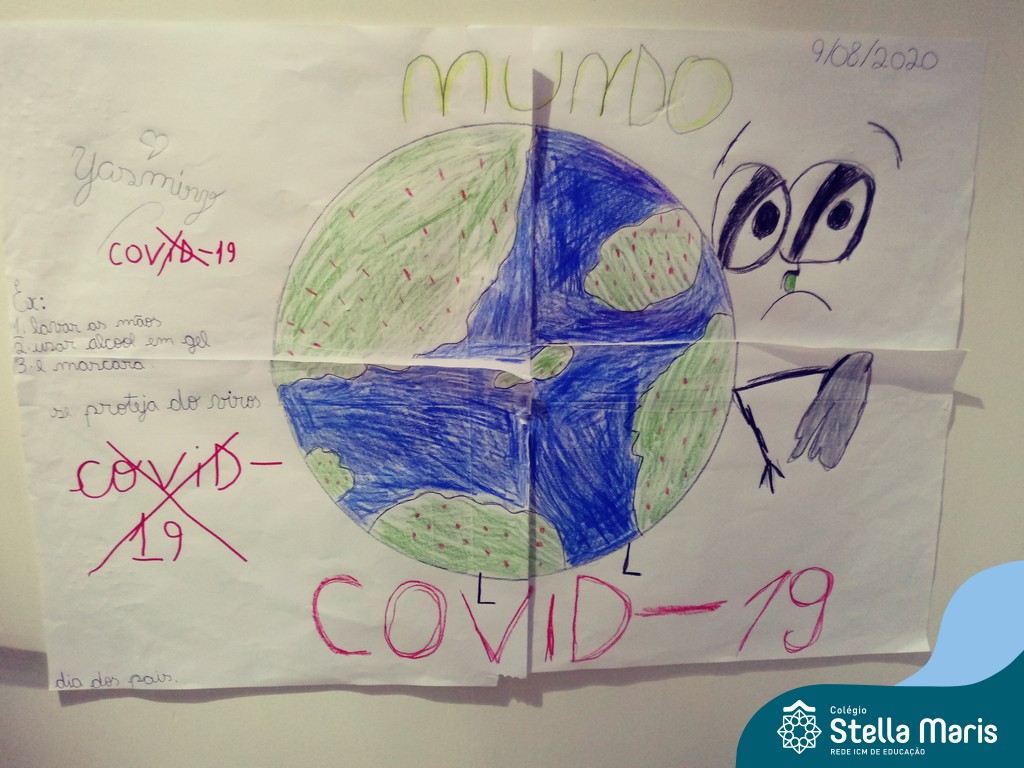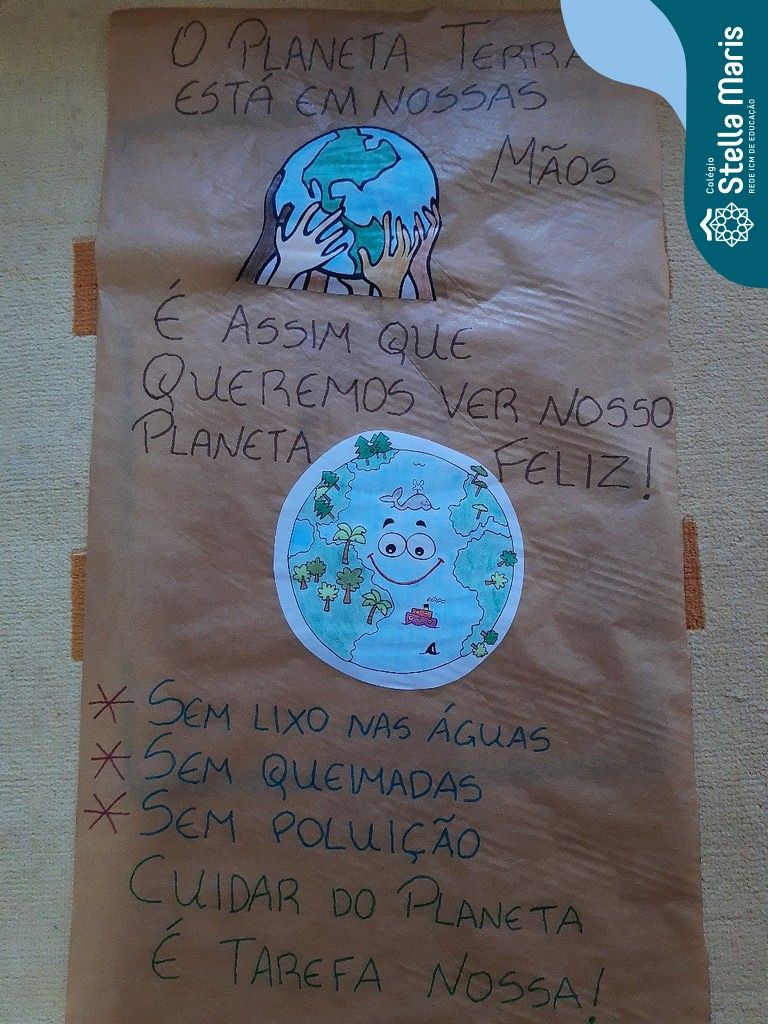 Após a reflexão do texto e análise de vídeos sobre os impactos da pandemia, os alunos dos 4º anos apresentaram um lindo trabalho. E através de cartazes, responderam às perguntas e representaram a responsabilidade fraterna diante da criação (planeta):