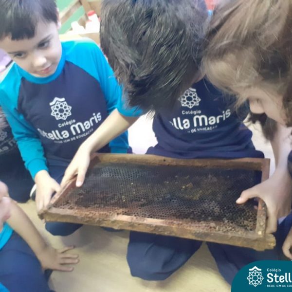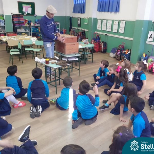 A turma do Pré 2B está com o projeto Abelhas: sua vida e produtividade. Para contribuir com nossas aprendizagens sobre esse inseto tão importante para a vida do ser humano e do mundo, o Alex, pai do estudante Nicollas, trouxe até nossa sala uma caixa coletora de mel. Ele nos ensinou como as abelhas se organizam e o processo para a produção do mel.