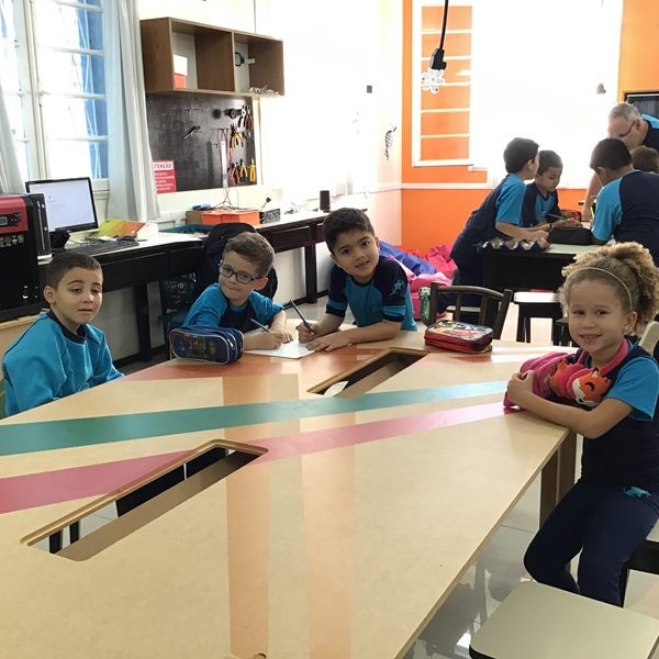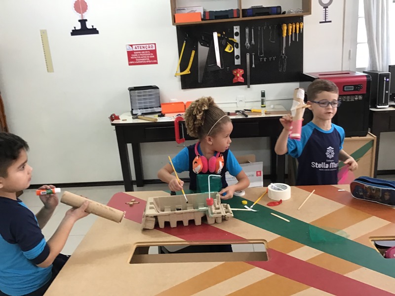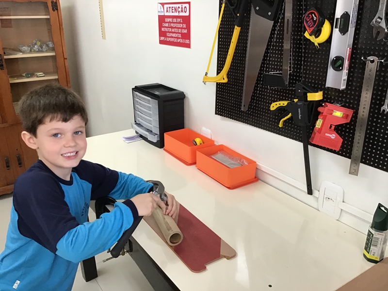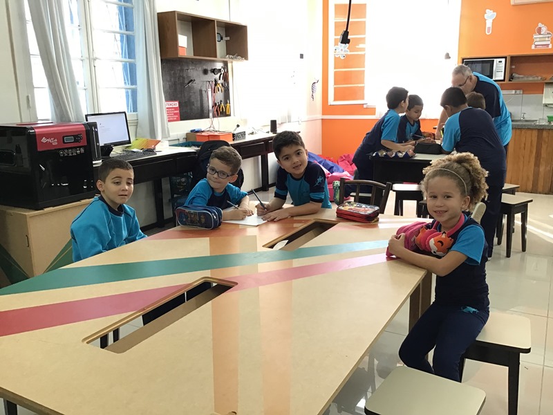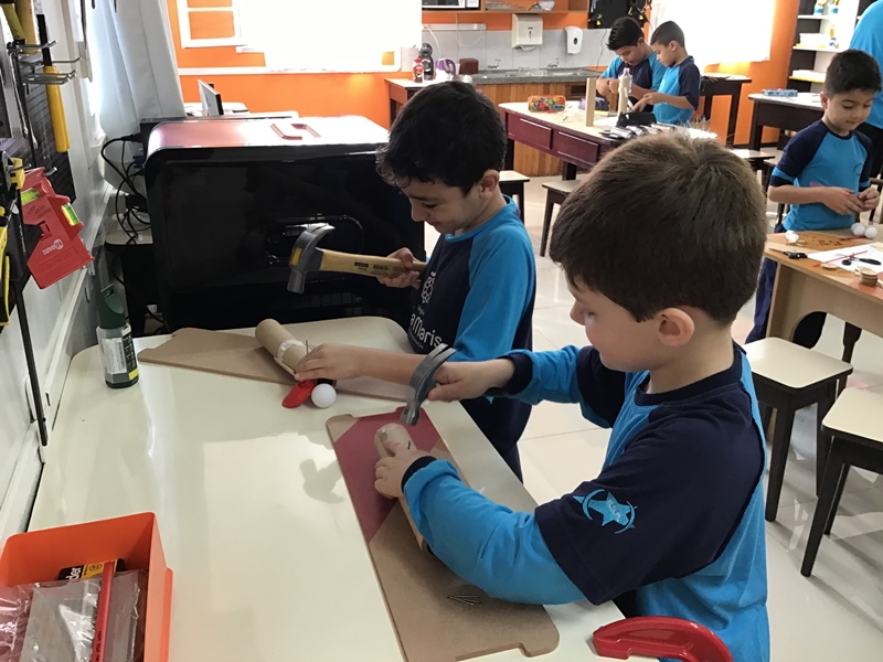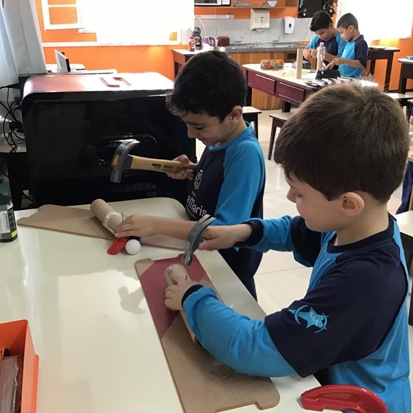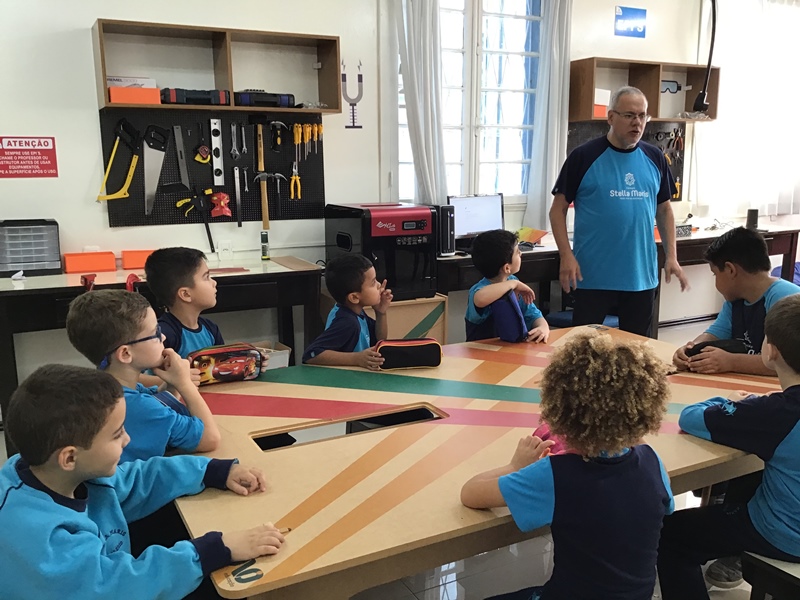 Os alunos do 1 ano da turma 11 criaram seus primeiros Projetos na Sala Maker com o Professor André.