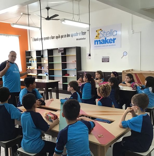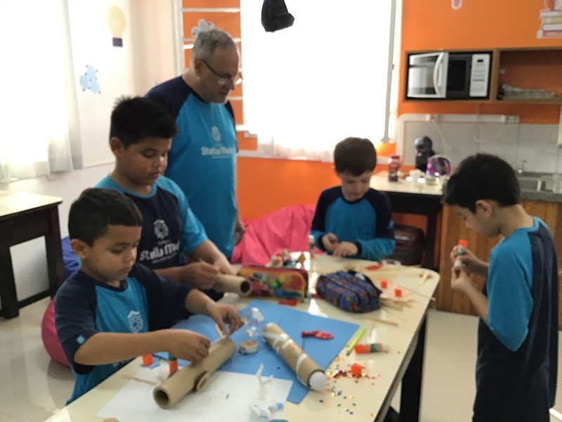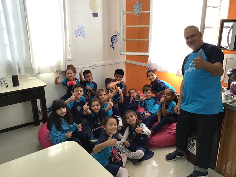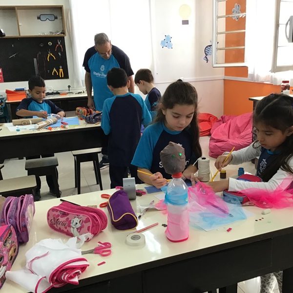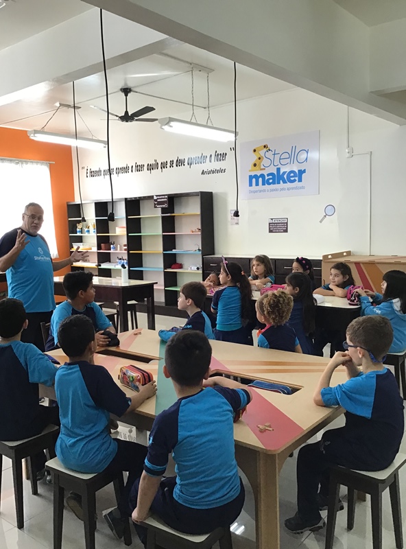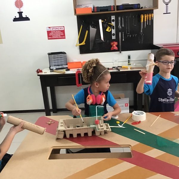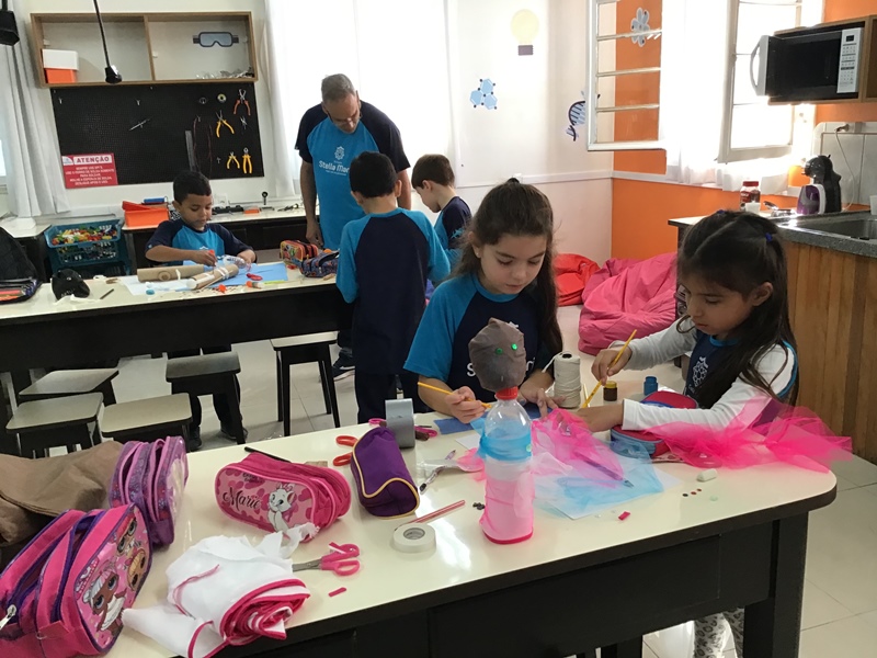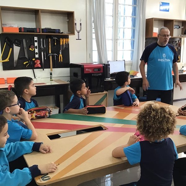 Os alunos do 1 ano da turma 11 criaram seus primeiros Projetos na Sala Maker com o Professor André.