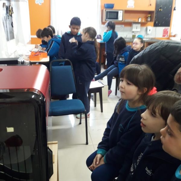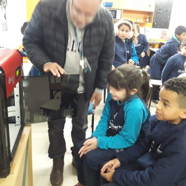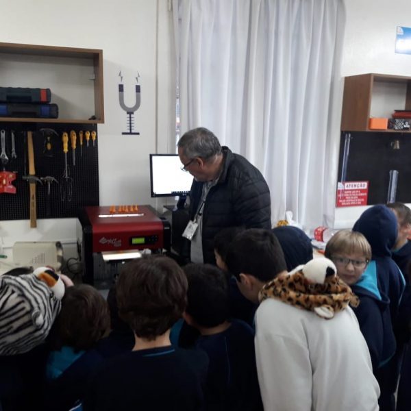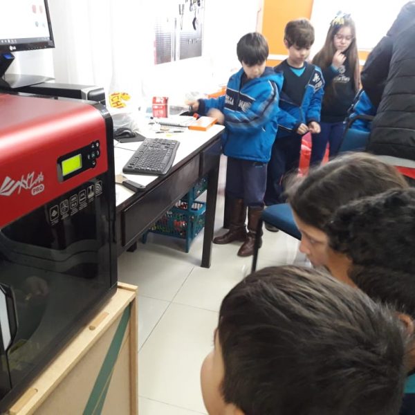 Os alunos ficaram encantados com a criação, em poucos minutos, realizada na impressora 3D.